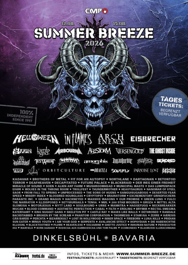 Auch wenn unsere Festivaltickets ausverkauft sind, habt ihr noch die Chance das SUMMER BREEZE 2026 zu besuchen!