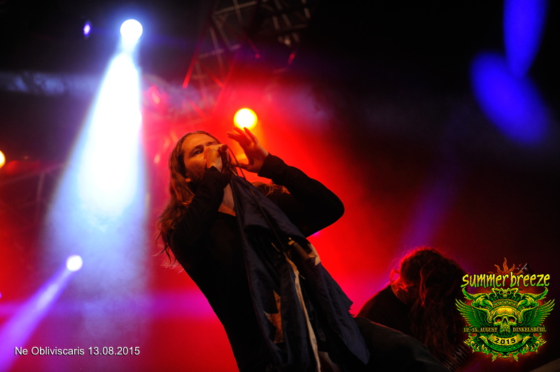 Mit einer der technisch anspruchsvollsten Bands des SUMMER BREEZE 2015 stieg auch die T-Stage in den zweiten Festivaltag ein: NE OBLIVISCARIS aus dem sonnigen Australien gaben sich mit ihrer besonderen Mischung aus technischem Death Metal und folkigem Black Metal ein Stelldichein. Es mag leichter verdauliche Kost in der brütenden Mittagshitze geben, dennoch fand eine erfreulich große Anzahl an Fans den Weg unter das Zeltdach. Und enttäuscht wurde sicherlich niemand: Die Band hatte ob des engagierten und gut aufgelegten Publikums sichtlich Spaß am Musizieren und rief immer wieder zum Mitmachen auf – insbesondere, da die ersten Reihen die vier Songs des Sextetts von Down Under frenetisch abfeierten. Hauptsächlich die von der Violine getragenen, eingängigen Passagen rissen die Zuschauer immer wieder mit – der engagierte Auftritt von Sänger Xen tat dann ein Übriges. So stimmte die Mischung zwischen ehrfurchtsvollem Staunen ob der spielerischen Fähigkeiten von Bassist Cygnus und dem Gitarristen-Duo Matt Klavins und Benjamin Baret, und der mitreißenden Darbietung von (Clean-) Sänger und Geiger Tim Charles absolut – und NE OBLIVISCARIS lieferten trotz eines etwas dominanten Schlagzeugsounds einen amtlichen Auftritt ab.