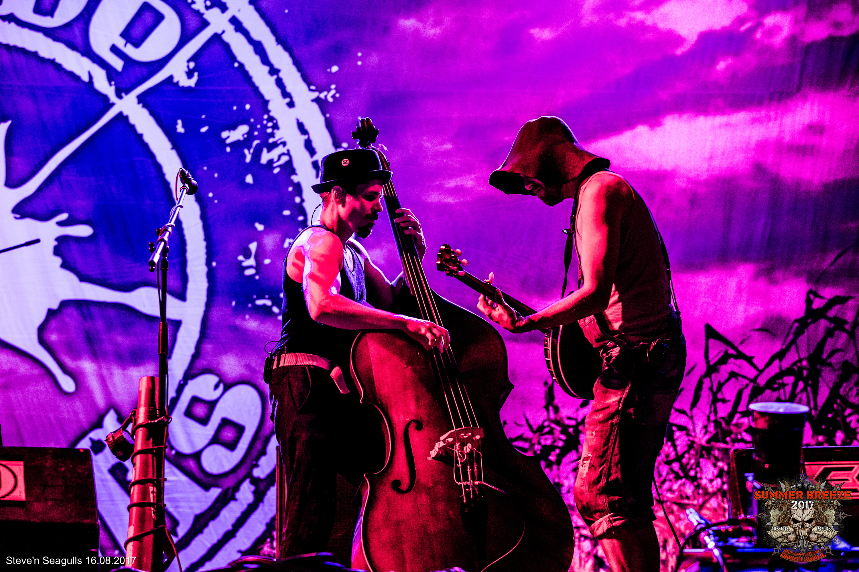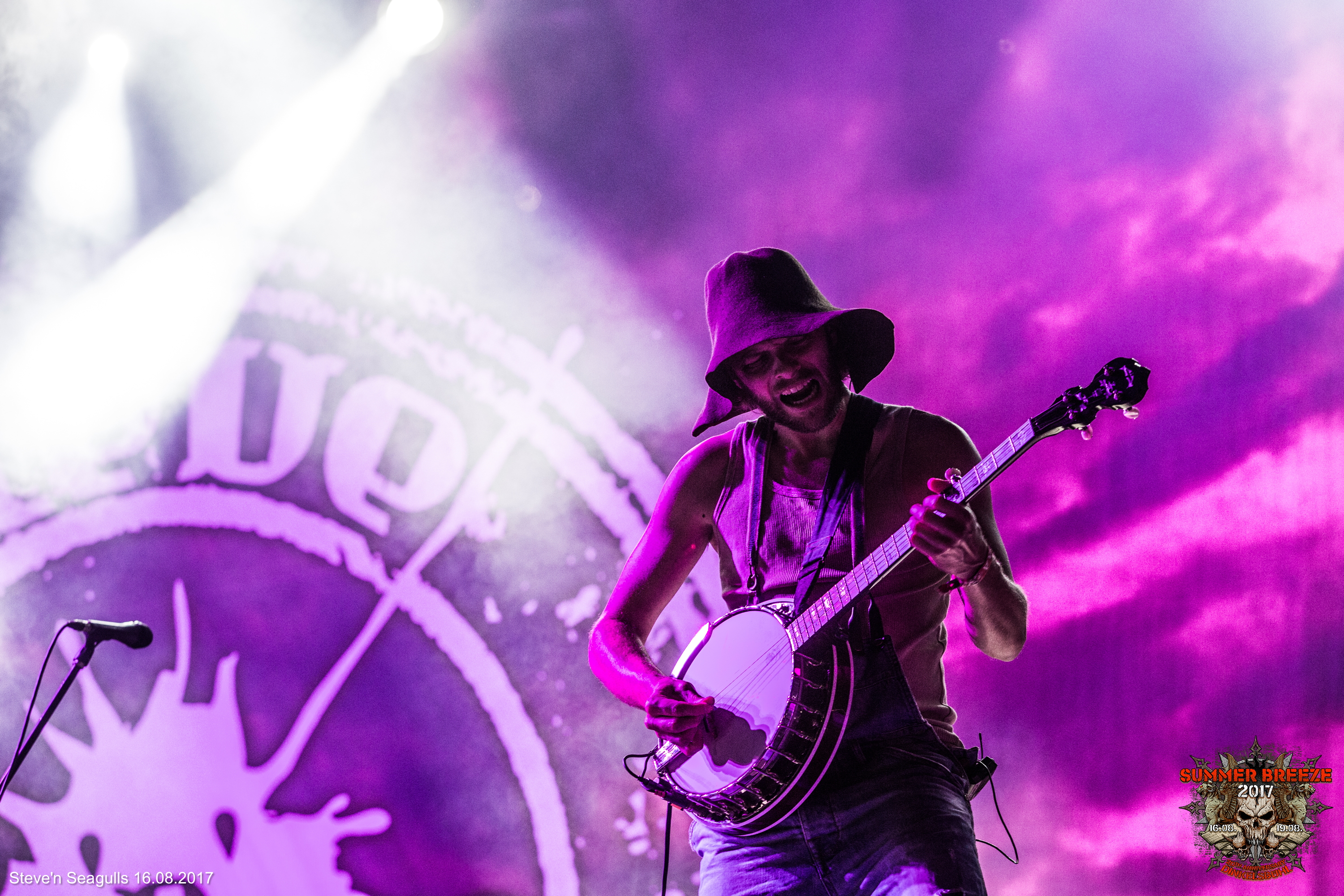 Wer geglaubt hatte, dass der BREEZE-Meute am Mittwoch nach der spätabendlichen T-Stage-DESTRUCTION keine Puste und Muße mehr für den Schlussakt des Tages verbleiben würde, der irrte. STEVE ‚N‘ SEAGULLS bewiesen vielmehr eindrucksvoll, dass ihre bandeigene Mischung aus Bluegrass, Punk und unsterblichen Rock-und Metal-Hymnen auch um zwei Uhr am Morgen noch sehr gut zu zünden vermag. Von Beginn an wurde getanzt, geklatscht, gepogt und, ja, gecrowdsurft. Voller Energie coverte sich das gut gelaunte Quintett derweil mit Banjo und Akkordeon von Iron Maiden über Metallica und Megadeth bis zu Pantera. Fröhliche Überraschung rief beim Publikum vor allem das mit charmantem Akzent angestimmte Rammstein-Cover „Ich Will“ hervor. Nicht müde wurden die Finnen zudem, den Namen ihres Schlapphut tragenden Banjo-Spielers Herman (Betonung auf dem R) de German zu betonen. Das alles kam so gut, dass die Versammelten am Ende lautstark nach einer Zugabe verlangten – wohlgemerkt um drei Uhr in der Nacht, von einer Country-Band auf einem Metal-Festival! Leider konnte diesem Wunsch nicht mehr nachgekommen werden.