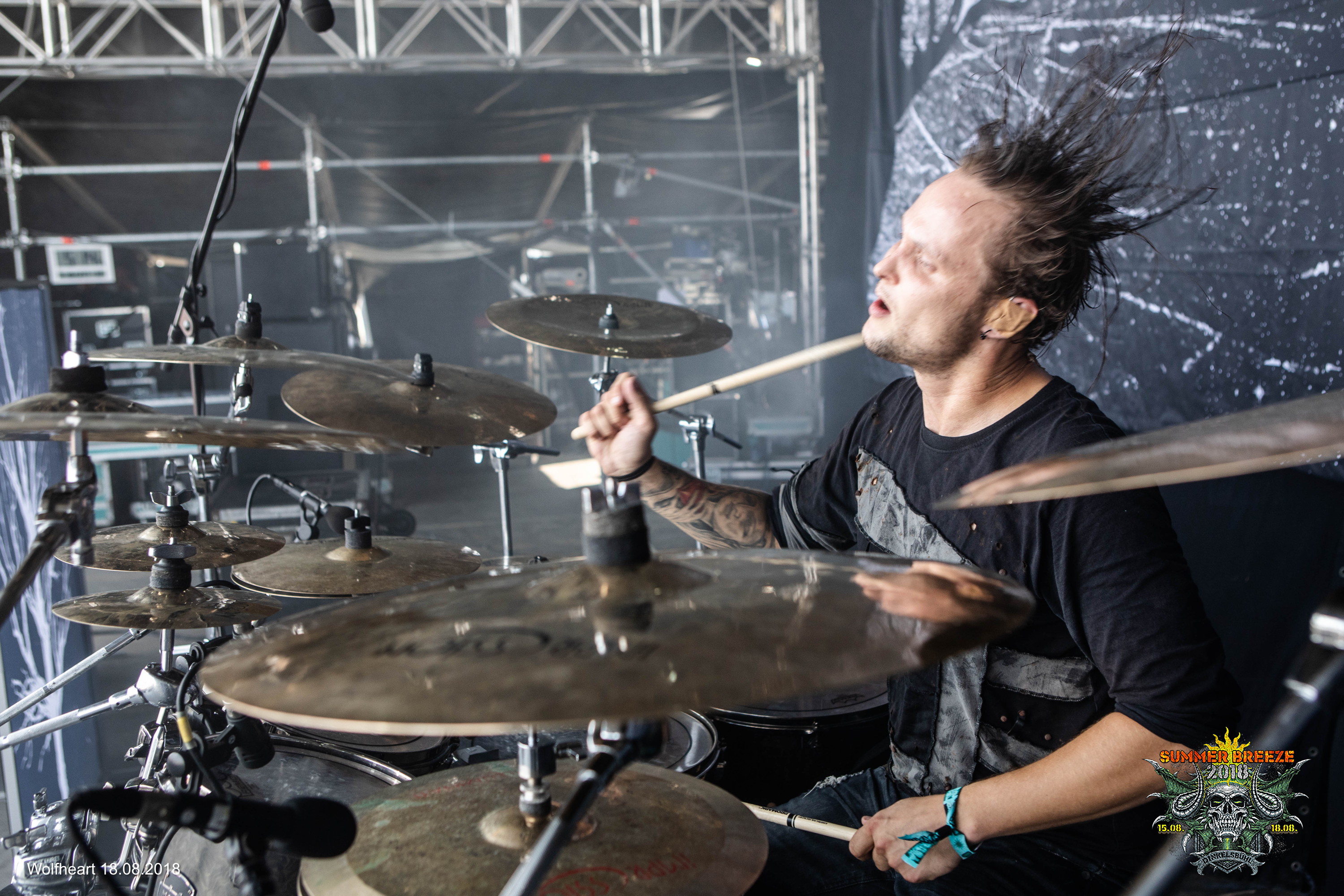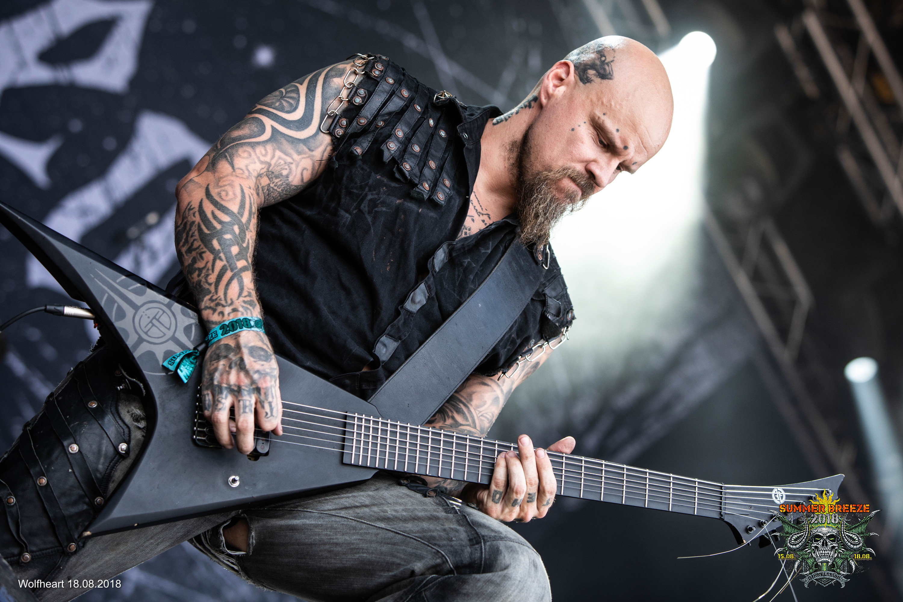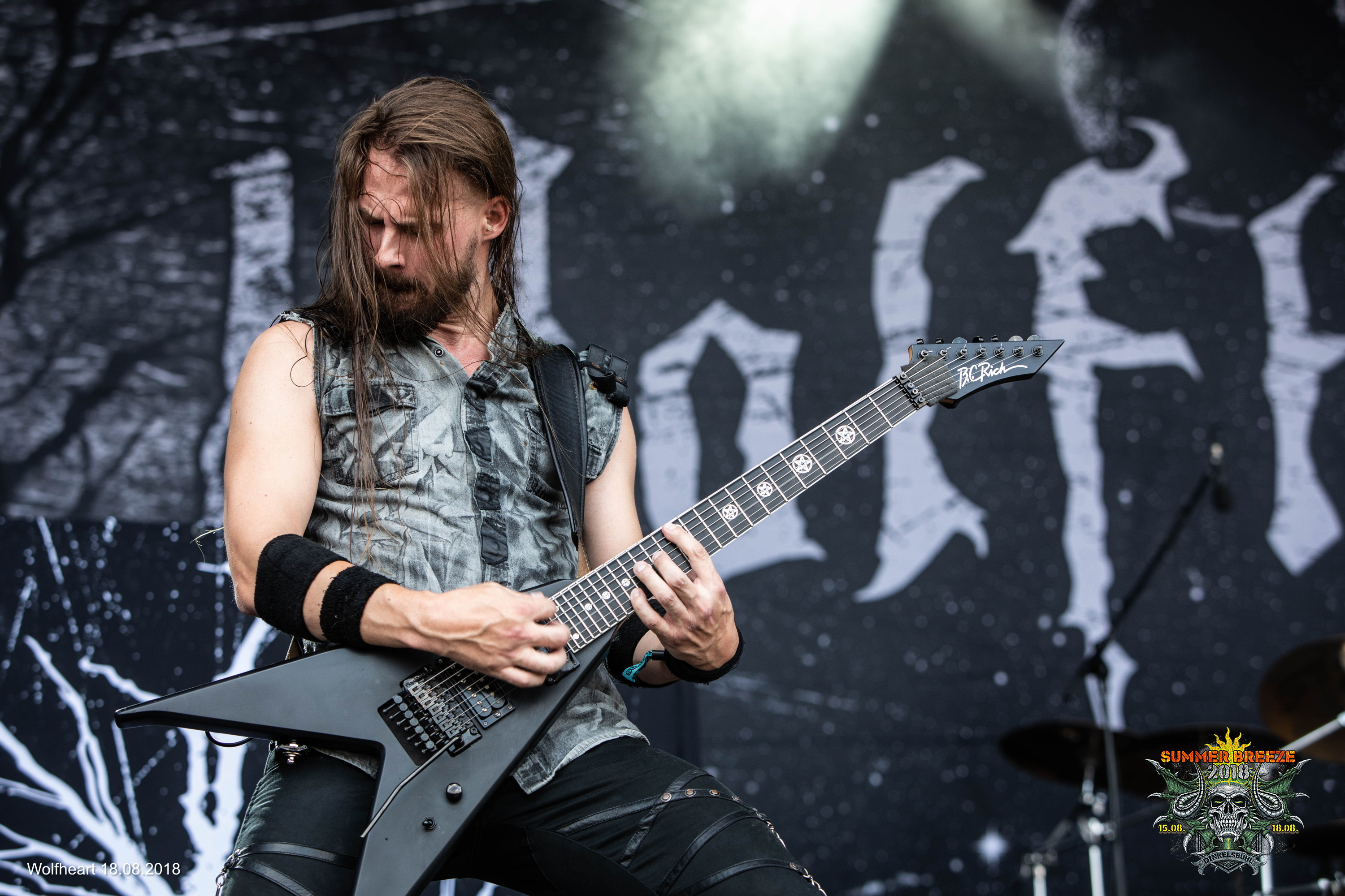 Als Intro benutzten WOLFHEART einen brandneuen Song von ihrem Album „Constellation Of The Black Light“, das erst im September veröffentlicht wird. Es sollte nicht der einzige neue Titel bleiben, denn auch die aktuelle Single „Breakwater“ hatte es natürlich in das SUMMER BREEZE-Set geschafft. Die Truppe um Mastermind Tuomas Saukkonen erntete Jubelrufe, sobald sie nach und nach die Bühne betrat. Nach dem Intro legte die Band dann mit „Aeon Of Cold“ los, das den Zuschauern das erste von vielen stählernen Brettern vor den Kopf knallte. Unerschöpflich schien dabei die Nackenmuskulatur von Gitarrist Mika Lammassaari und Bassist Lauri Silvonen zu sein, denn das Windmilling der beiden beeindruckte auch den geübtesten Headbanger. Fronter Tuomas Saukkonen brüllte der Menge derweil die Texte entgegen, während er seiner maximal tief heruntergestimmten Gitarre Riffs in schier unmenschlicher Geschwindigkeit entlockte. WOLFHEART bewiesen aber auch aufs Neue ihr Talent, mitreißende Melodien mit brachialem Geknüppel zu verbinden. Vor allem bei den von Mika Lammassaari gespielten Soli blieb einem gerne mal der Mund offen stehen. WOLFHEART sind eben Musik fürs Herz und für den Nacken. Beides dürfte den SUMMER BREEZE-Besuchern nach diesem Auftritt auf angenehme Weise geschmerzt haben.