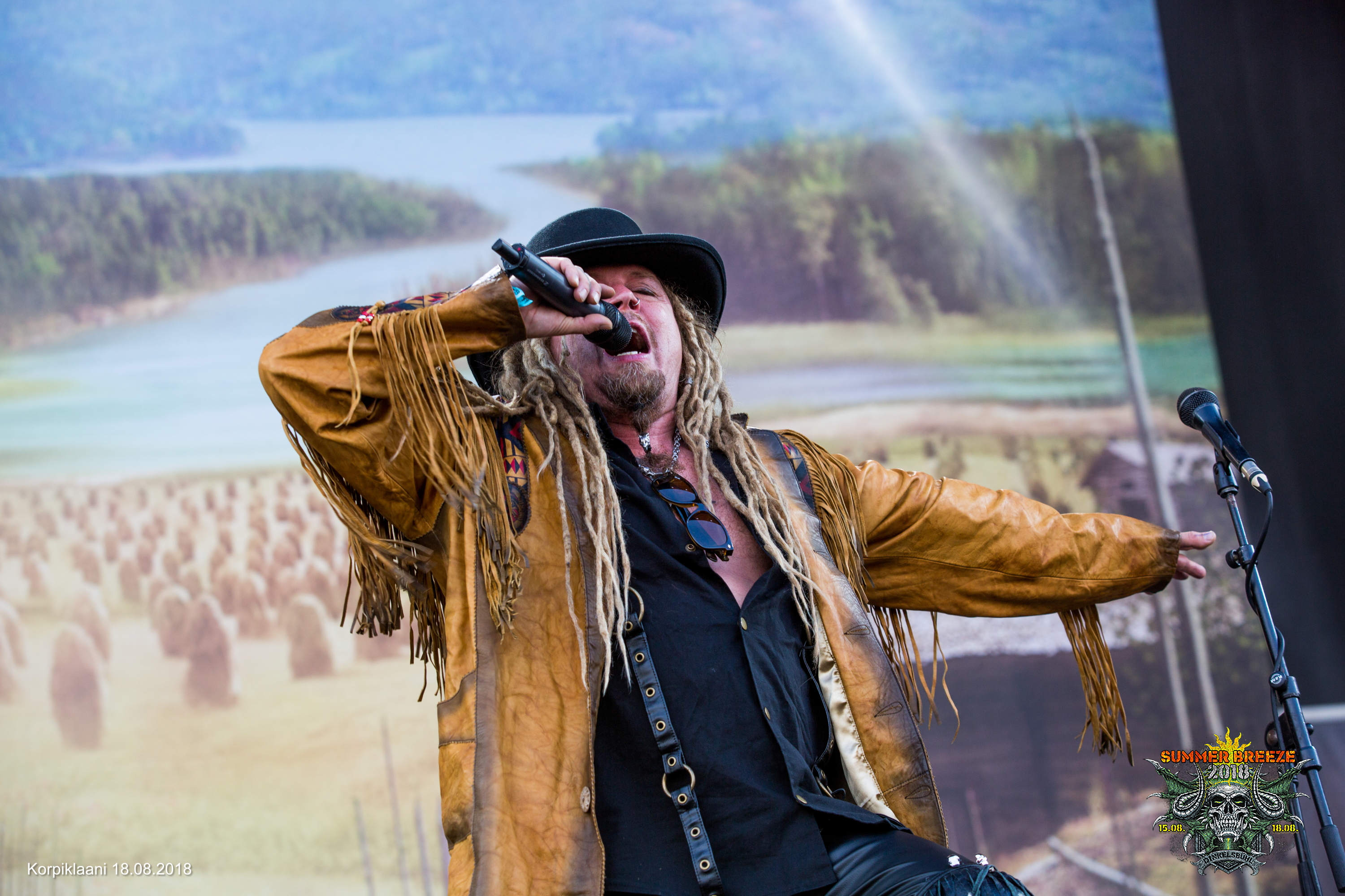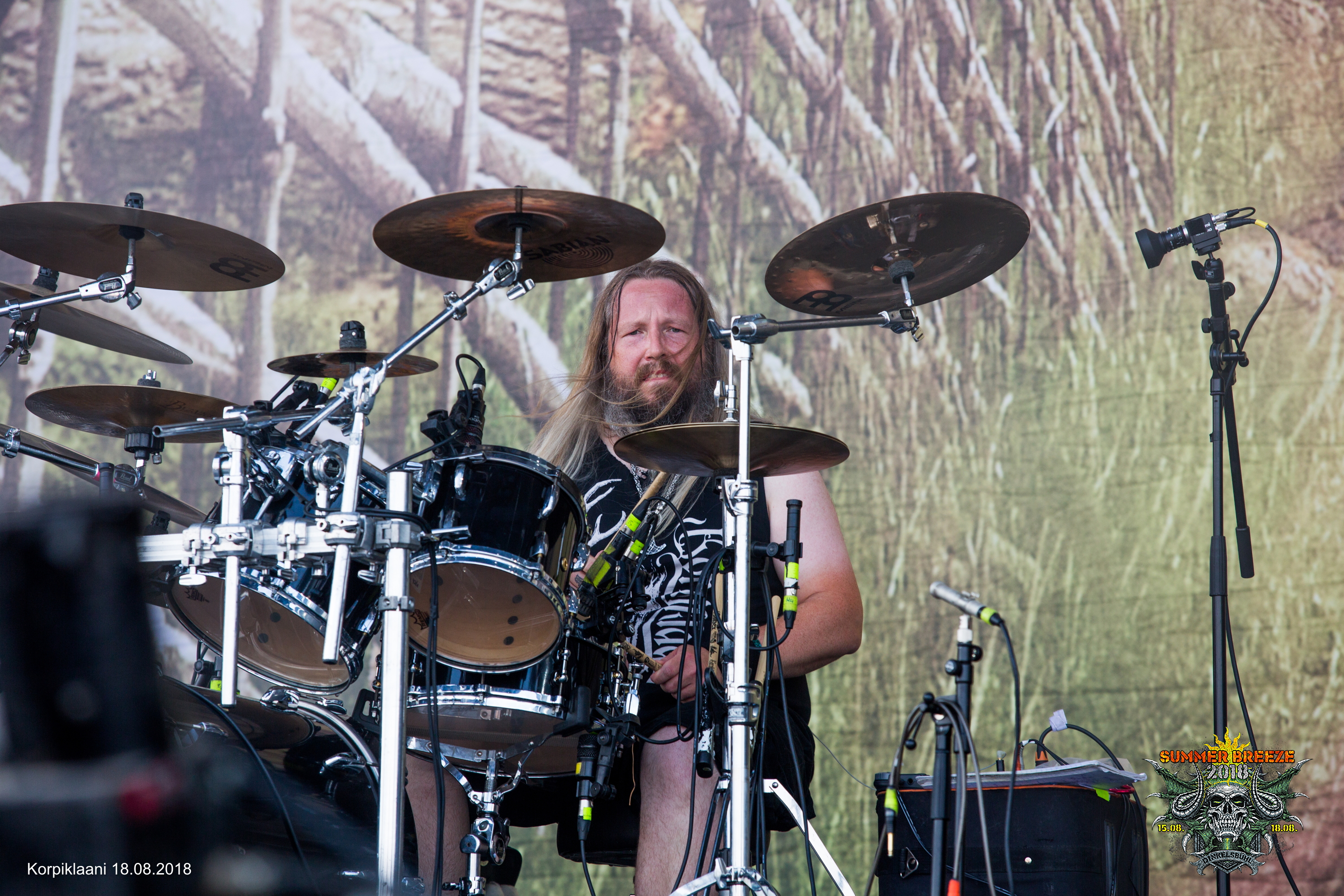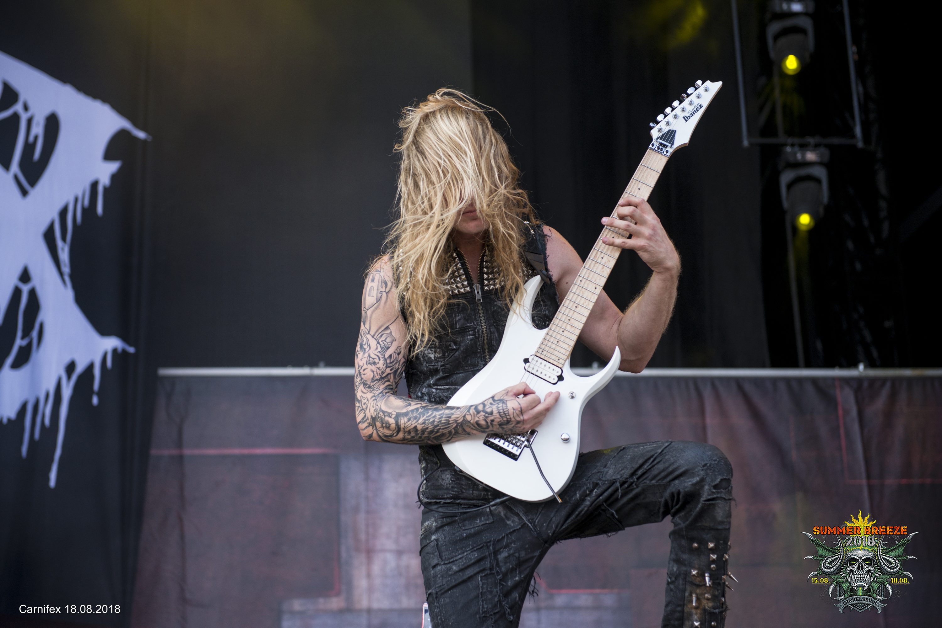 Als Intro benutzten WOLFHEART einen brandneuen Song von ihrem Album „Constellation Of The Black Light“, das erst im September veröffentlicht wird. Es sollte nicht der einzige neue Titel bleiben, denn auch die aktuelle Single „Breakwater“ hatte es natürlich in das SUMMER BREEZE-Set geschafft. Die Truppe um Mastermind Tuomas Saukkonen erntete Jubelrufe, sobald sie nach und nach die Bühne betrat. Nach dem Intro legte die Band dann mit „Aeon Of Cold“ los, das den Zuschauern das erste von vielen stählernen Brettern vor den Kopf knallte. Unerschöpflich schien dabei die Nackenmuskulatur von Gitarrist Mika Lammassaari und Bassist Lauri Silvonen zu sein, denn das Windmilling der beiden beeindruckte auch den geübtesten Headbanger. Fronter Tuomas Saukkonen brüllte der Menge derweil die Texte entgegen, während er seiner maximal tief heruntergestimmten Gitarre Riffs in schier unmenschlicher Geschwindigkeit entlockte. WOLFHEART bewiesen aber auch aufs Neue ihr Talent, mitreißende Melodien mit brachialem Geknüppel zu verbinden. Vor allem bei den von Mika Lammassaari gespielten Soli blieb einem gerne mal der Mund offen stehen. WOLFHEART sind eben Musik fürs Herz und für den Nacken. Beides dürfte den SUMMER BREEZE-Besuchern nach diesem Auftritt auf angenehme Weise geschmerzt haben.