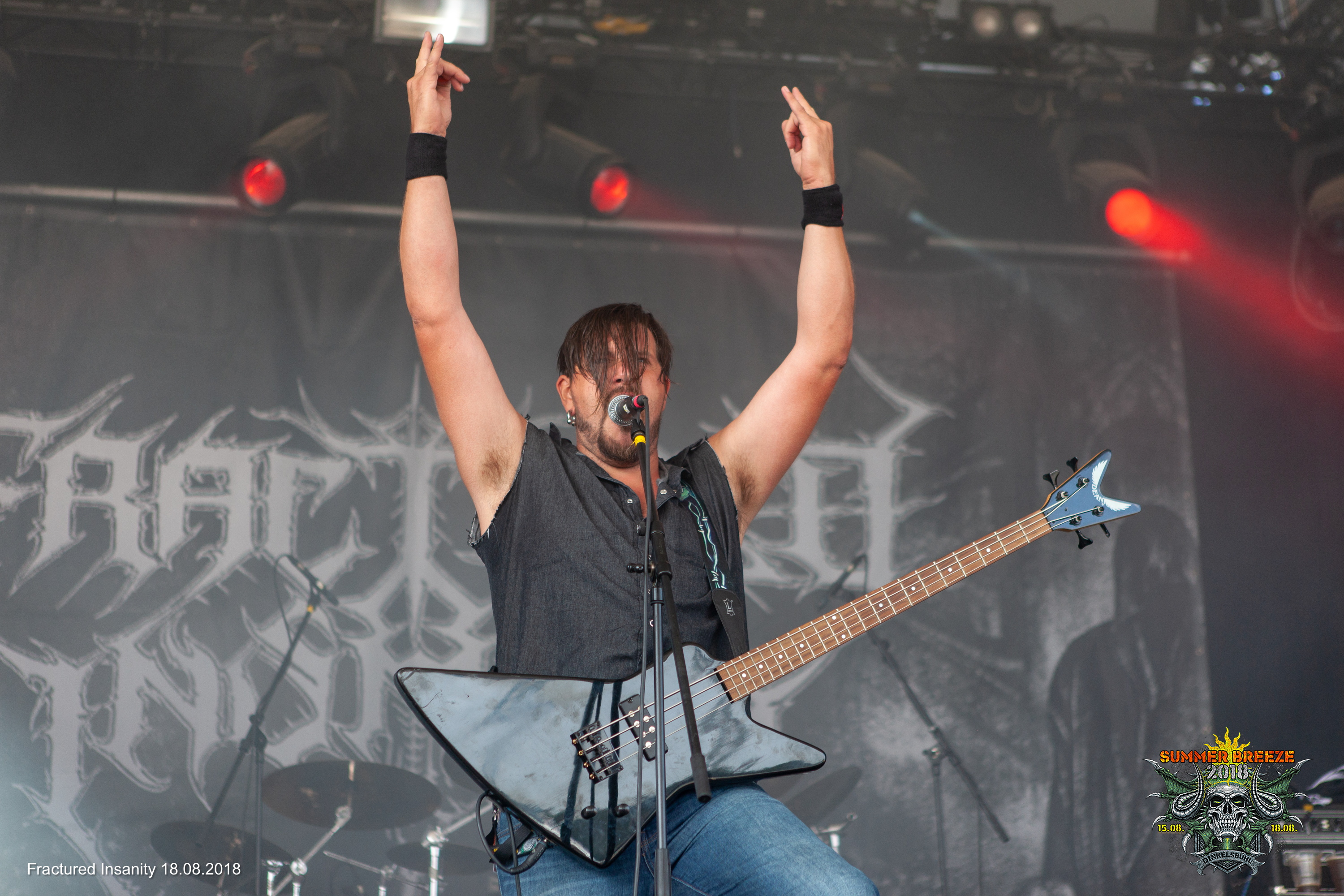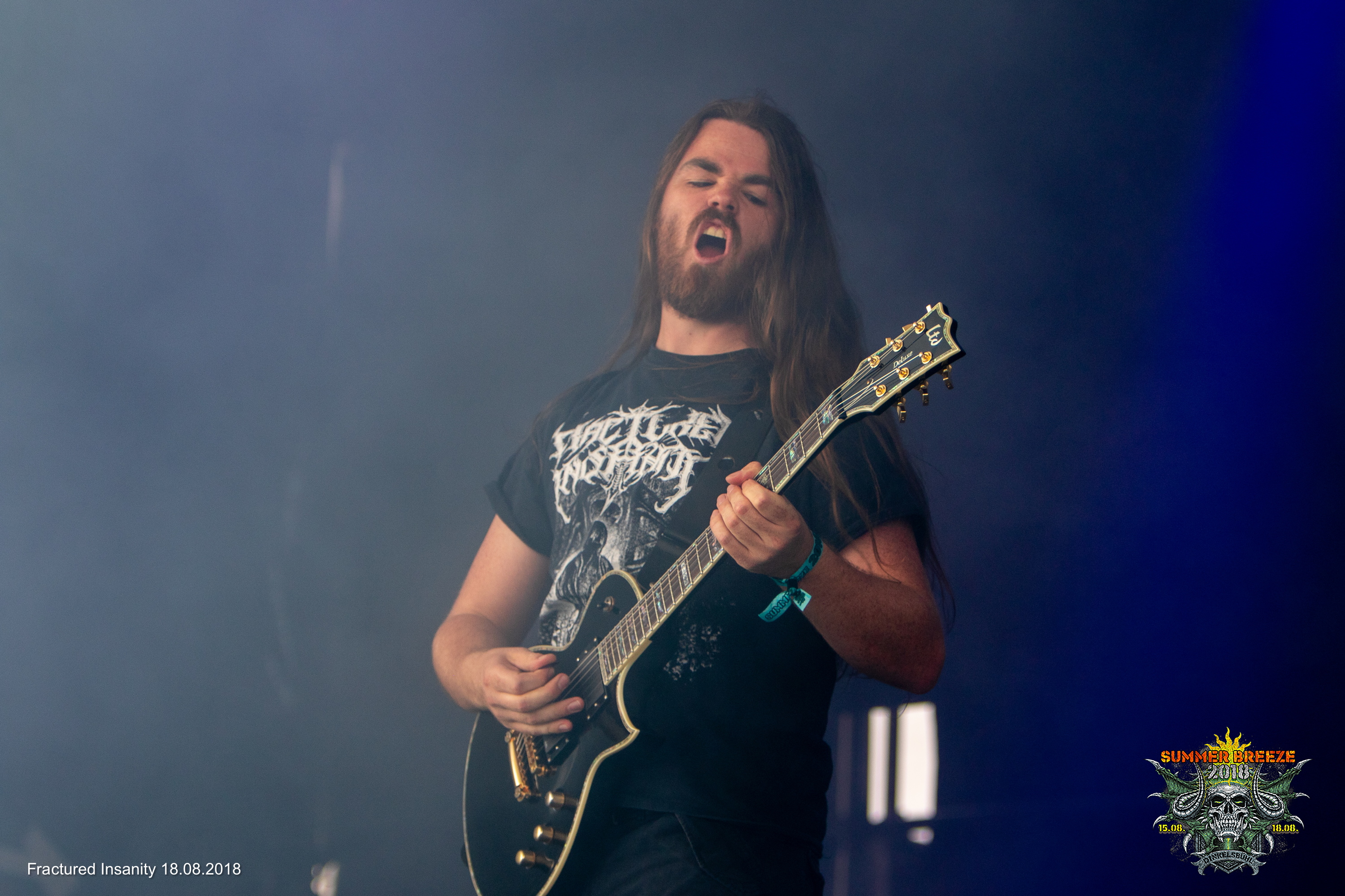 Die Reihen vor der Camel Stage waren eher licht gefüllt, als FRACTURED INSANITY zu einem grollenden Intro die Bühne betraten: Vielleicht lag es ja an der musikalischen ähnlich ausgerichteten Konkurrenz auf den anderen Bühnen (ORIGIN und CARNIFEX), die die Belgier den Kürzeren ziehen ließ. Dennoch: Der Vierer spielte seinen brutalen und technisch angehauchten Death Metal mit Leidenschaft und überzeugte schließlich auch die Anwesenden von seinen Fähigkeiten. Die Gitarren gingen leider im Gesamtsound etwas unter, was beim technischem Death Metal von FRACTURED INSANITY natürlich eher suboptimal war. Frontmann Stefan Van Bael war aber ein Aktivposten und feuerte während der immer wieder eingestreuten groovenden Passagen das Publikum an, die Pommesgabeln in die Höhe zu recken. Bei den flinken Abschnitten kreisten hingegen im Zuschauerraum -auch ganz ohne Anfeuerung – zahlreiche Matten. Somit kam jeder der Anwesenden auf seine Kosten und wurde gut unterhalten.