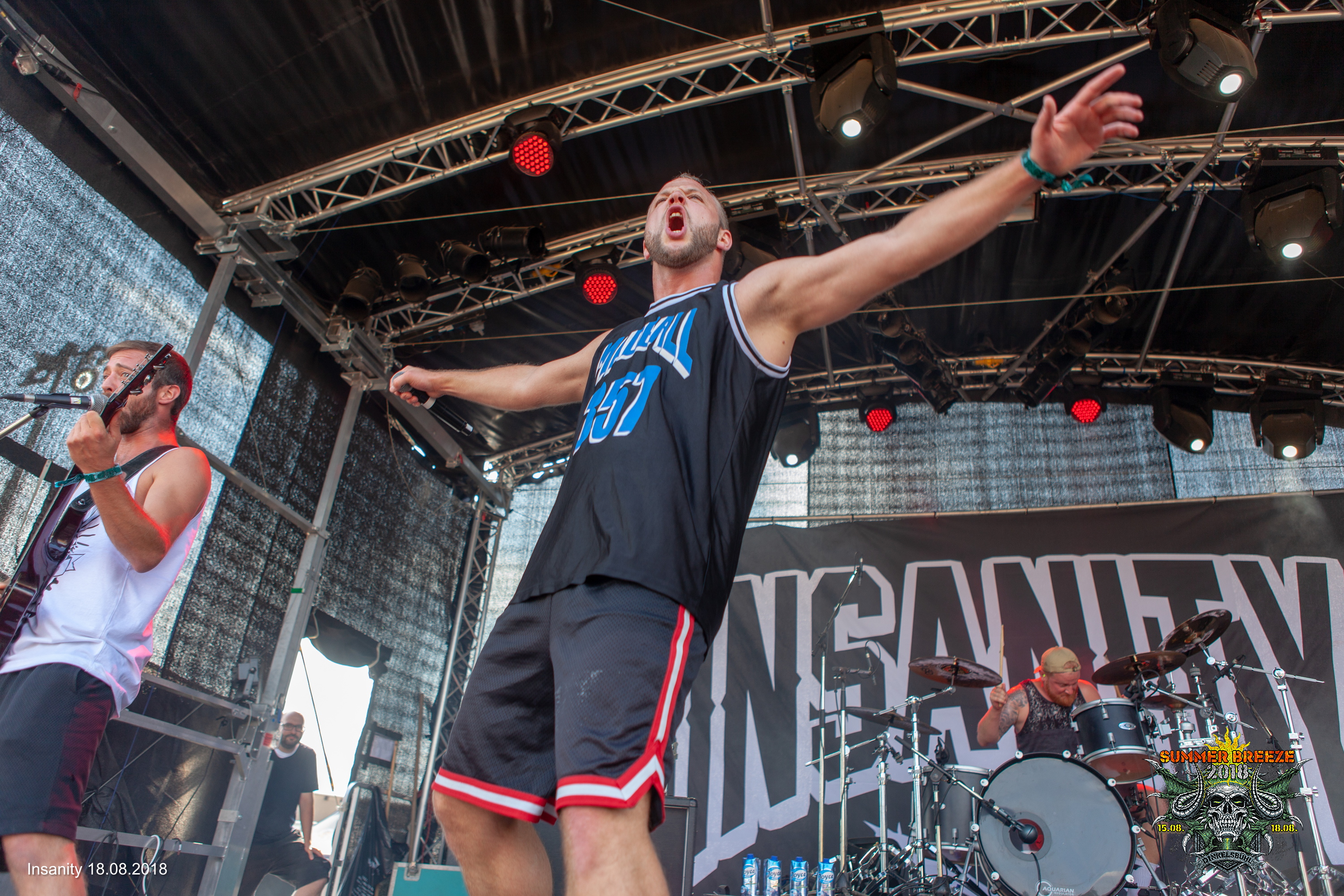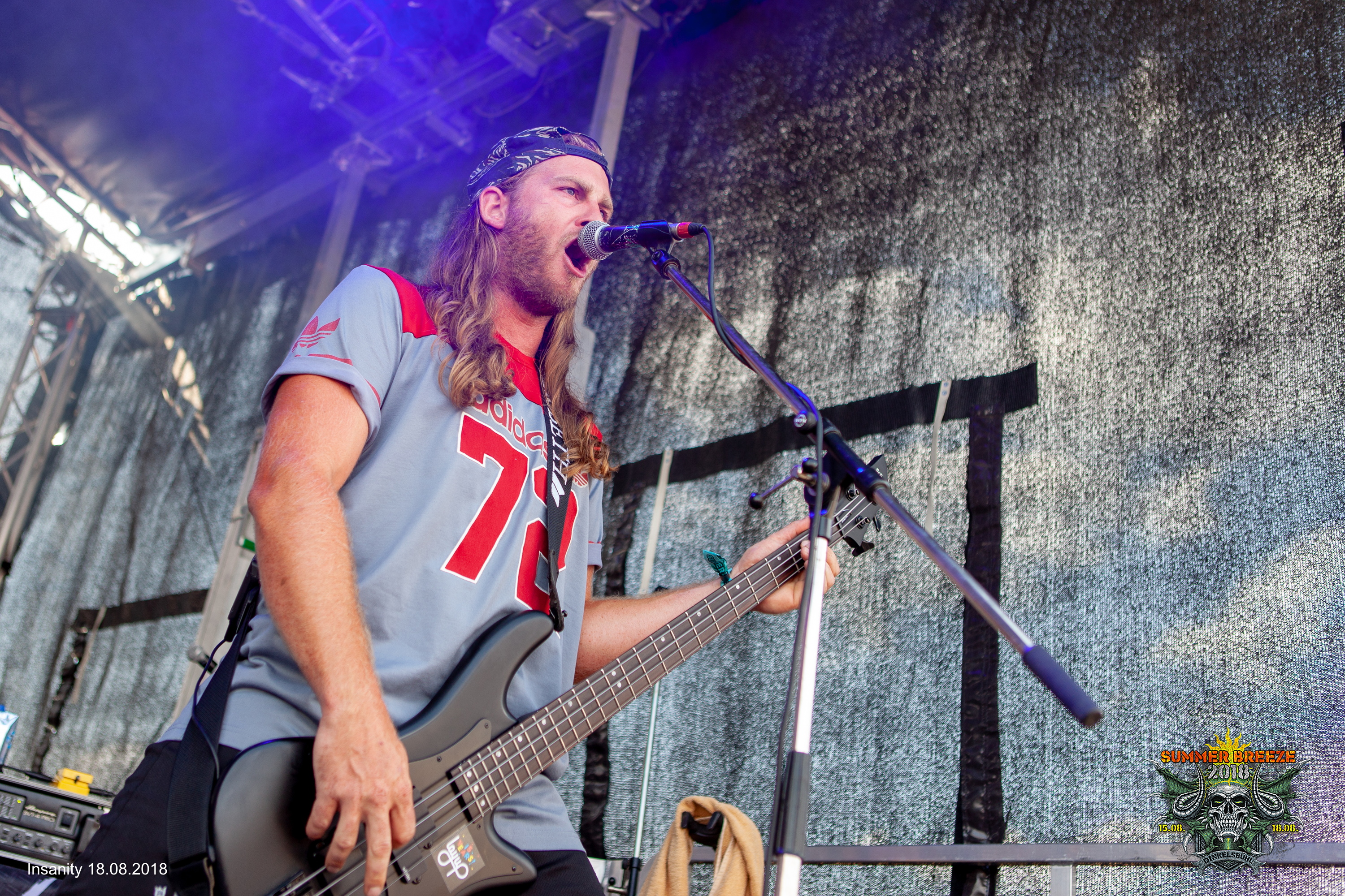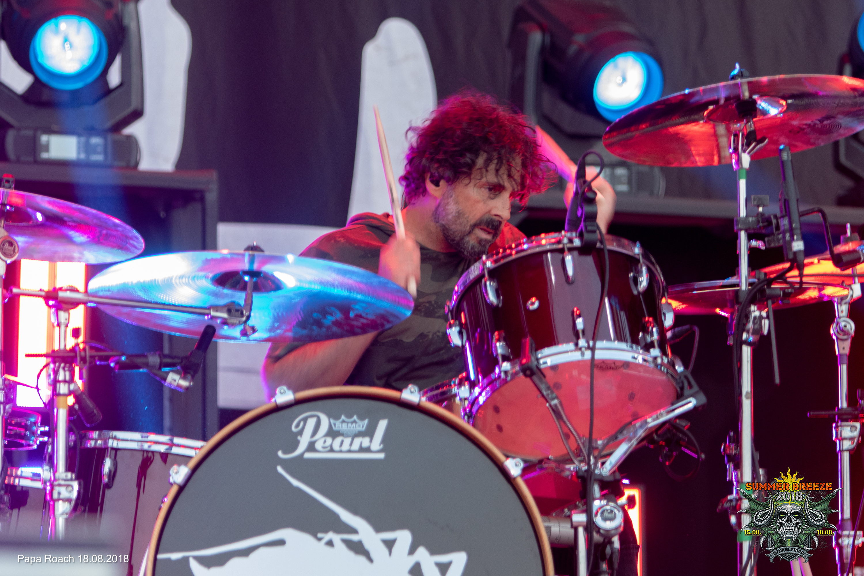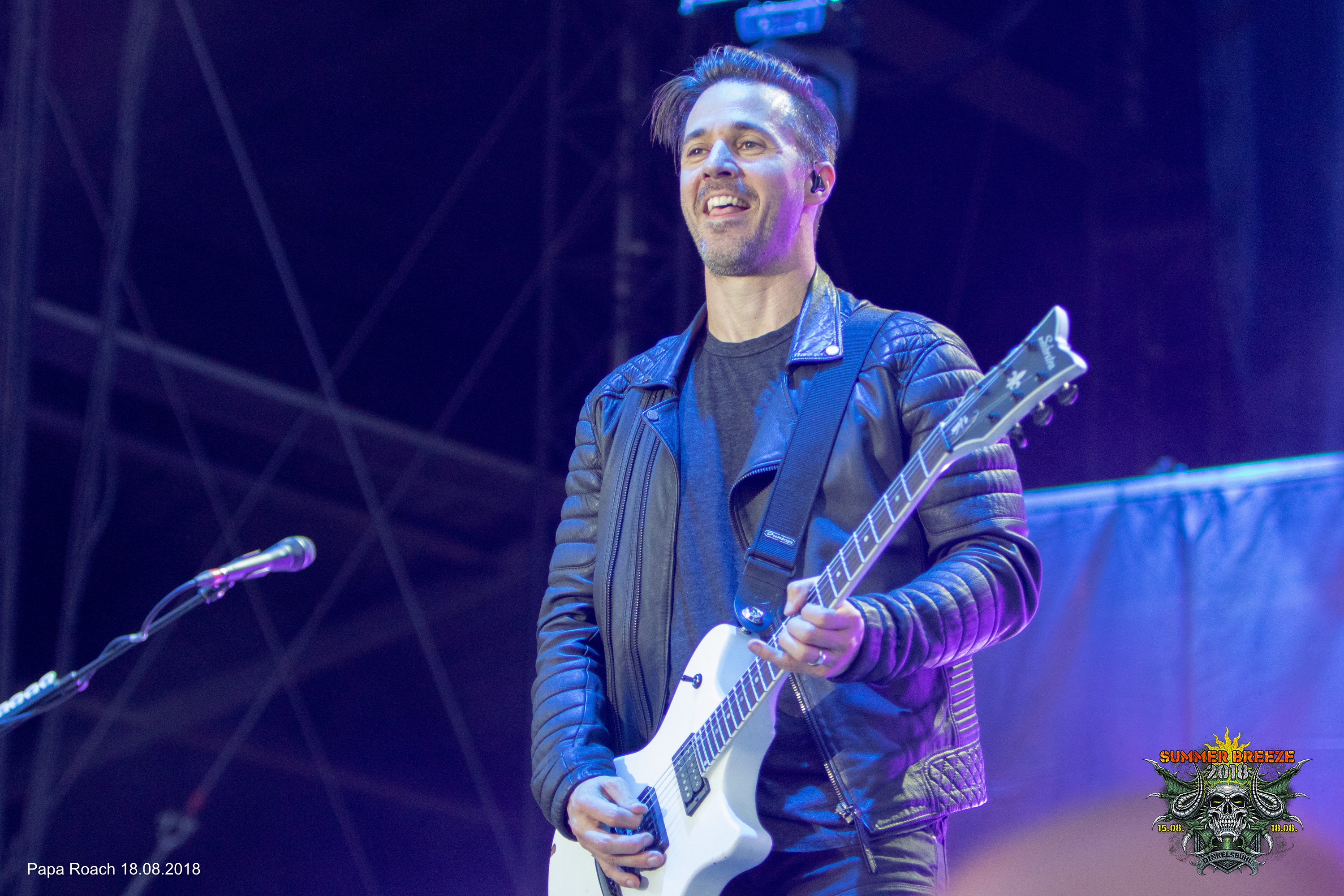 “Fuck PAPA ROACH!” – Eine elektronische Frauenstimme forderte alle Zuschauer diesen Slogan zu skandieren und dabei alle Mittelfinger zu heben. Als die Band wenig später die Bühne enterte sah sie also ein Meer von Mittelfingern und das Energielevel war vom Start weg ganz weit oben. Die bekannte vierköpfige Bandbesetzung wurde in der Livesituation noch durch einen weiteren Gitarristen ergänzt, der zudem bei vielen Songs Keyboard spielte und auch zwei Standtoms auf seinem Podest hatte, die er sehr effektiv einsetzte. PAPA ROACH hatten viel vor – für ihr SUMMER BREEZE-Debut hatten sie satte 18 Songs auf dem Zettel. Vereinzelt spickten sie ihr Set zusätzlich noch mit angespielten Covern wie “Lose Youself“ von Eminem oder Linkin Parks “In The End“. Apropos Linkin Park: Sänger Jacoby Shaddix aka. Coby Dick nutzte die Gunst der Stunde und erinnerte an den verstorbenen Linkin Park-Frontmann Chester Bennington. Seine ganz persönlichen Erfahrungen in Punkto Alkoholabhängigkeit und Depressionen machte er dabei ebenfalls publik. Die Menge zu seinen Füßen liebte ihn dafür nur umso mehr. Denn was gibt es schöneres als große Musiker, die sich ein hohes Maß an Menschlichkeit und vor allem Aufgeschlossenheit bewahren? Auch nach 25 Jahren Bandgeschichte bedankten sich PAPA ROACH für die rege Anteilnahme und die nicht zu überhörende Textsicherheit ihrer treuen Gefolgschaft und überhäuften ihre Fans vor, während und nach den Songs regelrecht mit lieben Worten. Wenn man den Worten von Shaddix glaubt, lebt er jeden seiner Auftritte als wäre es sein letzter und das stellte er auch bis zum Ende der Show eindrucksvoll unter Beweis. Die Crowd nahm dies auch ihrerseits sichtlich erfreut an – ein Meer aus dicht an dicht springenden Menschen tobte zum Abschluss vor der Stage – Minutenlang ertönten “Last Resort“-Rufe, bevor zur Krönung endlich der Song kam, den wirklich ausnahmslos alle kennen: Ein “Cut my life into pieces!“ – und es gab kein Halten mehr. Das Publikum schrie den Rest der Lines heraus und bot damit sicherlich auch der Band ein unvergessliches Erlebnis.