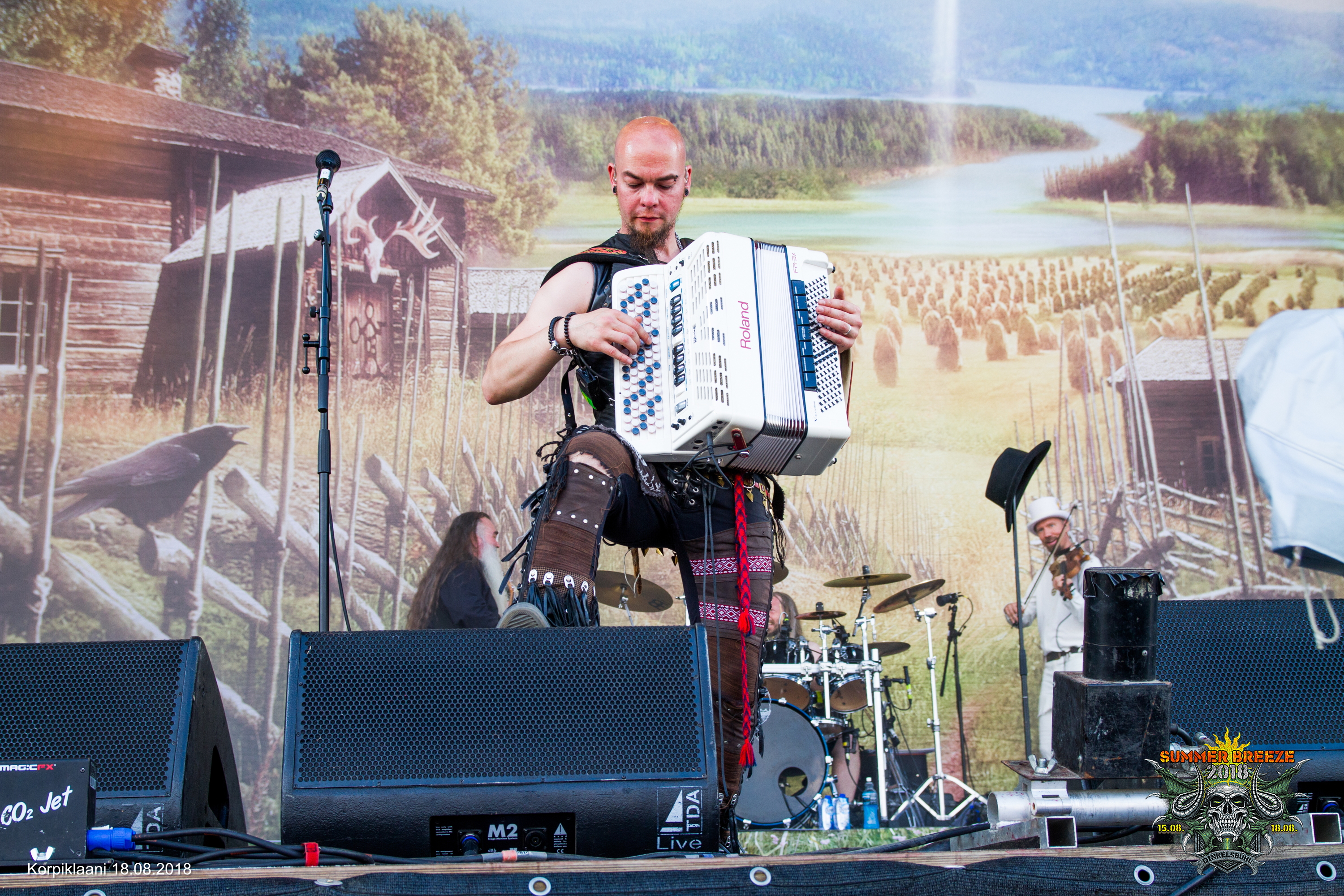 Mit ihren Hillbilly-Outfits sahen KORPIKLAANI zwar genauso hinterwäldlerisch aus, wie es ihr Name vermuten ließ, musikalisch konnte der launige Folk Metal der Finnen jedoch auf ganzer Linie überzeugen. Ihr unverkennbarer Sound erwies sich einmal mehr als absolut einzigartig. Mit „Wooden Pints“ platzierte die Band ihren größten Hit direkt an erster Stelle in ihrem einstündigen Set und brachte die Stimmung damit augenblicklich zum Kochen. Dass ein Gutteil der Texte in finnischer Sprache gehalten war und Sänger Jonne Järvelä stets ein wenig heiser klang, spielte keine Rolle, die Menge schunkelte und tanzte von Anfang bis Ende begeistert mit. Erwartungsgemäß waren auch noch genügend Anhänger der unmittelbar vor ihnen aufgetretenen FEUERSCHWANZ übrig geblieben, die den finalen Trinklied-Doppelpack „Beer Beer“ und „Vodka“ ganz besonders zu schätzen wussten. So kannte die Begeisterung keine Grenzen, als die Band zum Abschied eine mehrfache La-Ola-Welle durch den Zuschauerraum branden ließ.