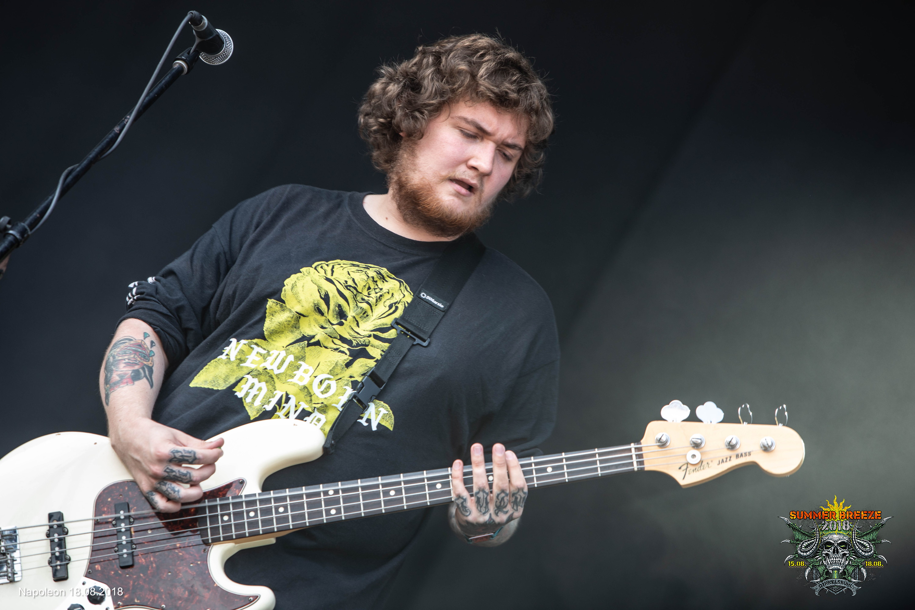 NAPOLEON brachten zu früher Stunde UK-Metalcore in bester Architects-Tradition auf die Bretter der T-Stage. Schnell vervielfachten sich die knapp 100 Interessierten vor der Bühne, sodass sich Wesley Thompson nach knapp der Hälfte des Sets erfreut über den unerwartet großen Andrang zeigen konnte. Trotz immer noch einigermaßen licht stehender Reihen wurde den Aufrufen nach einem Circle Pit unverzüglich Folge geleistet. Die mit zahlreichen Mitsing-Momenten und Breakdowns gespickten Songs des Quartetts kamen offensichtlich gut an. Gemäß der versammelten Bandshirts war vor allem die Schnittmenge zu Metalcore-Mitstreitern wie Parkway Drive und NORTHLANE groß. Als verkatert wollte sich auf Nachfrage von Thompson zwar niemand outen, dennoch war es zwischen einigen der Songs verdächtig ruhig. Sobald Gitarrist Sam Osborn, der als alleiniger Vertreter der Sechsaiter-Fraktion eindrucksvolle Arbeit zwischen Lead- und Rhythmus-Gitarre leistete, aber wieder riffte, waren alle Versammelten erneut bei der Sache. Am Ende überzeugten NAPOLEON mit einem kurzweiligen Auftritt, auf den zu Recht mit der Zeit mehr und mehr Metalheads aufmerksam wurden.