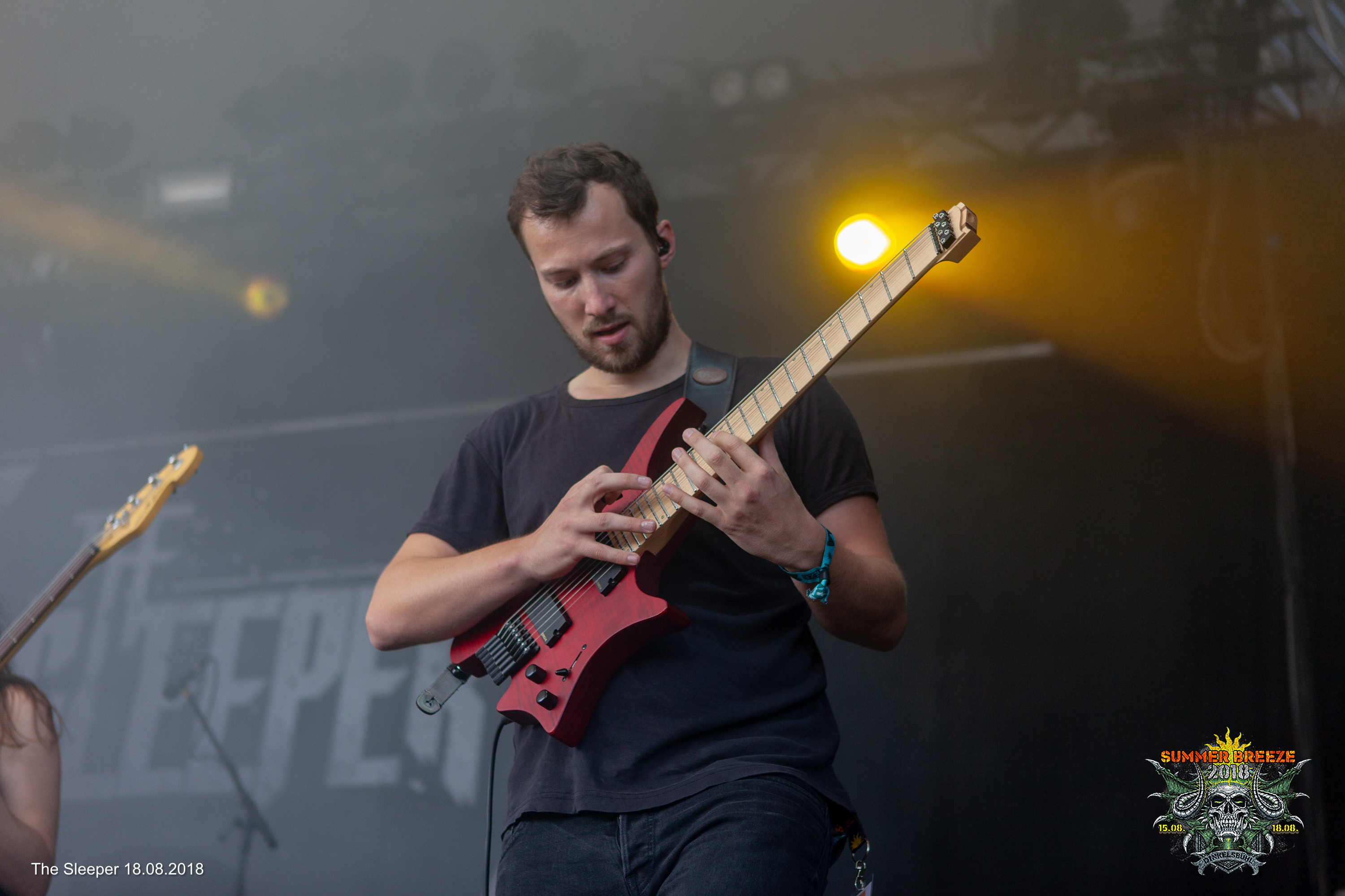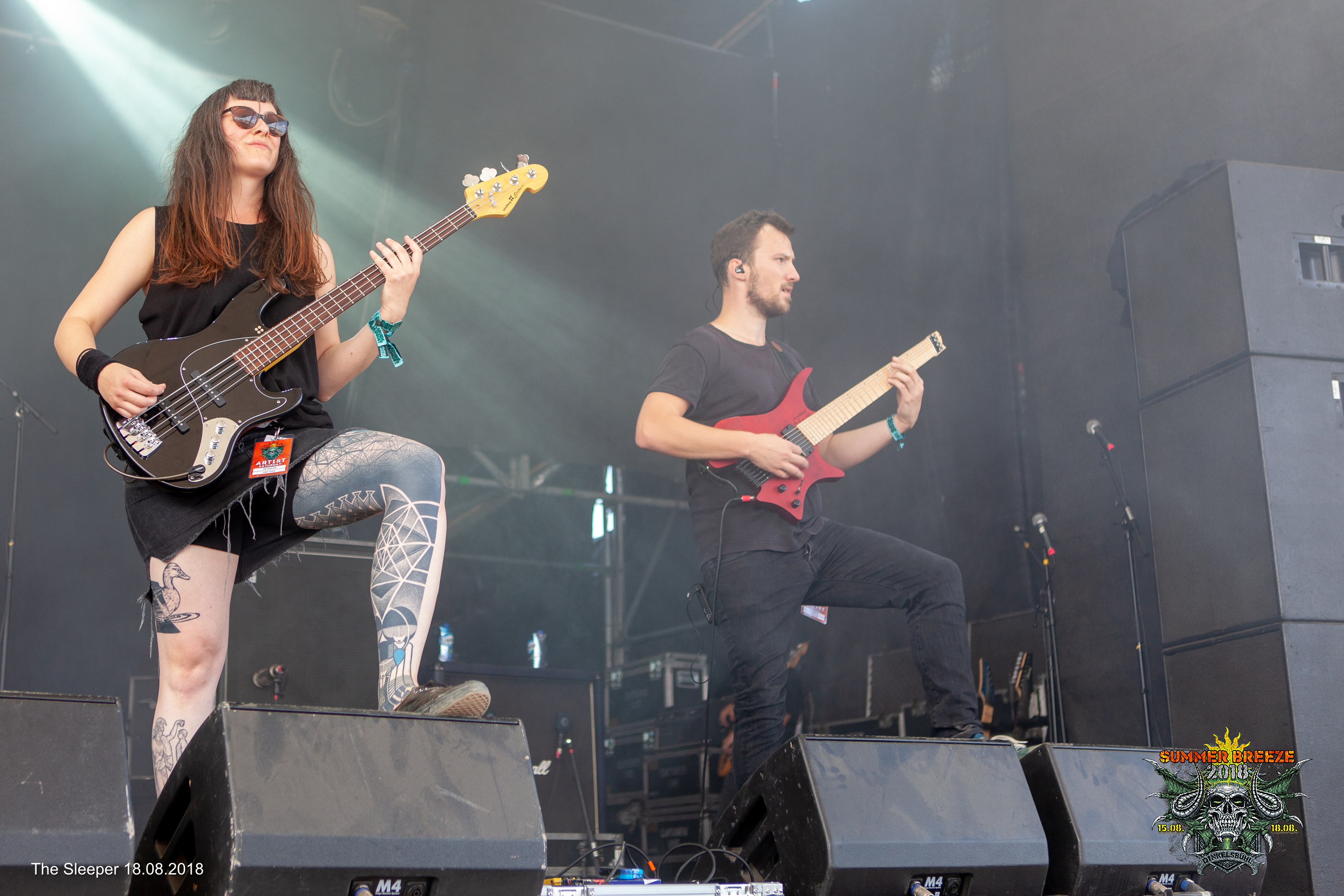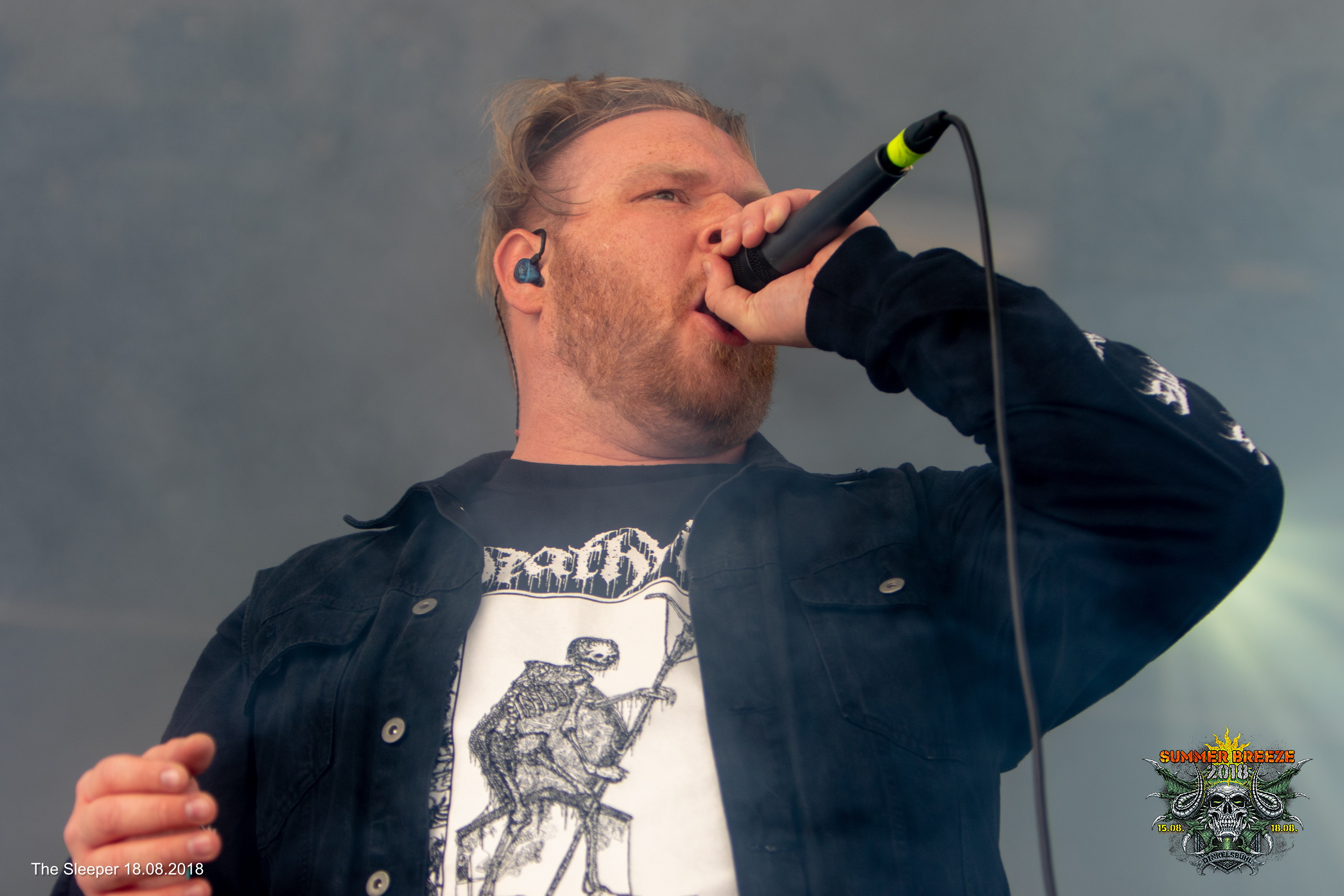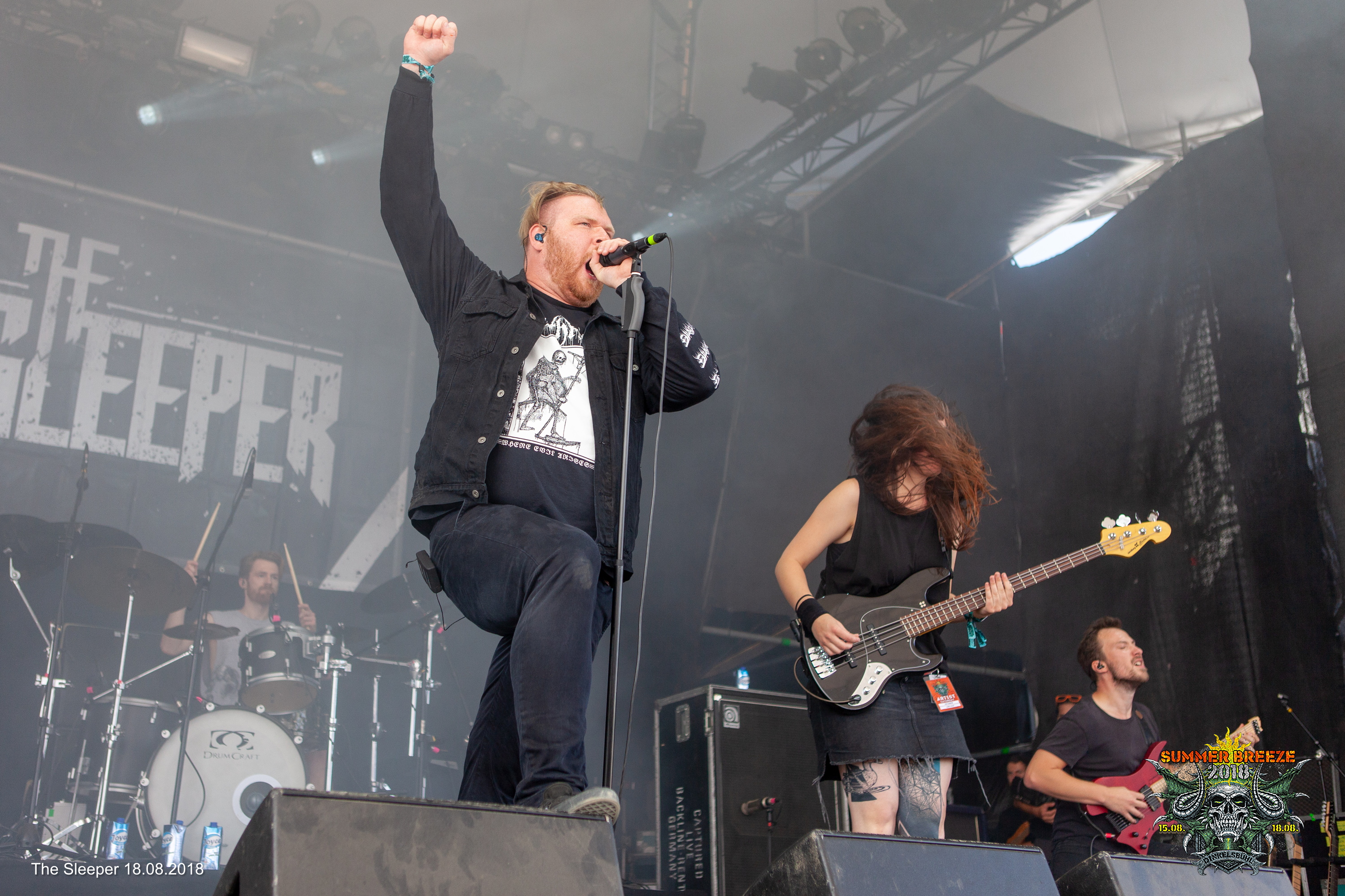 Für THE SLEEPER war es heute ein besonderer Auftritt und dass nicht nur, weil es zum ersten Mal aufs SUMMER BREEZE ging. Bassistin Anja, die die letzten eineinhalb Jahre für den eigentlichen Tieftöner Erik einsprang, spielte heute nämlich ihre letzte Show mit den Jungs und übergab das Zepter, ähh, den Bass, publikumswirksam zur Mitte des Sets an Erik zurück. Als Quasi-Sextett machten die Leipziger auch ordentlichen Alarm mit ihrem melodischen Metalcore, der aufgrund seiner deutlichen technischen wie komplexen Schlagseite aber alles andere als weichgespült daherkam – cleane Vocals des zweiten Gitarristen in den melodischen Parts hin oder her. Allerdings hatte der massige Fronter trotz des ordentlichen Dampfs anfangs doch so seine Mühen, dem Publikum mehr als Szenenapplaus zu entlocken. Erst nach und nach ließen sich die vorderen Reihen zu mehr als einem Kopfnicken bewegen und sorgten dann aber schnell für eine imposante Staubwolke vor der Bühne. Ein mehr als überzeugender Auftritt von THE SLEEPER, der sie für ein zukünftiges Wiedersehen empfahl.
