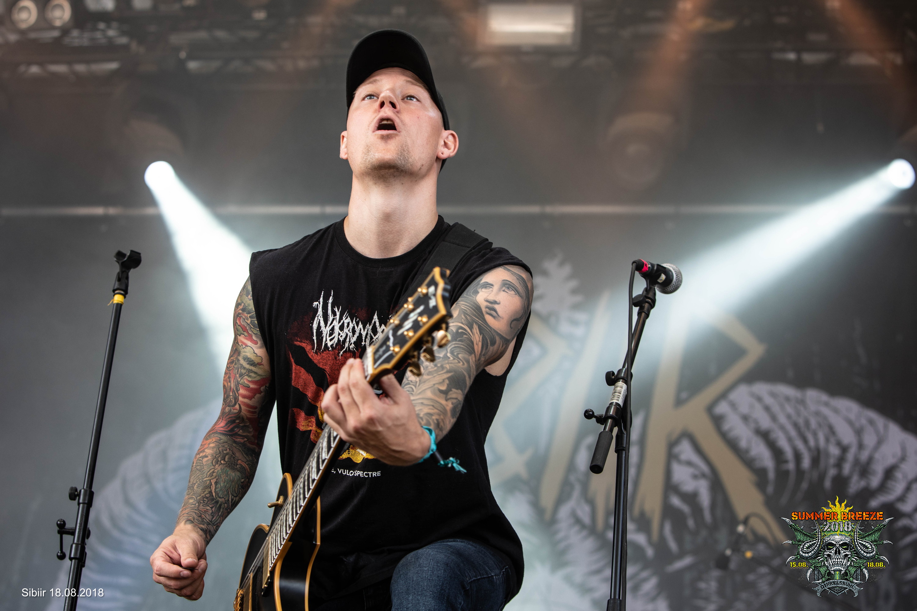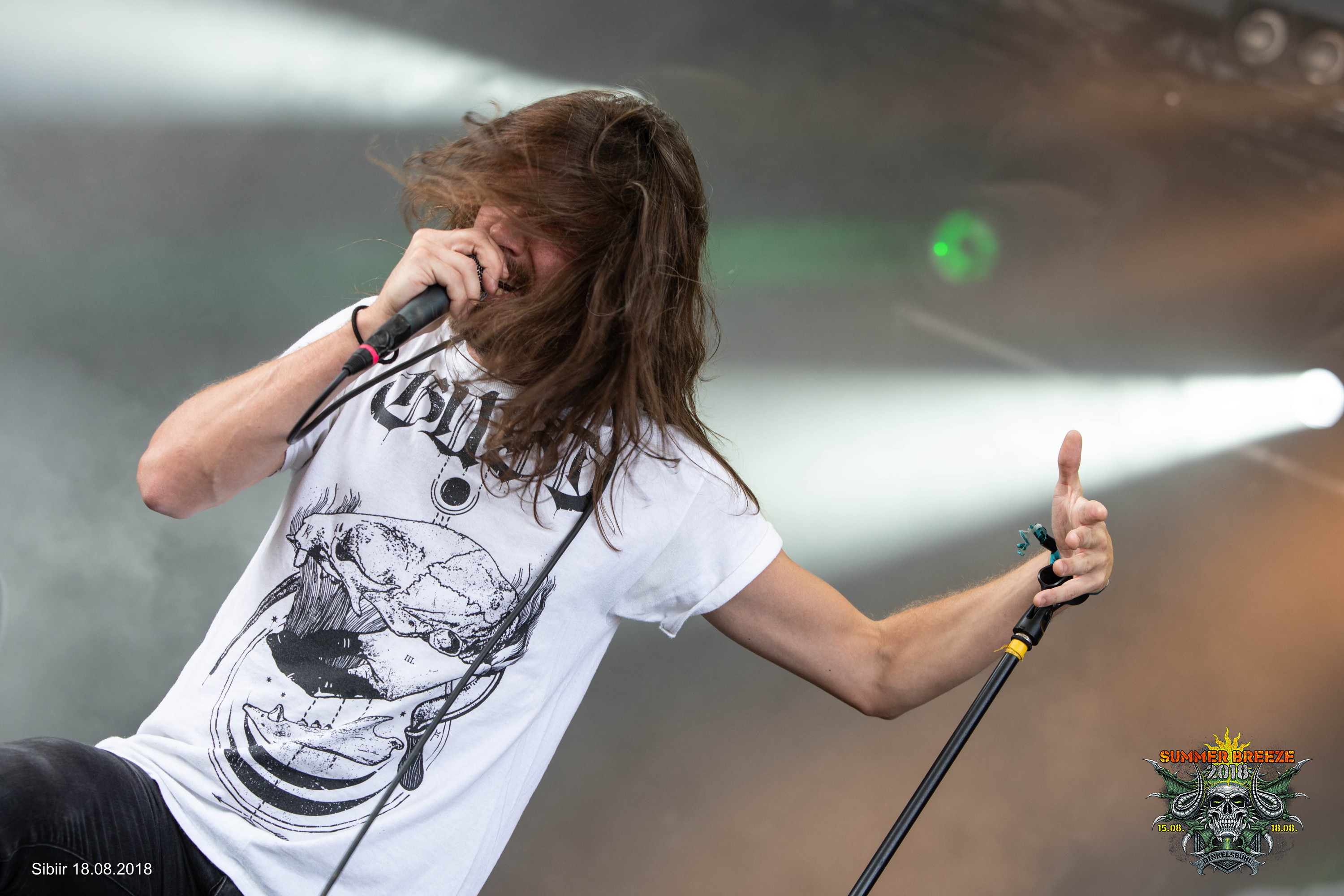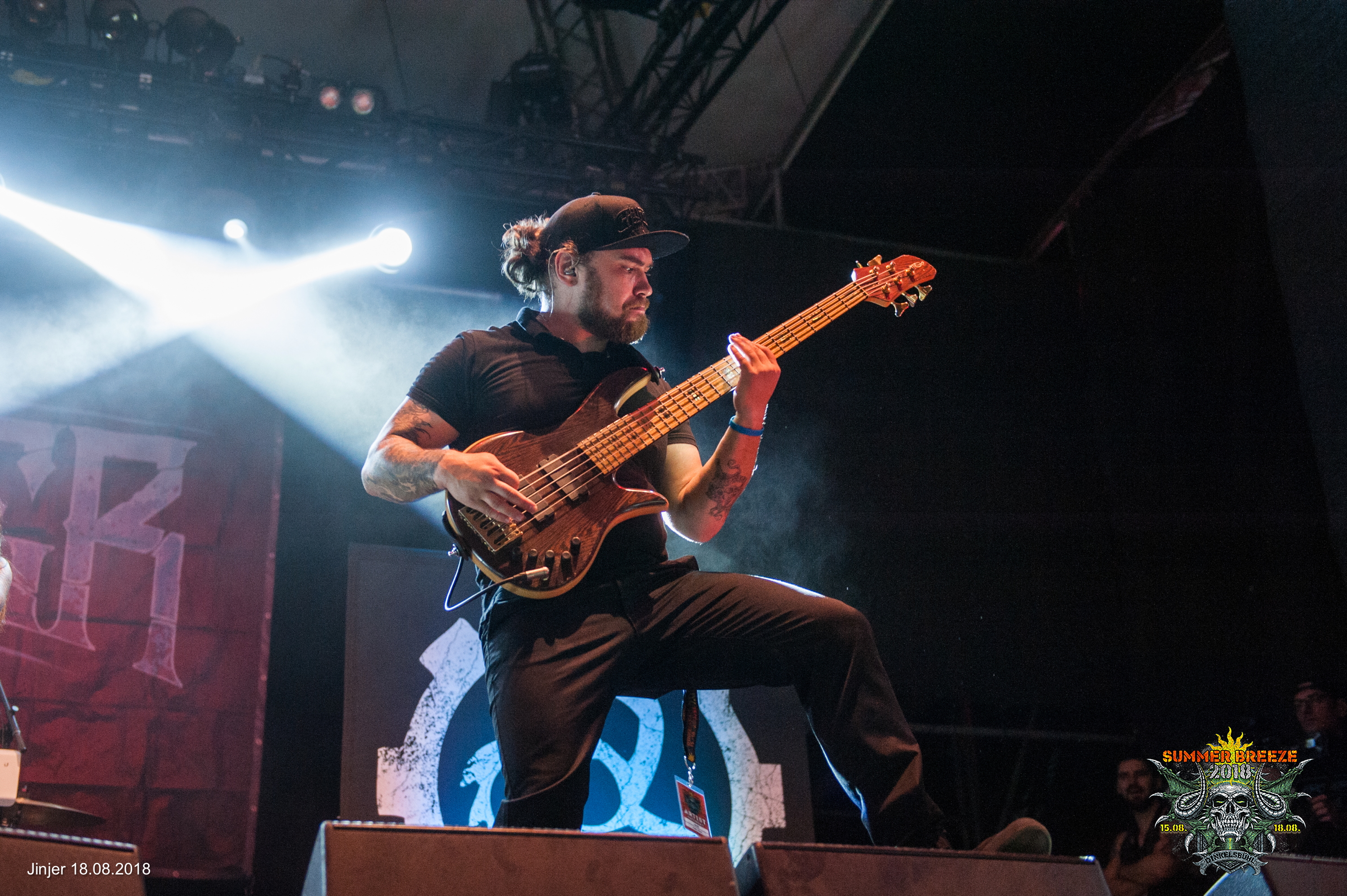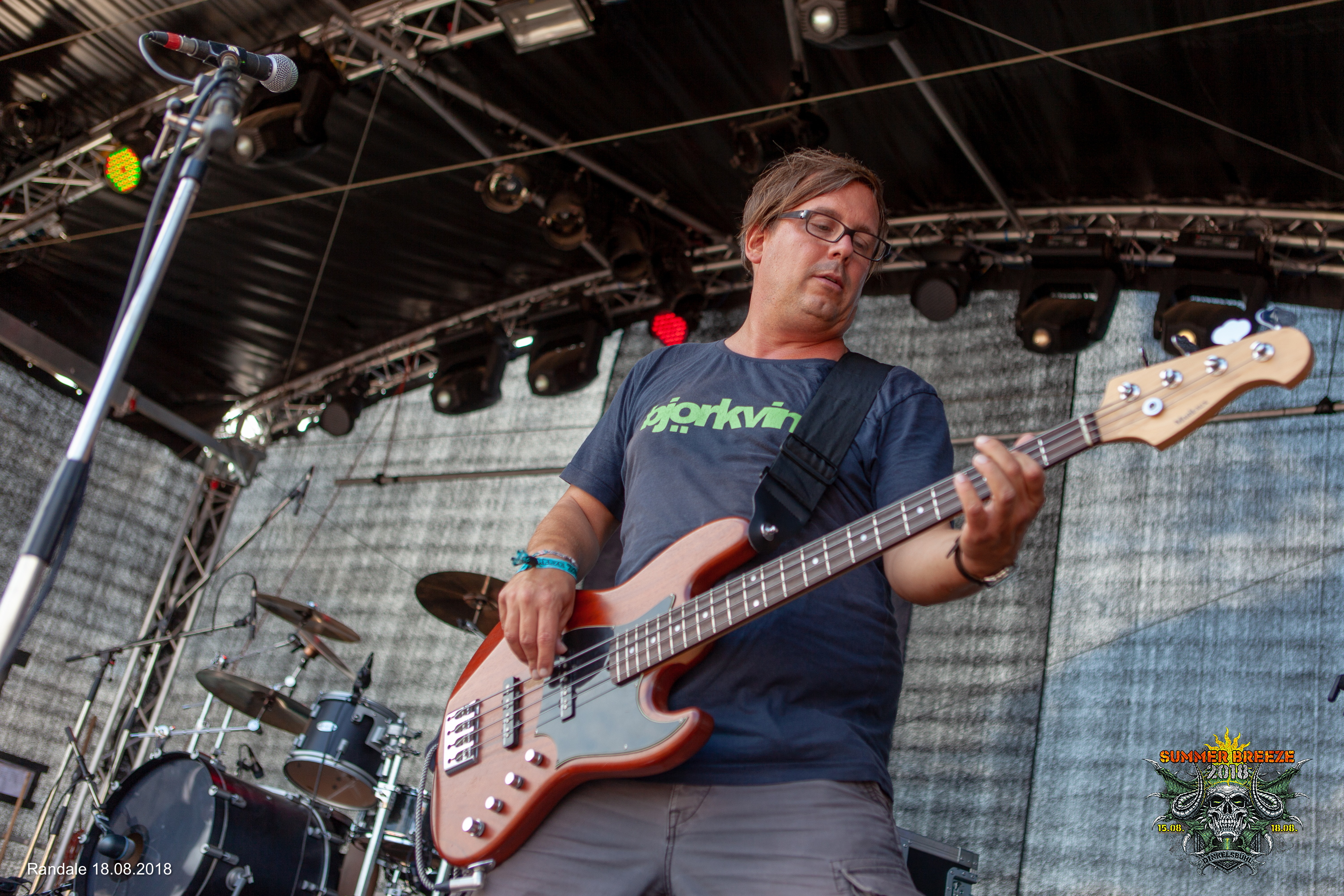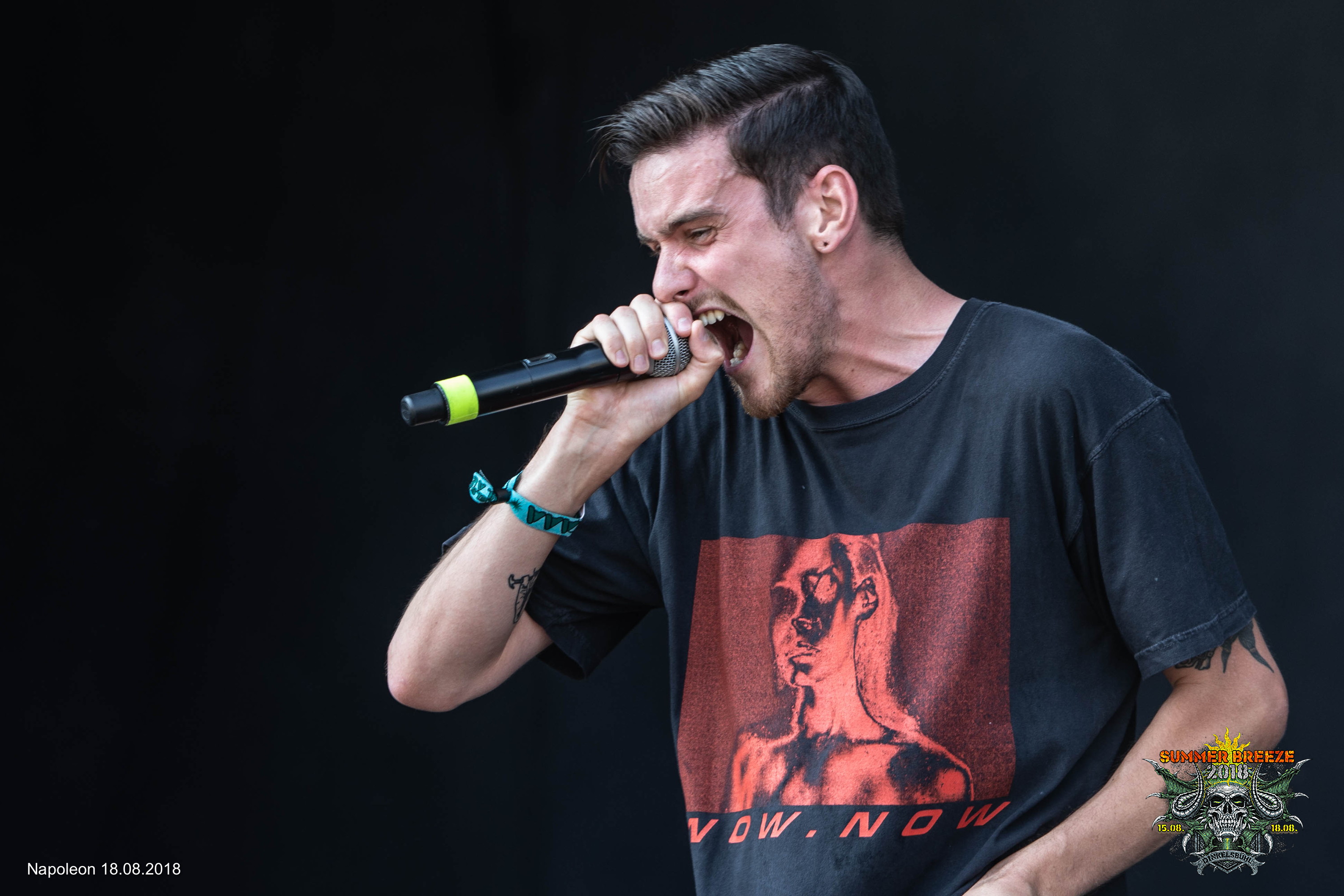 Für THE SLEEPER war es heute ein besonderer Auftritt und dass nicht nur, weil es zum ersten Mal aufs SUMMER BREEZE ging. Bassistin Anja, die die letzten eineinhalb Jahre für den eigentlichen Tieftöner Erik einsprang, spielte heute nämlich ihre letzte Show mit den Jungs und übergab das Zepter, ähh, den Bass, publikumswirksam zur Mitte des Sets an Erik zurück. Als Quasi-Sextett machten die Leipziger auch ordentlichen Alarm mit ihrem melodischen Metalcore, der aufgrund seiner deutlichen technischen wie komplexen Schlagseite aber alles andere als weichgespült daherkam – cleane Vocals des zweiten Gitarristen in den melodischen Parts hin oder her. Allerdings hatte der massige Fronter trotz des ordentlichen Dampfs anfangs doch so seine Mühen, dem Publikum mehr als Szenenapplaus zu entlocken. Erst nach und nach ließen sich die vorderen Reihen zu mehr als einem Kopfnicken bewegen und sorgten dann aber schnell für eine imposante Staubwolke vor der Bühne. Ein mehr als überzeugender Auftritt von THE SLEEPER, der sie für ein zukünftiges Wiedersehen empfahl.