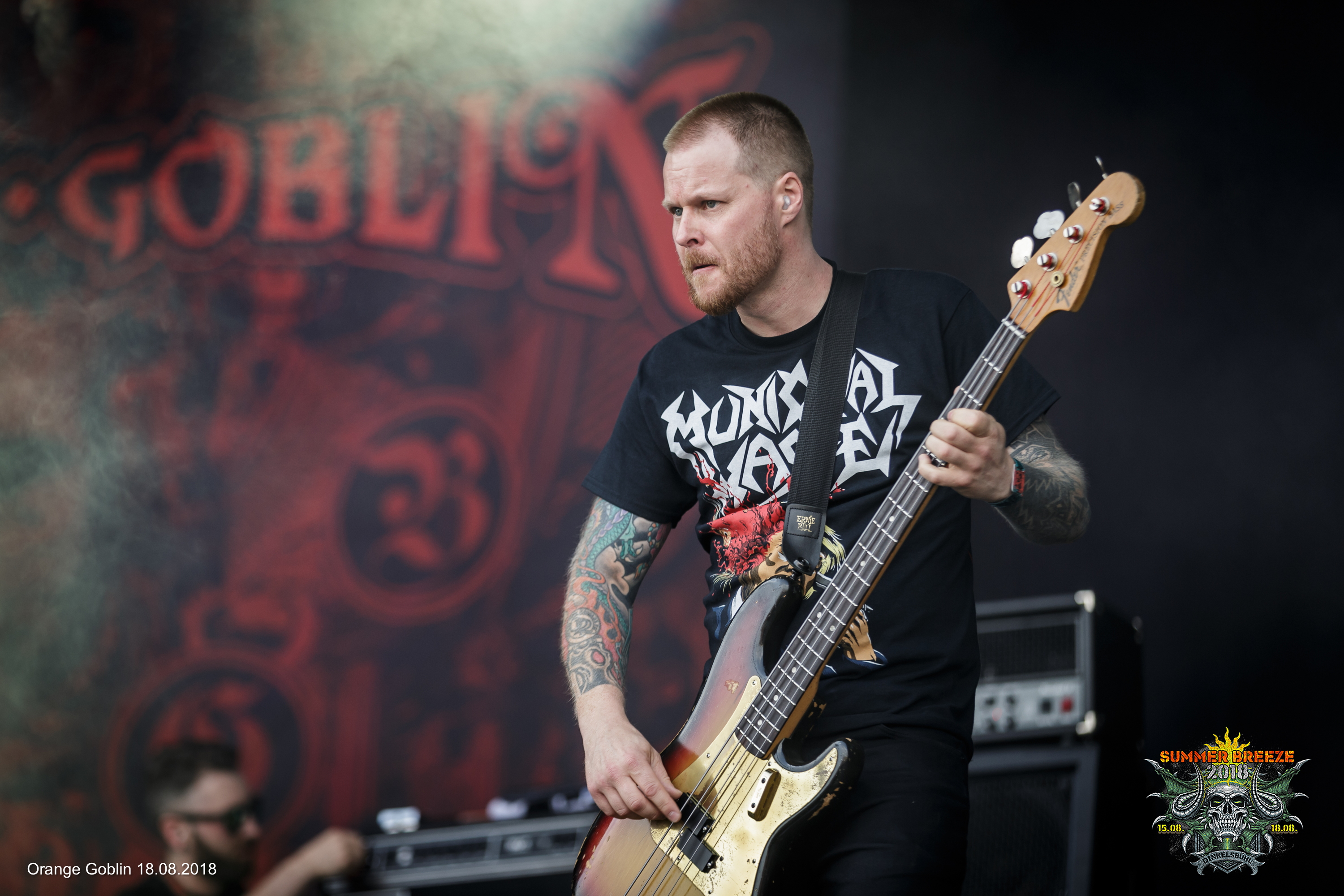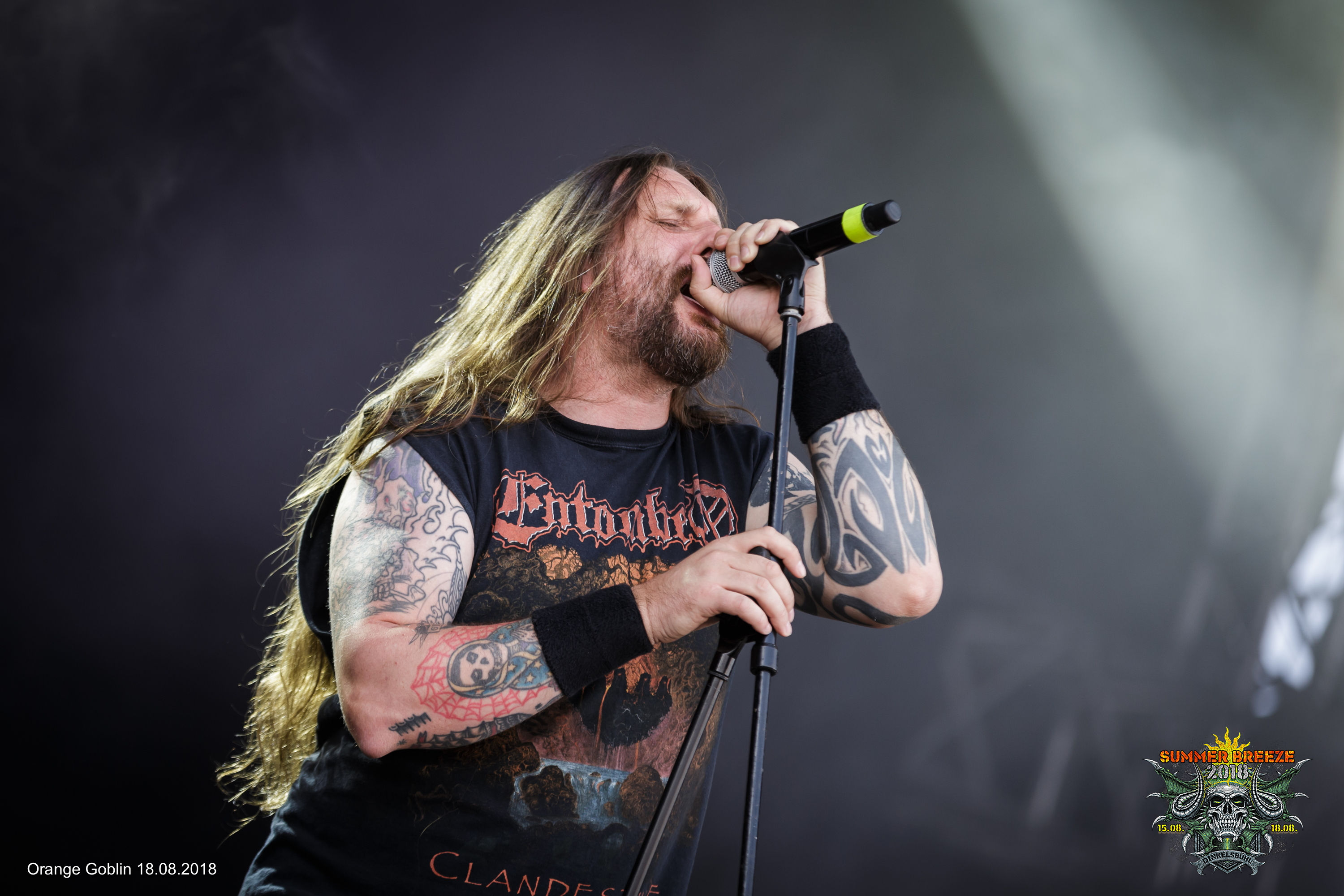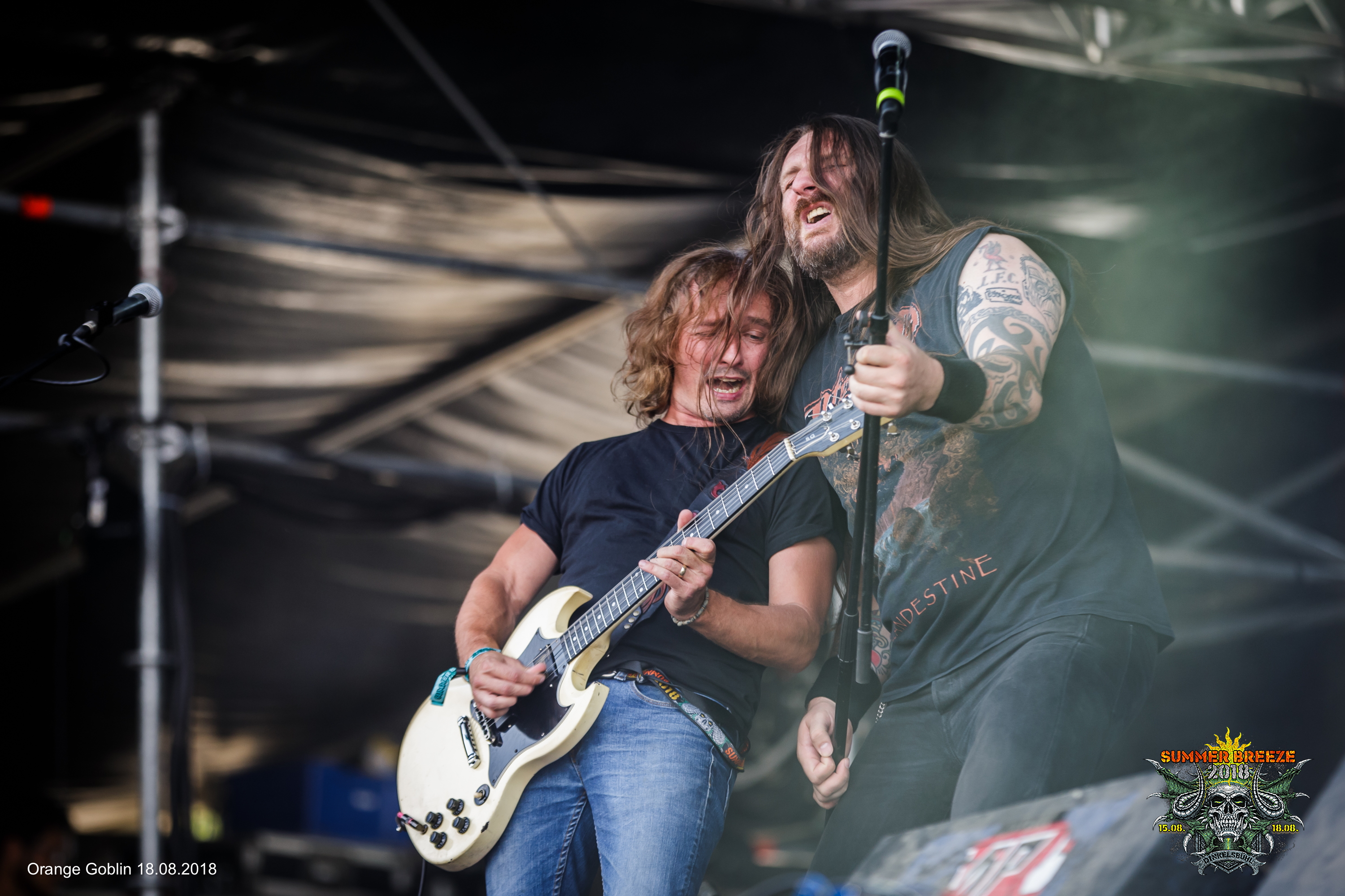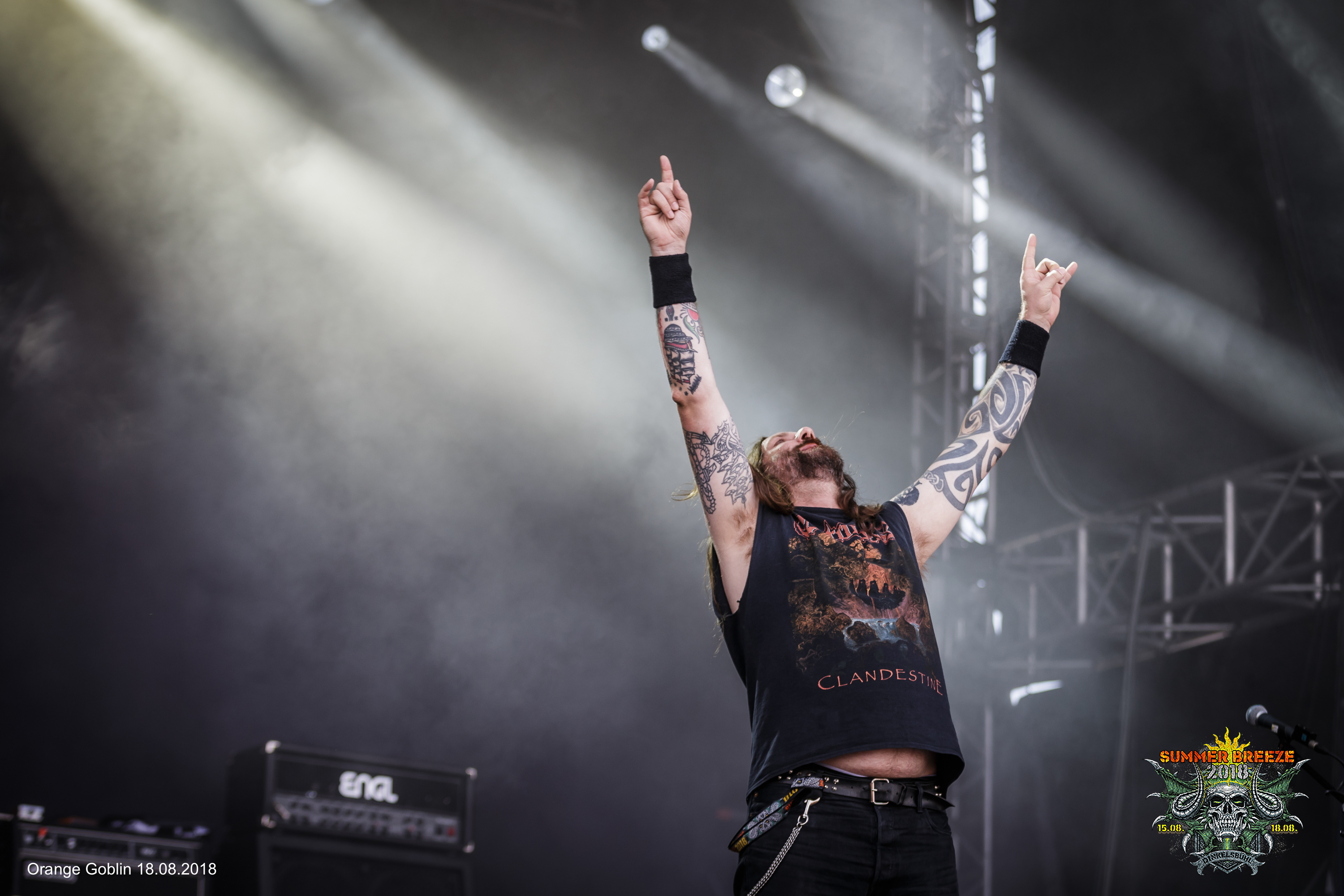 Ein bisschen Motörhead, ein bisschen Kyuss, viel Sabbath, Dosenbier und Attitüde ergeben in der Summe das Erfolgsrezept von ORANGE GOBLIN, die sich in diesem Jahr zum ersten Mal die Ehre auf dem SUMMER BREEZE gaben. Und schon nach wenigen Songs zeigte sich Sänger Ben Ward so angetan von den Gegebenheiten, dass er zwischen den Songs ins Schwärmen über die „perfect audience“ bei diesem „perfect heavy metal festival“ geriet. Trotz leichter technischer Probleme zu Beginn des Auftritts gingen die zahlreich versammelten Zuschauer von Anfang an mit, reckten die Fäuste und schüttelten die Mähnen. Mit „The Filthy And The Few“ beschwor Ward den Zusammenhalt der Metal-Szene, im übernächsten Song „They Come Back“ versammelten er alle Horror-Fans zu einer amtlichen „Wall of Death“. Man nahm es dem Mann augenblicklich ab, als er am Ende des Sets verkündete, dass er genau für Live-Momente wie diese seit 23 Jahren mit ORANGE GOBLIN Musik mache. Nach ihrem fulminanten Einstand dürfte man sie gerne in den kommenden Jahren wieder willkommen heißen.