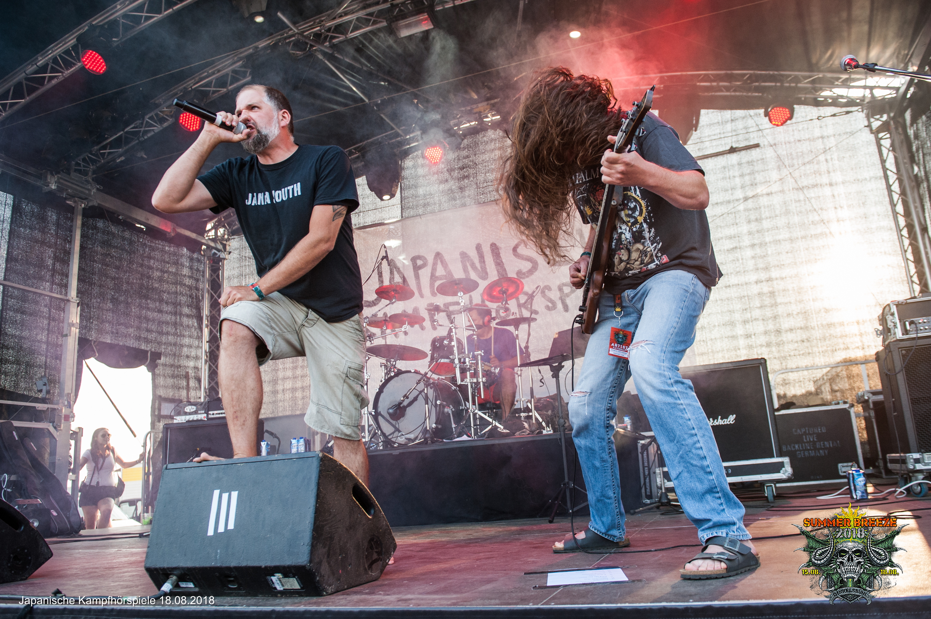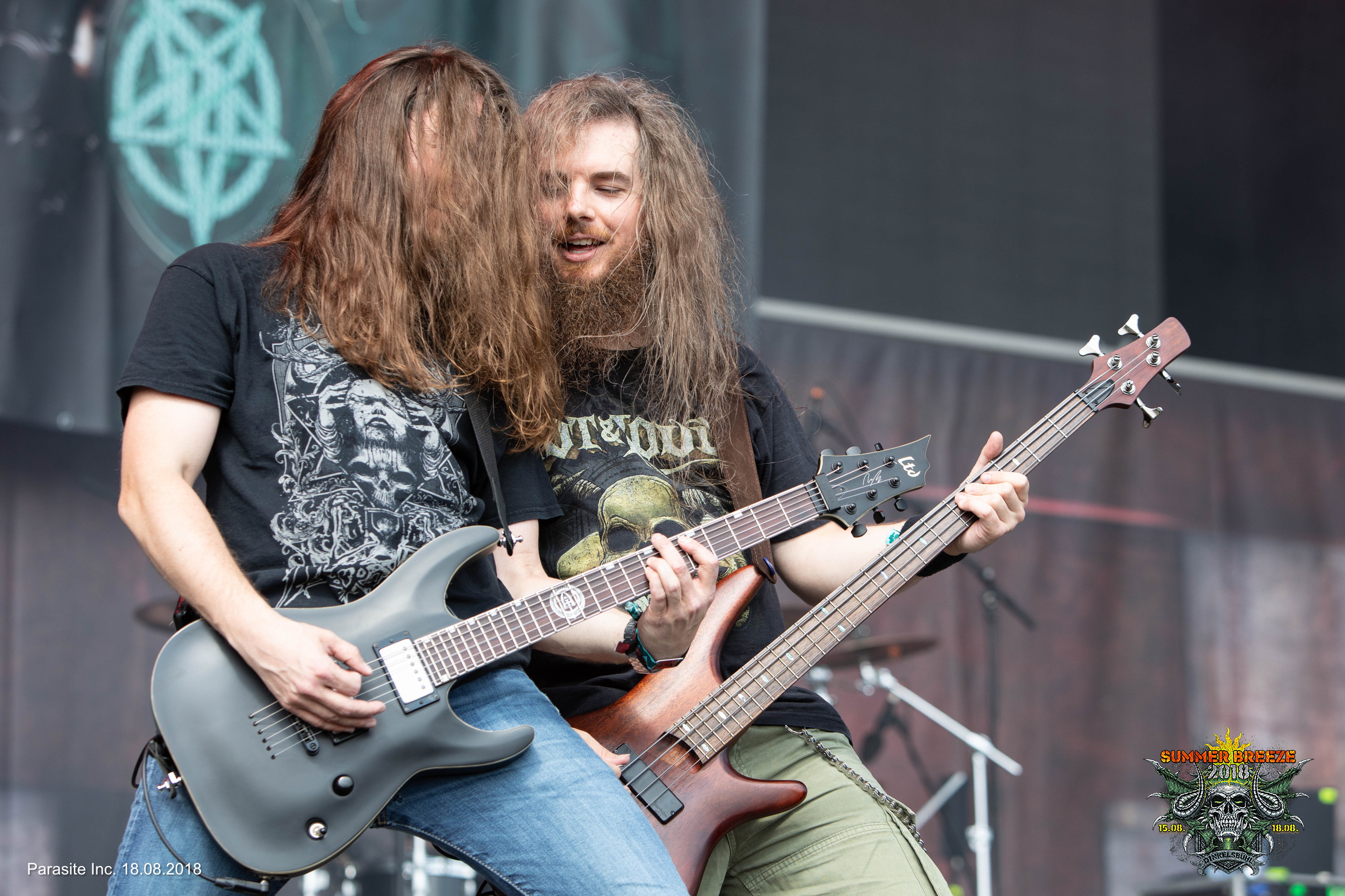 War das Festival in der vorigen Nacht dank ALCEST und HARAKIRI FOR THE SKY noch stimmungsvoll und melancholisch ausgeklungen, gab es an diesem Festivalsamstag morgens das komplette Kontrastprogramm in Form des PARASITE INC.-Gigs auf der Main Stage. Das Battlefield war bereits mehr als ordentlich gefüllt. Und mit dem ersten Ton melodischen Death Metals, den die Aalener durch die Anlage pressten, waren etwaige Themen wie Schlafdefizit, Kater und Müßiggang wie weggeblasen. Beginnend mit dem Intro „Countershock“ und dem folgenden „Once And For All“ wurden sofort sämtliche Nacken im Publikum beansprucht. Eine regelrechte Party feierte das Publikum, das nicht nur die älteren Stücke, sondern auch schon die neueren Tracks vom just erschienenen Album „Dead And Alive“ euphorisch in Empfang nahm. Und dessen Titeltrack boten PARASITE INC. schließlich mit freundlicher Unterstützung von Johnny Stecker von Soulbound, der die Clean Vocals des Songs übernahm. Dank diverser morgentlicher Circle Pits oder einfach nur begeistertem Headbangen war das Thema Frühsport auch gleich mit erledigt – quasi Win-Win-Situation.