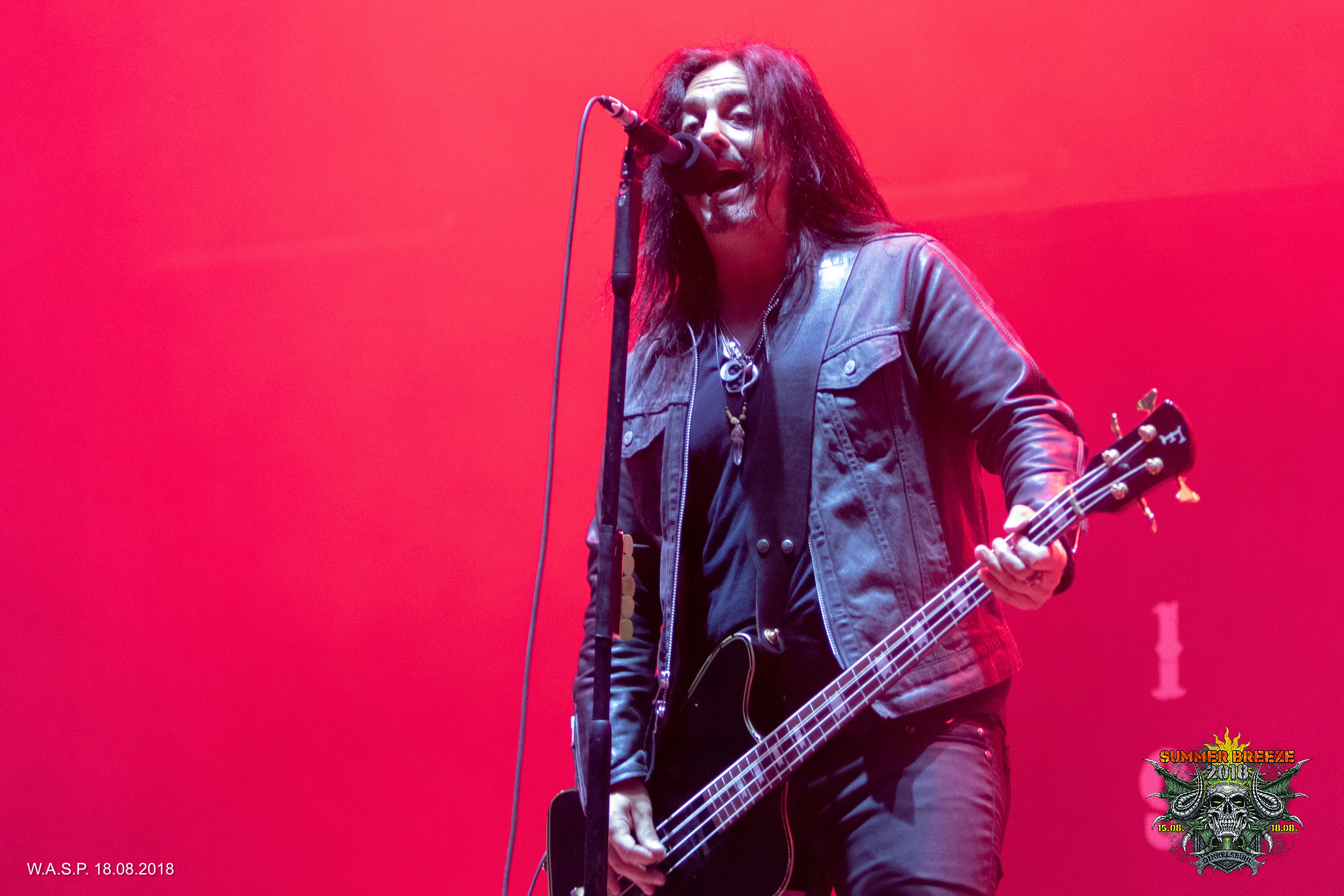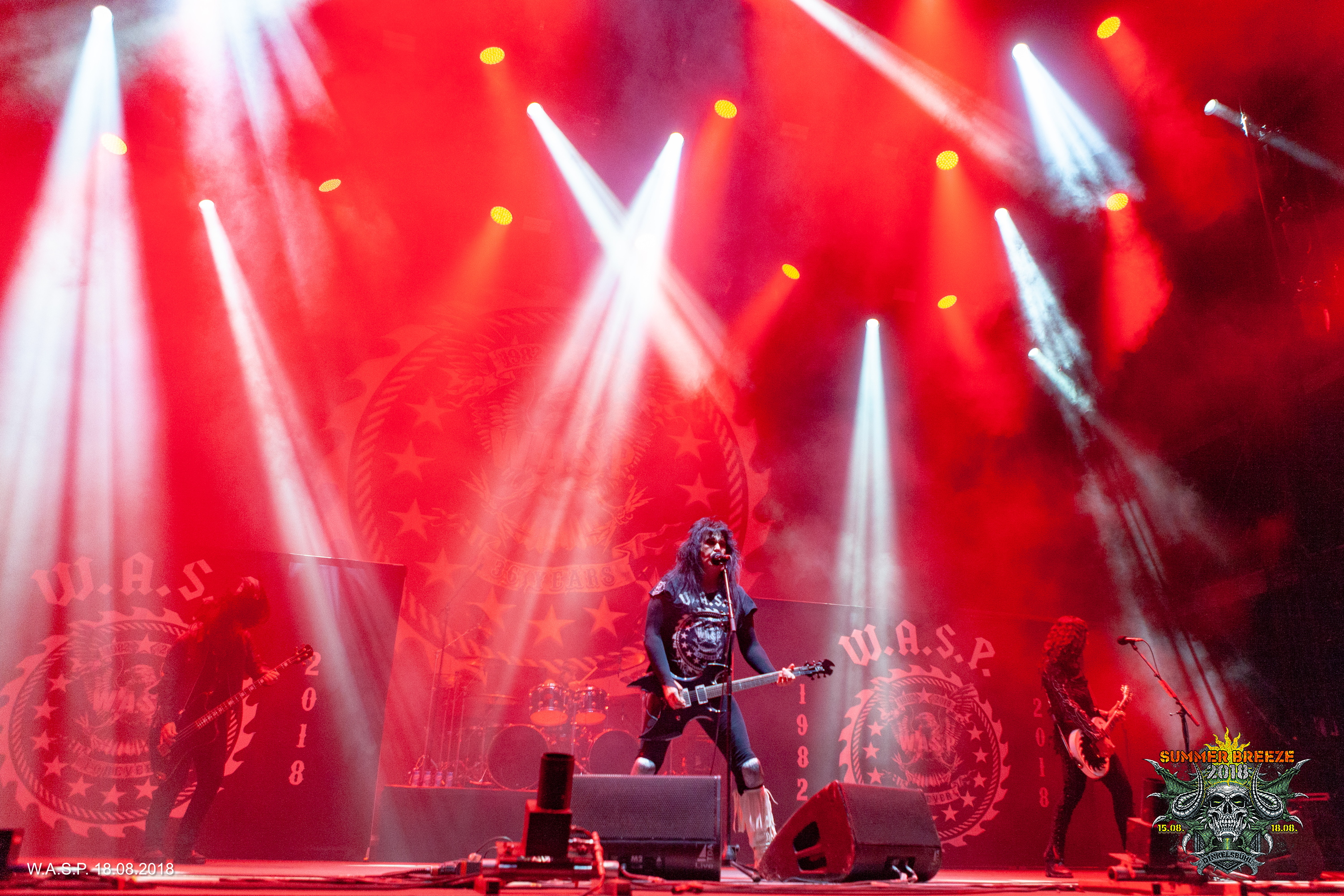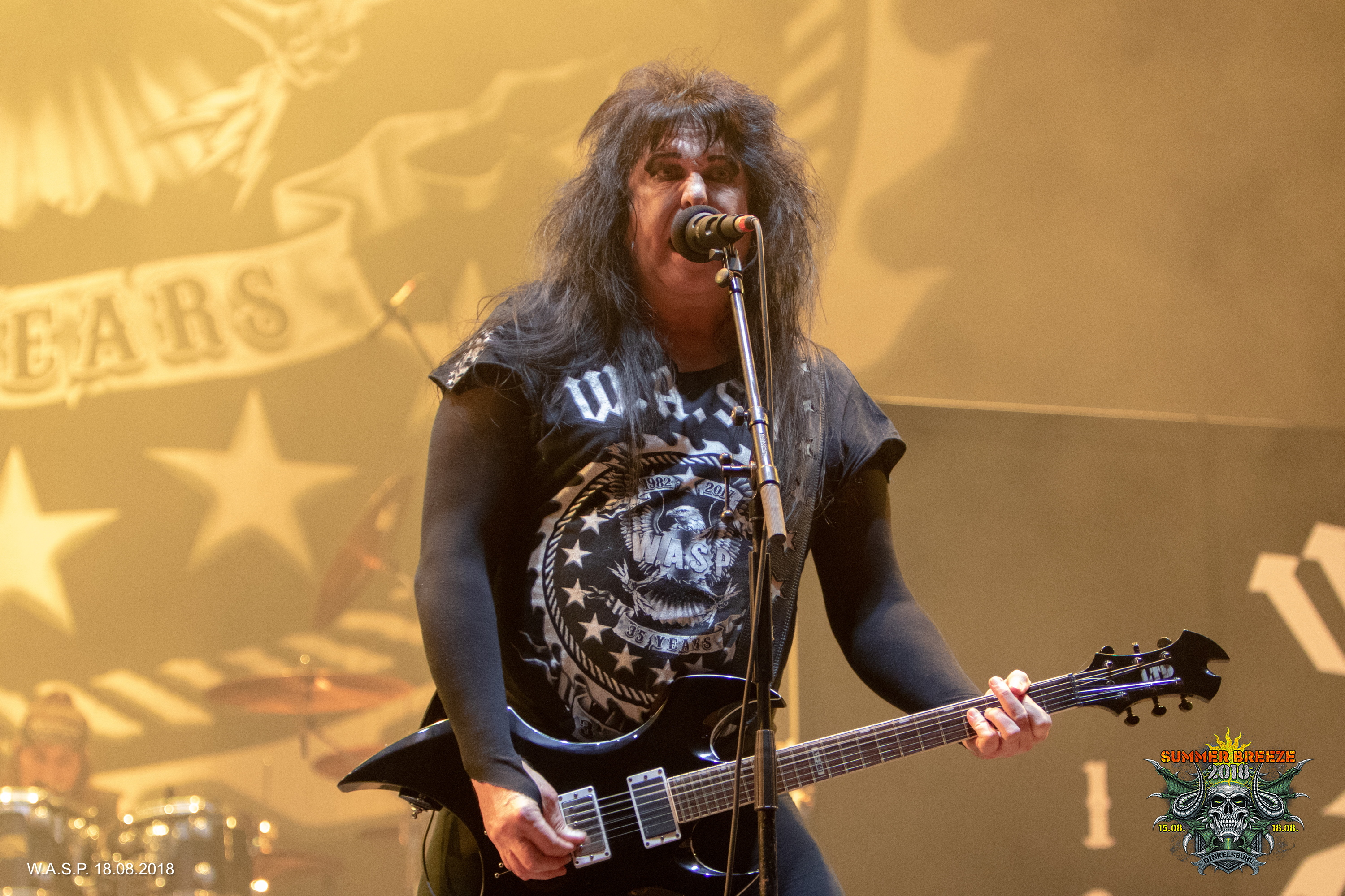 Ins gedimmtem Rotlicht der Bühne knallte lautes Sirenengeheul und sofort war allen Anwesenden klar: Da kommt etwas Großes! Es folgte ein kurzes eingespieltes Medley aus “Wild Child“, “I Wanna Be Somebody“ und etlichen anderen Megahits, das mit einem finalen Knall dann den tatsächlichen Konzertbeginn von W.A.S.P. einläutete. Blackie Lawless ist natürlich über die Jahre nicht jünger geworden, wirkte aber sehr energiegeladen. Die Pony-Frisur saß wie in alten Zeiten. Mit weißen Cowboyboots, engen Jeans und Bandshirt der eigenen Combo knallte er mit gewohnt kratziger Stimme einen Schocker nach dem anderen in die Nacht. Der Rest der Gruppe lief stilecht in Lack und Leder auf. Sowohl die ältere als auch die jüngere Generation der auf dem SUMMER BREEZE versammelten Besucher wurde schlagartig zurück in die 80er katapultiert. Eine Zeit, in der Social Media und Smartphones nie eine Rolle gespielt hatten – und doch fanden sich natürlich diverse gezückte Handys, die den Auftritt filmten. Spätestens bei “Love Machine“ hatten W.A.S.P. ihr Publikum vollends in ihren Bann gezogen – mit “L.O.“ machte die Band den Anfang, übergab dann an die Menge, die nur zu gerne “V.E. – All I Need’s My Lovemachine“ ergänzte. Die Stimmung war ausgelassen und selbst die diversen Gitarrensoli taten dem keinen Abbruch, sondern fachten das Feuer eher noch an. W.A.S.P. setzten bis zum Ende ihrer Darbietung auf extreme Publikumsnähe – ein kurzes Dankeschön und ab dafür? Von wegen! Die Menge ließ sie so leicht nicht von Dannen ziehen. Nach minutenlangen “I Wanna Be Somebody“-Chören wurde das Flehen der Crowd tatsächlich erhört und die Kalifornier kamen zum Kettensägensound von “Chainsaw Charlie“ für eine Zugabe zurück auf die Bühne. Drei veritable Klassiker schüttelten die Haare aller Beteiligten noch einmal kräftig durch, ehe bei den Fans allmählich Heiserkeit Einzug hielt und glückliche Gesichter in Richtung Stage strahlten.