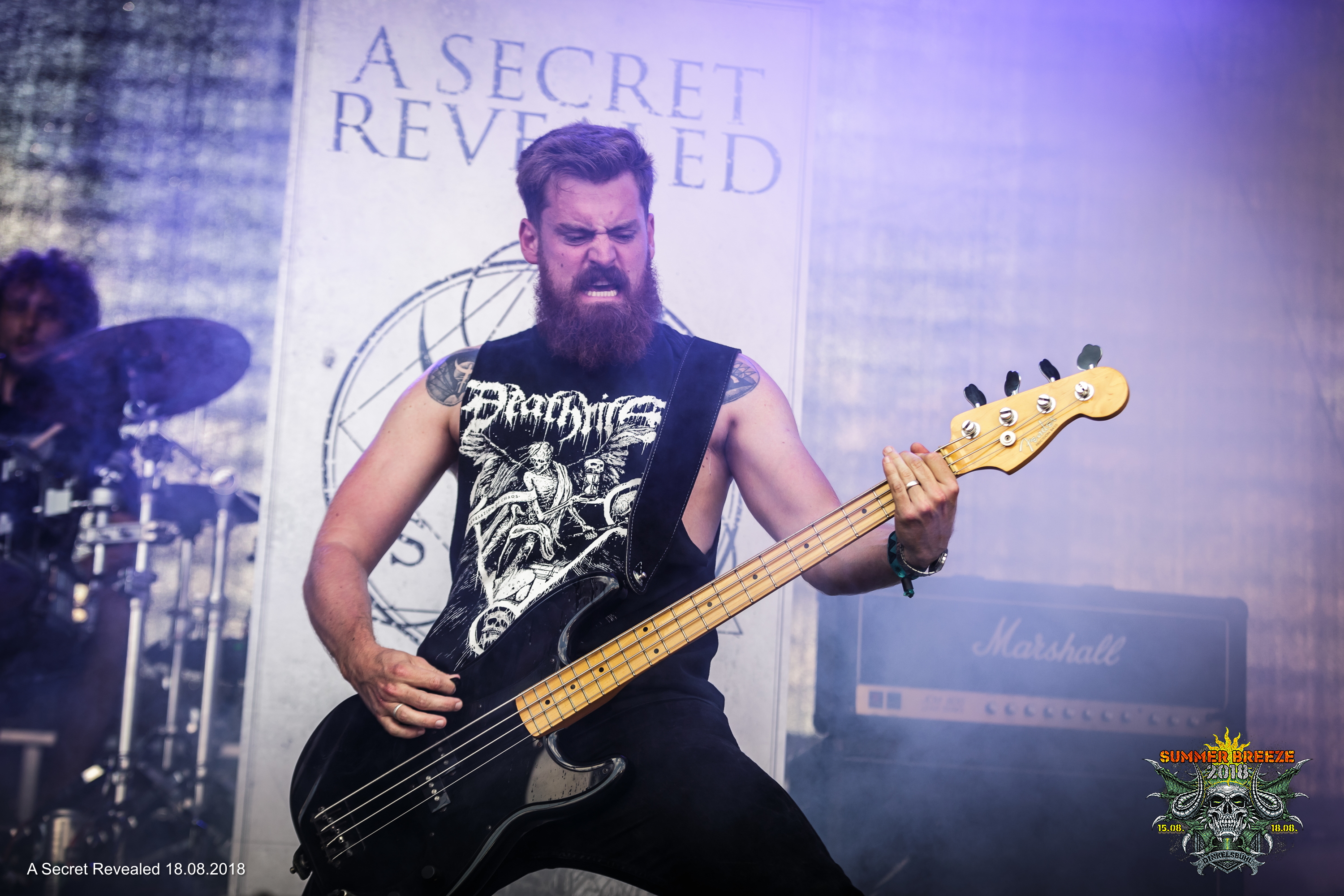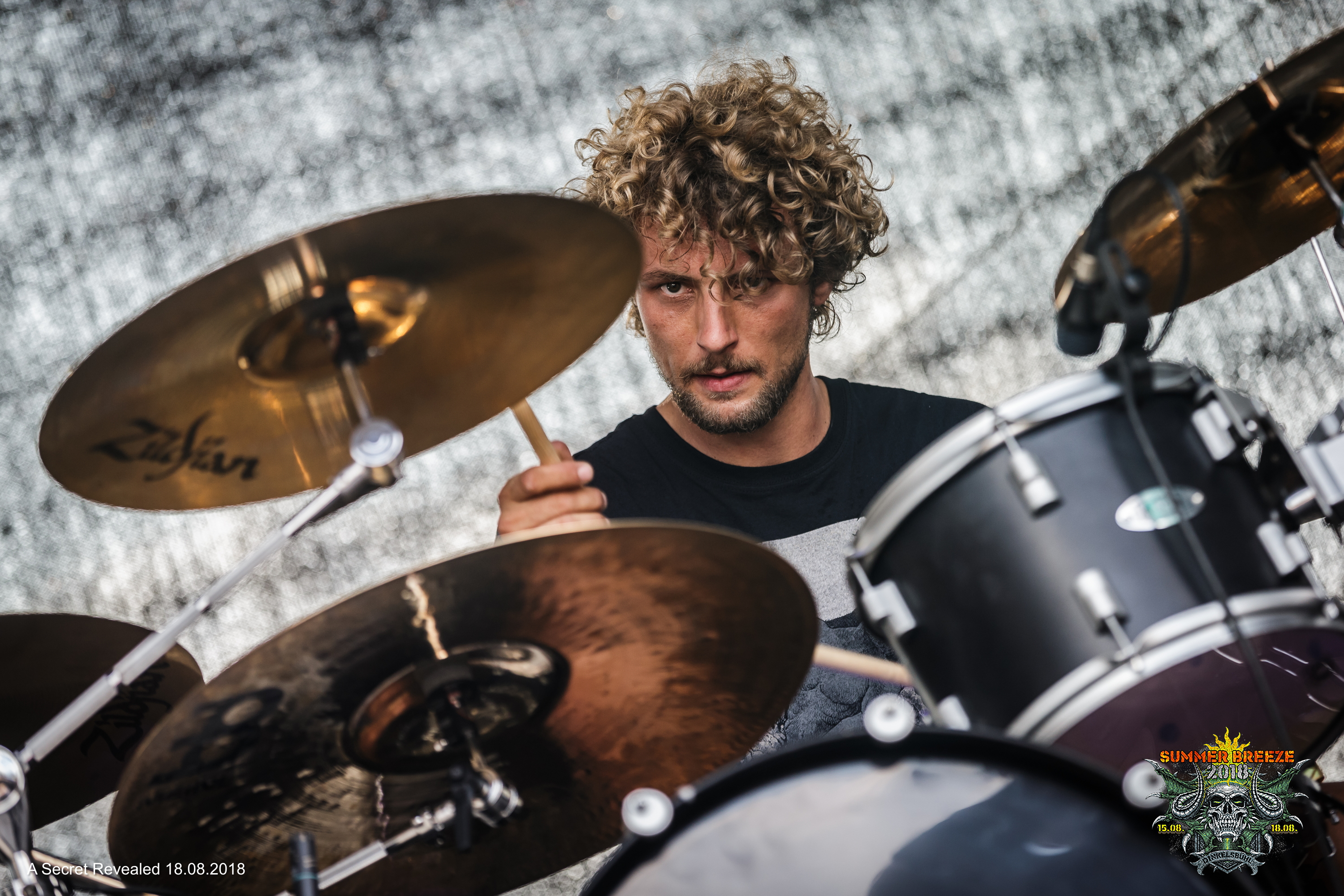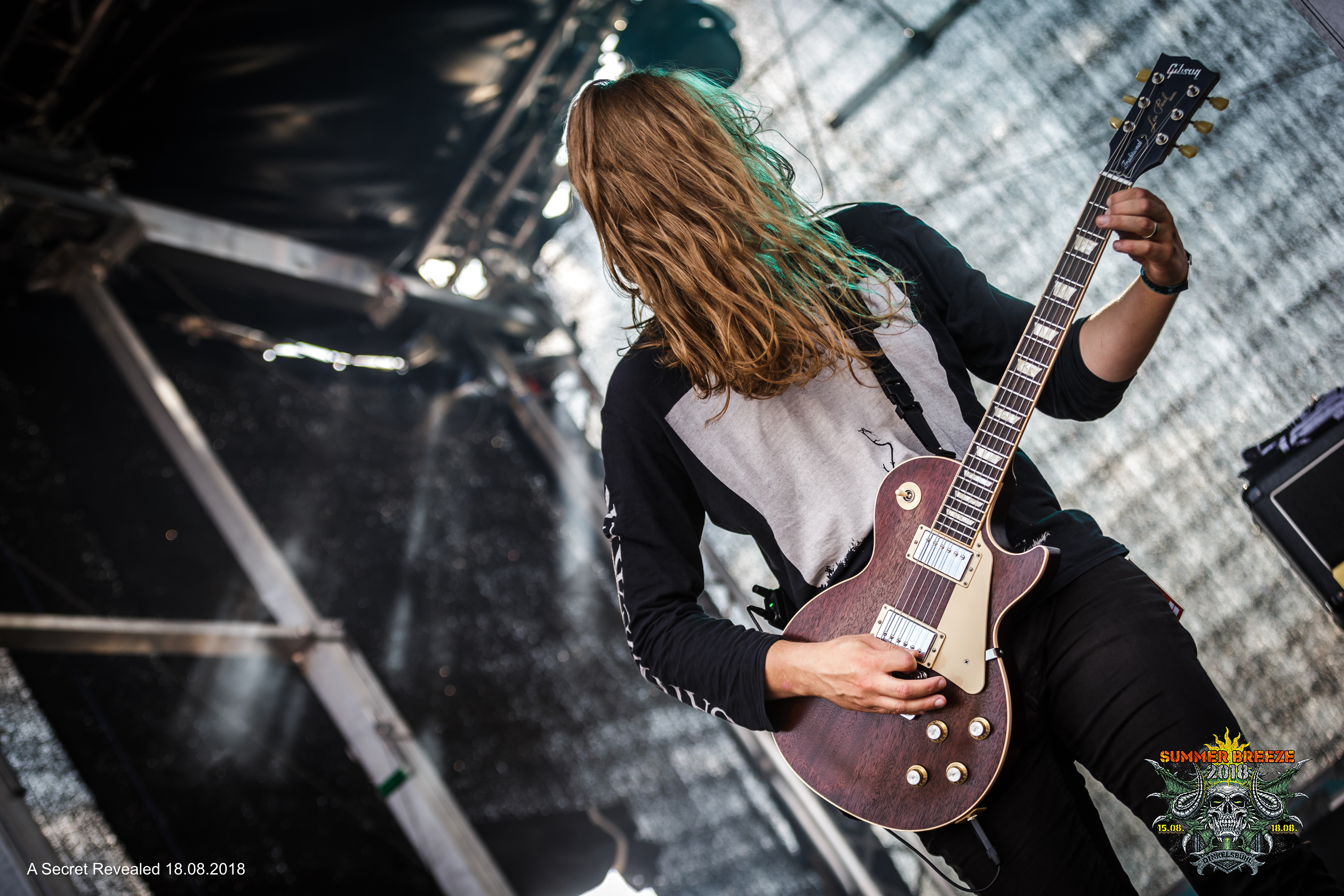 Manch einer dachte sehnsüchtig an den Regenschauer vom Vortag als der Planet kurz vor der Show von A SECRET REVEALED gnadenlos vom Himmel stach, aber dafür waren die wenigen Plätze im Schatten direkt vor der Bühne auch umso begehrter. Aber schon kurz nach dem Beginn des Auftritts der Band verschwendete niemand mehr einen Gedanken ans Wetter – man wäre wohl auch im dunklen Club ruckzuck ins Schwitzen gekommen! Und geschwitzt hat wohl auch die Band, die allesamt in langen Hosen und schwarzem Textil ans Werk gingen – einer der Gitarristen hatte sogar ein Longsleeve an! Er bereute seine Wahl aber offensichtlich und versuchte sich durch fast konstantes vehementes Headbangen wenigstens etwas Luft herbeizuwirbeln. Die eigentliche Überraschung der Show war weniger der immer voller werdende Platz oder die hingebungsvolle Performance der Band trotz unmenschlicher Temperaturen, sondern vielmehr dass ihr Post Core-Sound, der regelrecht nach einer Umsetzung bei Dunkelheit und mit entsprechenden Lichtakzenten schrie, auch wunderbar bei hellem Tageslicht funktionierte. Der Fronter beschränkte seine Ansagen zwischen den Songs – wohl auch wegen der knappen Spielzeit – aufs nötigste und konzentrierte sich auf eine beeindruckende und leidenschaftliche Darbietung. Die halbstündige Show hat wohl allen Anwesenden Lust auf eine komplette Show der Band gemacht!