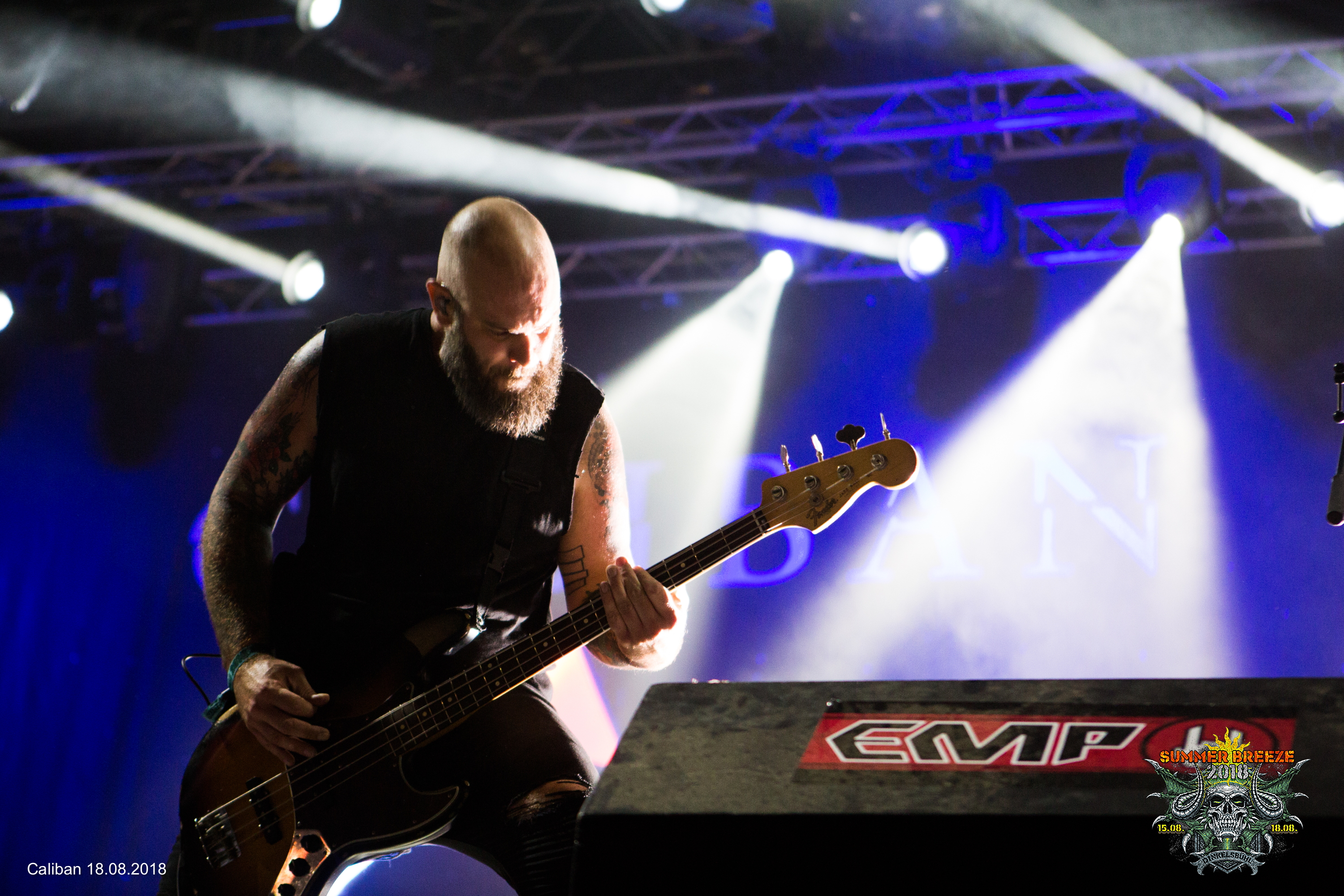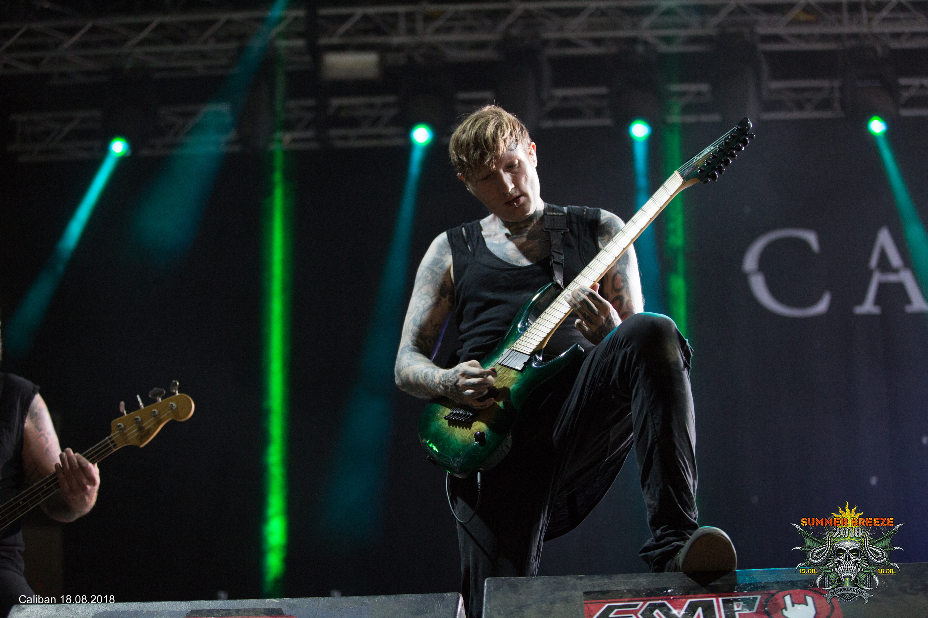 Die deutsche Metalcore-Institution CALIBAN legte auf der T-Stage einen Blitzstart hin und sorgte sofort für Alarm auf und vor der Bühne: Das Publikum feierte jedenfalls sowohl den Opener „This Is War“ als auch sich selbst mit unheimlich viel Bewegung. Da geriet es zur Nebensache, dass Sänger und Rauschebart-Träger Andreas Dörner sich bei der ersten Ansage erst einmal verhaspelte. Schließlich waren es die Songs, die die perfekte Grundlage für die große Party der feierwütigen Meute bildeten – egal ob alte Stücke oder Tracks vom aktuellen Album „Elements“. Harte Beats und messerscharfe Riffs wurden untermalt durch flächige Synthiesamples, die Screams von Dörner kontrastiert durch Klargesang von Gitarrist Denis Schmidt. Eine Mischung, wie sie derzeit nur wenige Bands neben CALIBAN so gut hinbekommen. Da war es nur eine Frage der Zeit, bis der Frontmann nach einer Wall of Death verlangte (und sie vom Publikum prompt bekam), Circle Pits initiierte und Crowdsurfer in Richtung der Grabensecurity losschickte. Besonders sick war ein Crowdsurfer-Duo unterwegs, bei dem einer der beiden wie auf einem Surfbrett auf dem Rücken seines Kumpels über die Menge glitt. Untermalt wurde das Metalcore-Spektakel durch eine effektvolle Lichtshow mit einem beleuchteten Backdrop im „Elements“-Design und Spots in den bestäubten Nachthimmel. Die Band ist bei allem Erfolg aber auch bescheiden geblieben, wie Dörner in einer seiner Ansagen zeigte: „So Leude, wer war denn bei PAPA ROACH? Und dann seid ihr zu uns gedackelt? – Meganice!“ Schön war denn auch nicht nur die durch lautes Mitsingen abgefeierte Coverversion von Rammsteins „Sonne“, sondern auch die beim abschließenden Song „Nothing“ durchgeführte Aktion, jedem Crowdsurfer beim Rauslaufen aus dem Bühnengraben ein T-Shirt mitzugeben. Stark!