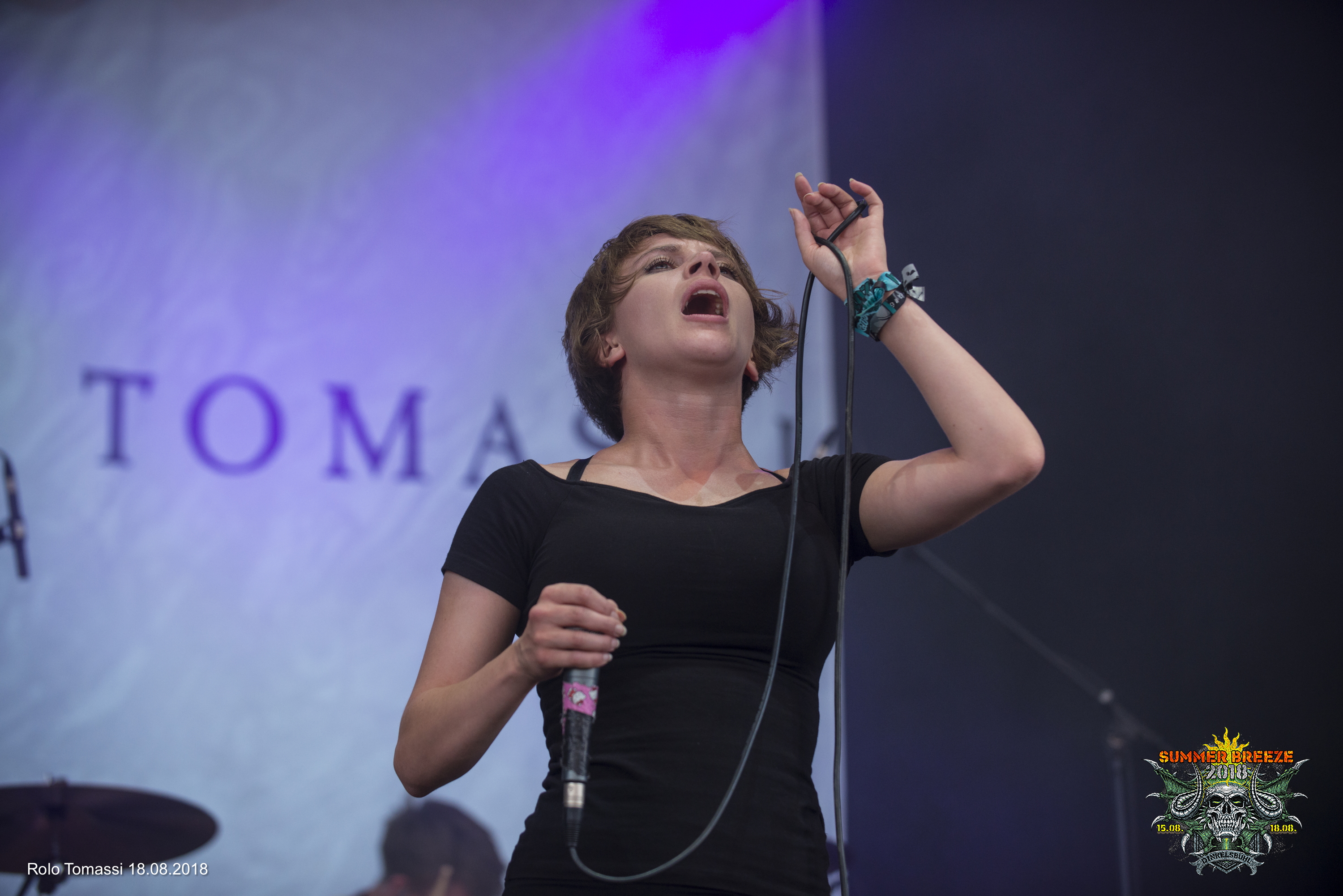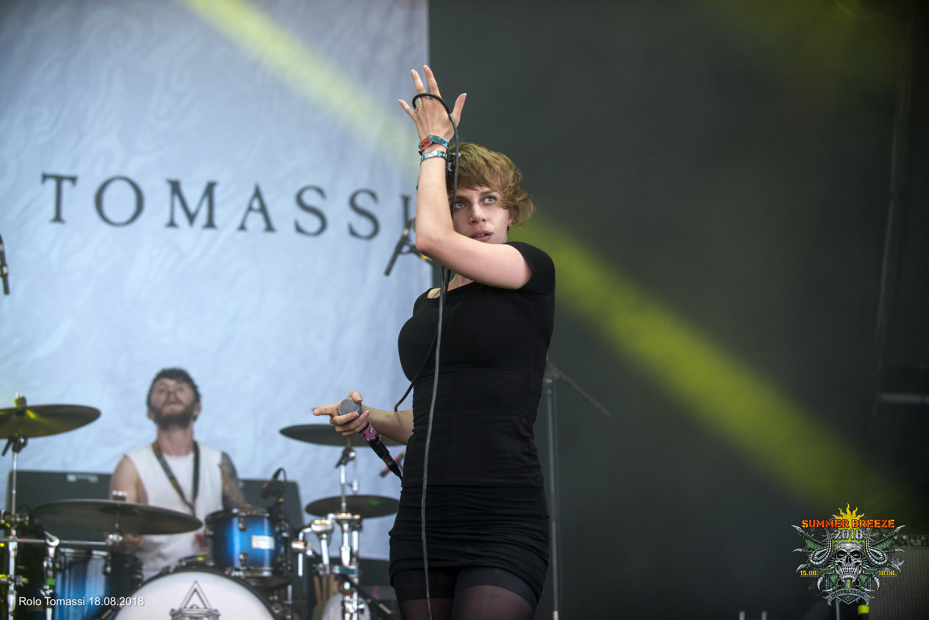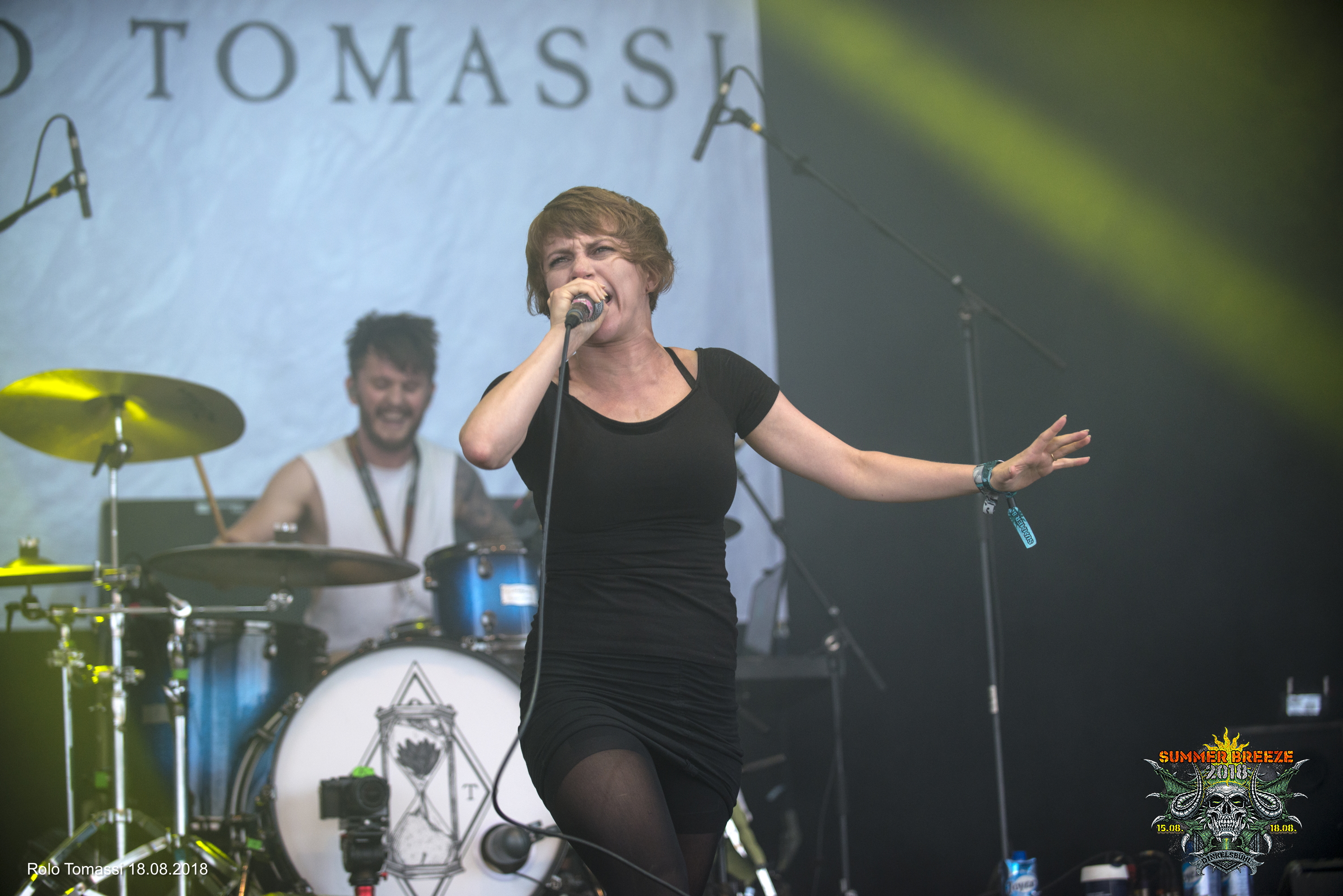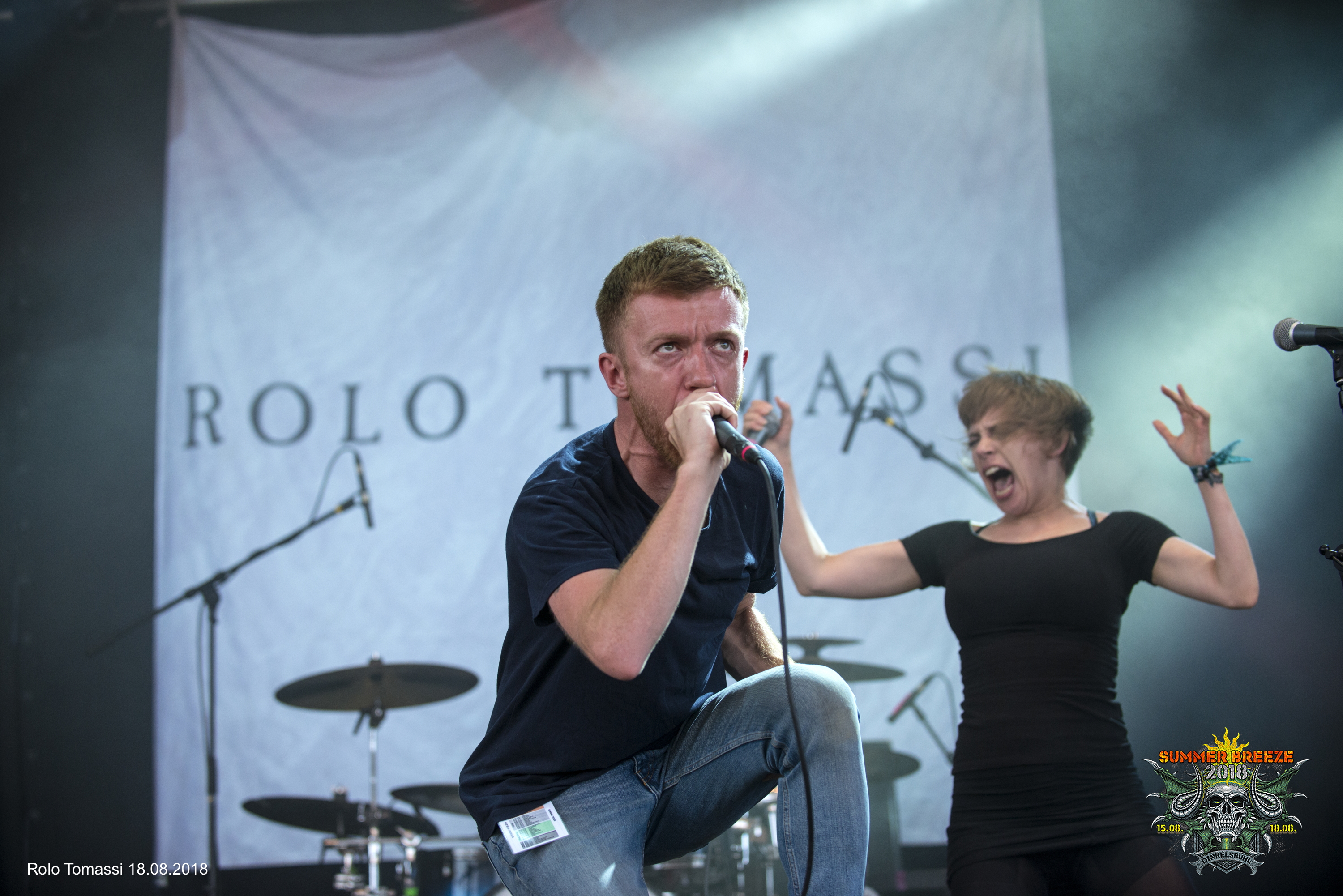„We are ROLO TOMASSI from the UK. It is a pleasure to be here.“ Hach ja, die typisch britische Höflichkeit, von der jedoch im weiteren Verlauf des Auftrittes von ROLO TOMASSI nicht viel übrig bleiben sollte. Von wegen höflich anklopfen, von wegen Prog sei nicht sexy: ROLO TOMASSI bewiesen am frühen Samstagabend allein durch die dynamische Präsenz von Frontshouterin Eva Spence das Gegenteil. Elegant gekleidet und mit bestimmtem Hüftschwung zog sie als definitiver Hingucker des Lineups schnell die Blicke auf sich. Doch schon kurz danach entlud sich die angestaute Aggression und Spence brüllte wie vom Teufel besessen einfach alles nieder, was keine Miete zahlte. Dieser Auftritt verkam jedoch nicht zur Ein-Frau-Show, sondern stellte schnell die progressiven Qualitäten der Briten zur Schau. Krumme Rhythmen, ungelenke Hardcore-Ausbrüche und Breakdown-lastige Riffkaskaden bestimmten das Klangbild der Band, welche die Camel Stage noch einmal ordentlich erbeben ließ. Keyboarder James Spence stieg immer wieder ins Gebrüll mit ein und übernahm auch die Ansagen, die sich während der lärmenden Attacken ergaben. Praktisch, so ein Abrisskommando, da brauchte man fast die Crew zum Abbau der Stage nicht mehr zu bemühen.