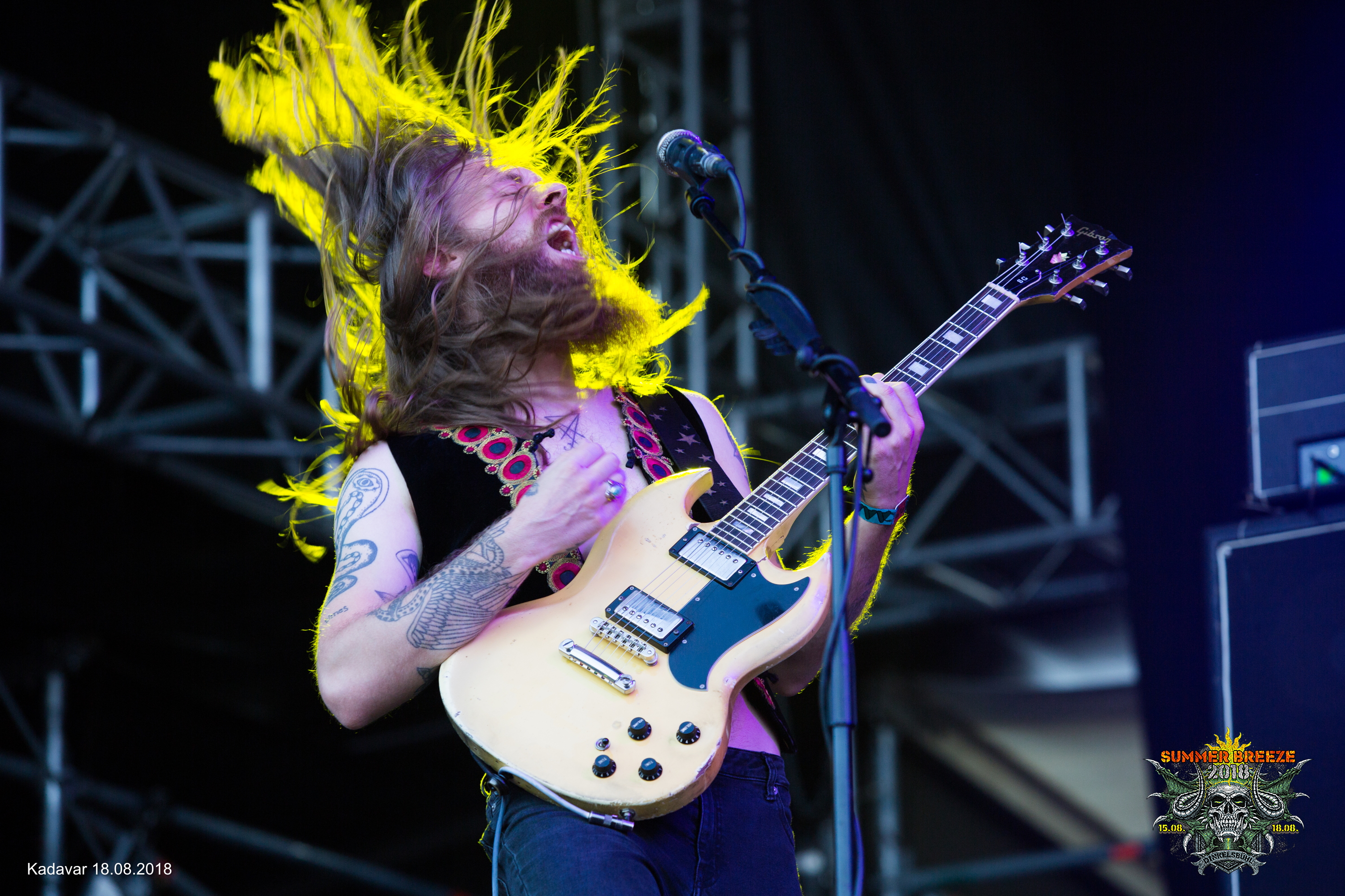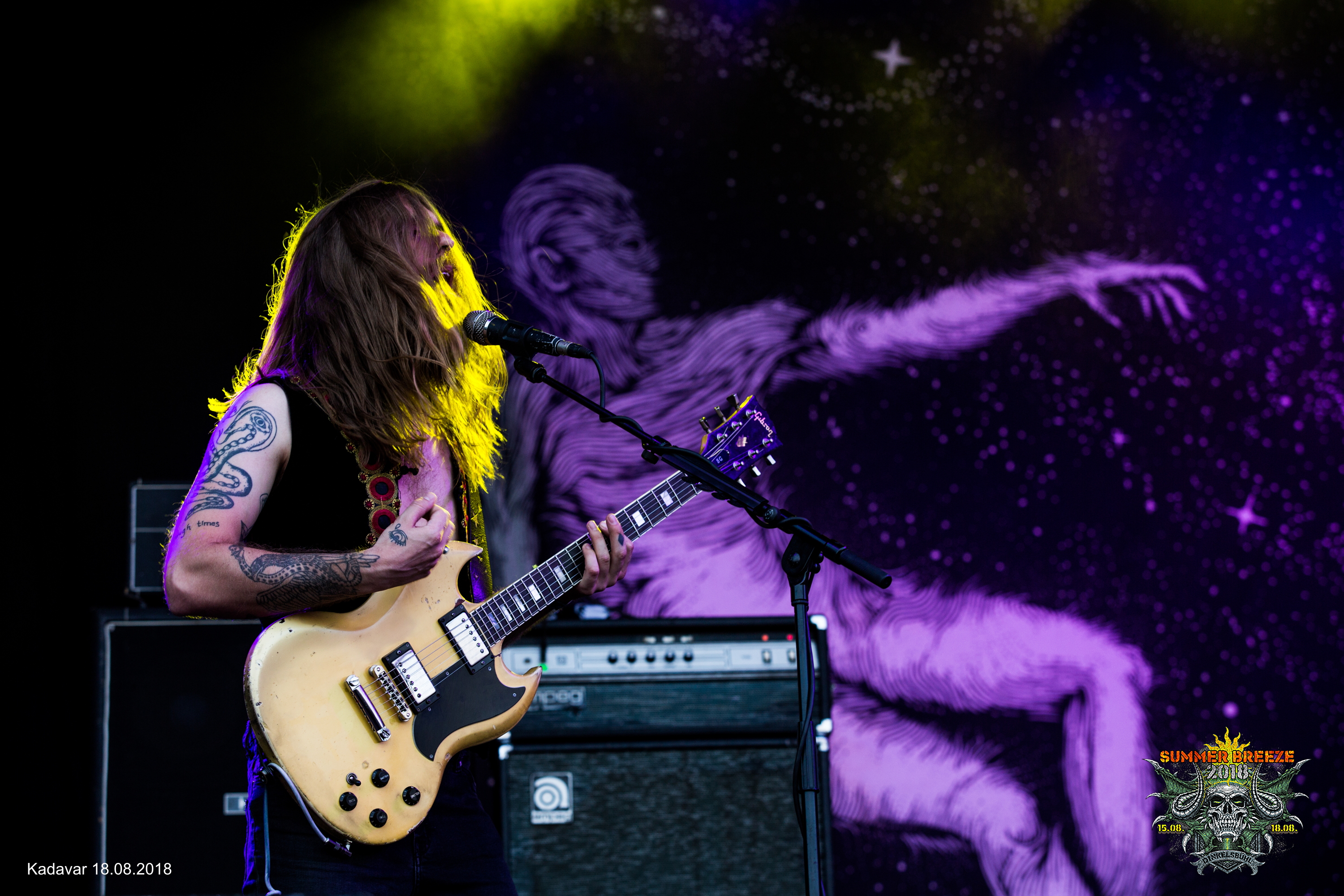 Zugegeben, kleidungstechnisch sahen KADAVAR zwar eher nach Woodstock als nach SUMMER BREEZE aus, musikalisch konnte das Trio allerdings mit seinem packend-explosiven Mix aus Hard, Stoner und Psychedelic Rock überzeugen. Mit ihrem spacigen Opener „Creature Of The Demon“ starteten die Berliner ihr Feuerwerk aus dicken Riffs, groovigen Rhythmen und einer ordentlichen Portion Seventies-Nostalgie. Gekonnt spielten sich die Hauptstädter durch ihre vier Studioalben und brachten die Menge mit Hits wie „Doomsday Machine“, „Black Sun“ und „Forgotten Past“ zum Toben. Direkt vor der T-Stage stieg währenddessen eine kleine Staubwolke auf, immerhin lud der launige Rock-Sound eindeutig zum Tanzen ein. Zum bandeigenen Klassiker „All Our Thoughts“ tat sich schließlich sogar der ein oder andere Mosh Pit auf. Die drei Musiker konnten mit ihrer irren Bühnenpräsenz wohl tatsächlich jeden in ihren Bann ziehen und beendeten ihr beeindruckend starkes Set mit den beiden Krachern „Die Baby Die“ und „Come Back Life“. Man kann von KADAVAR halten, was man will, aber an diesem frühen Abend bewiesen sie einmal mehr, dass sie eine immense Bereicherung für die deutsche Rockszene und eine unglaublich tighte Liveband sind!