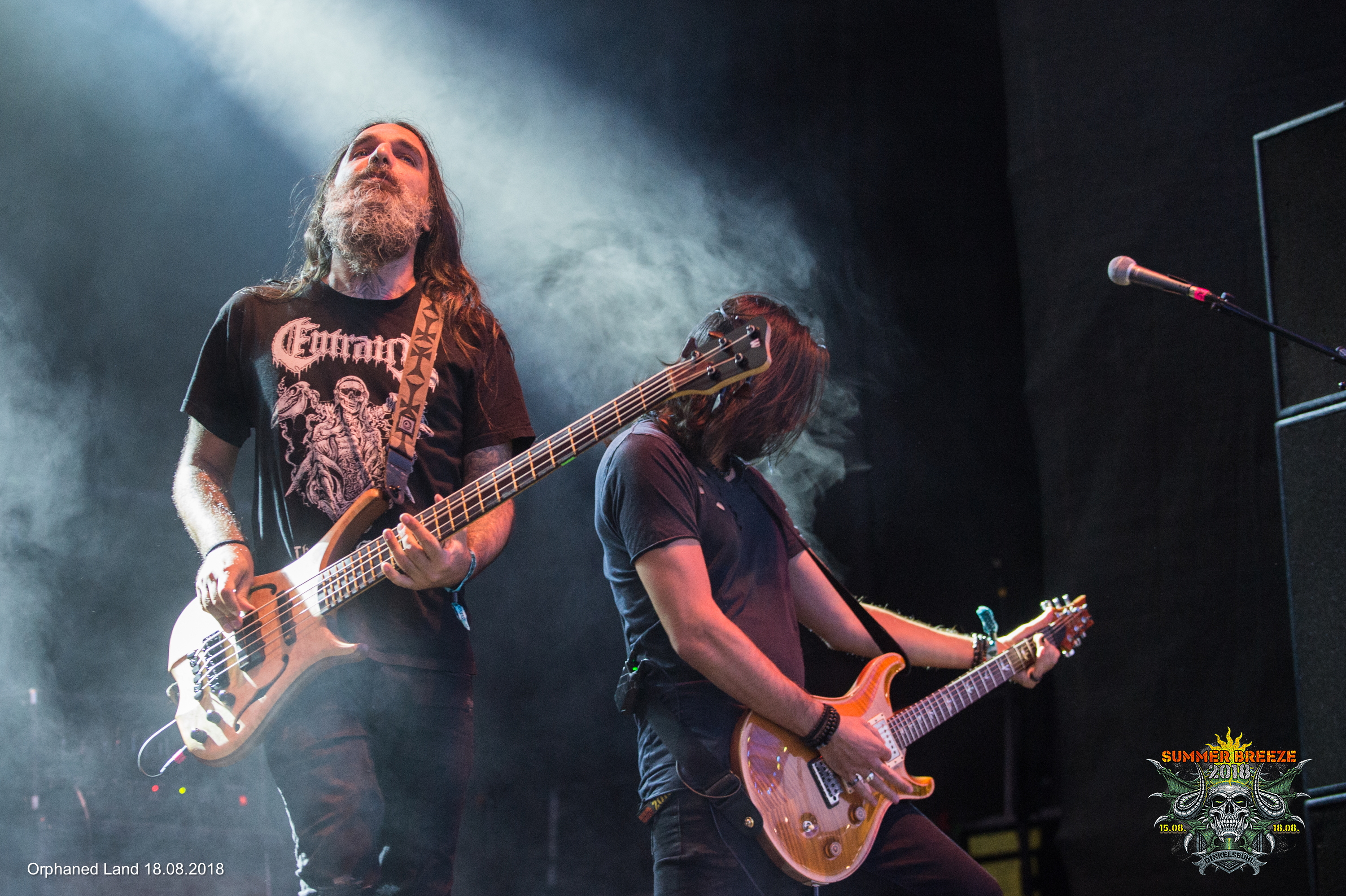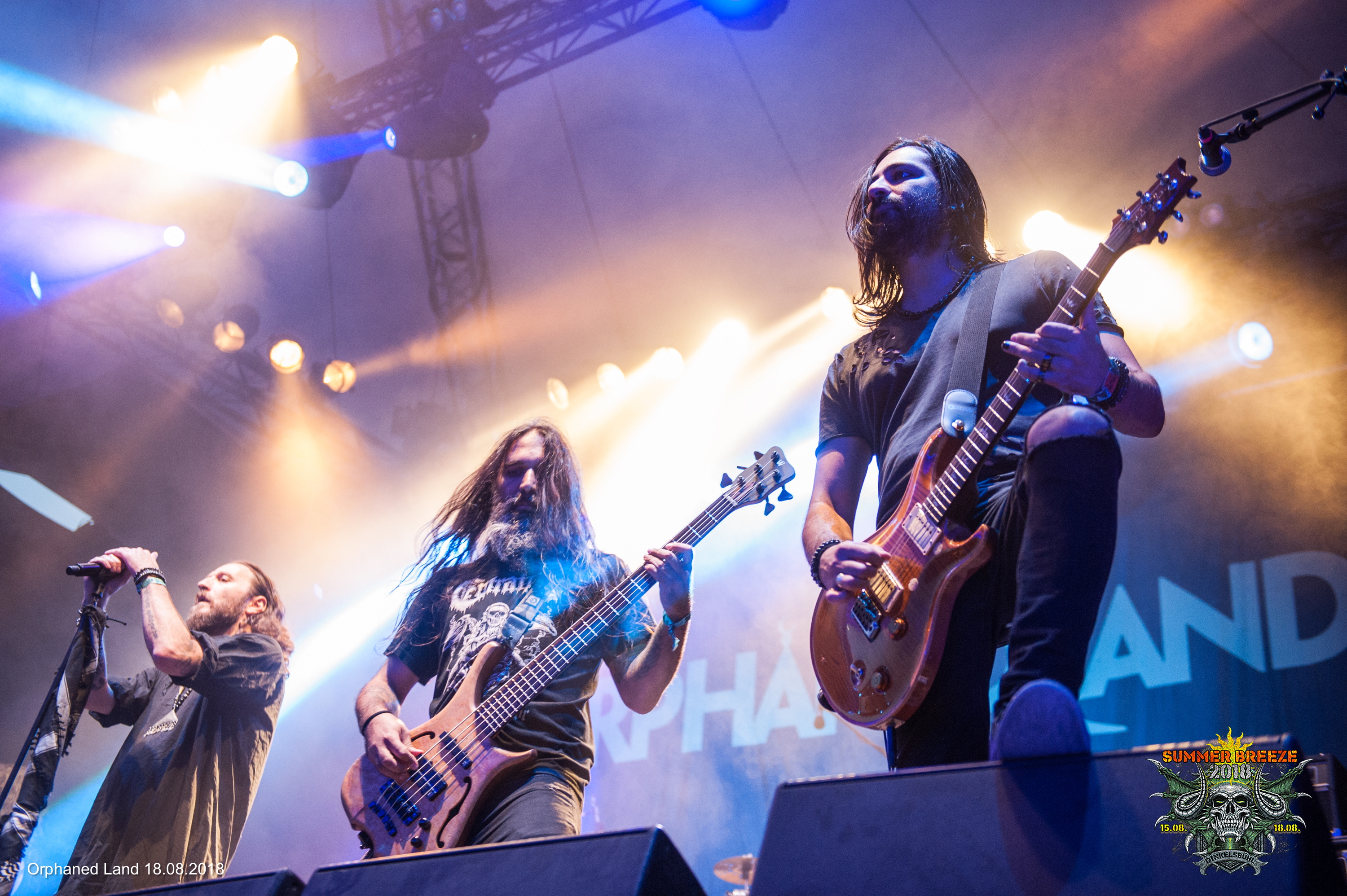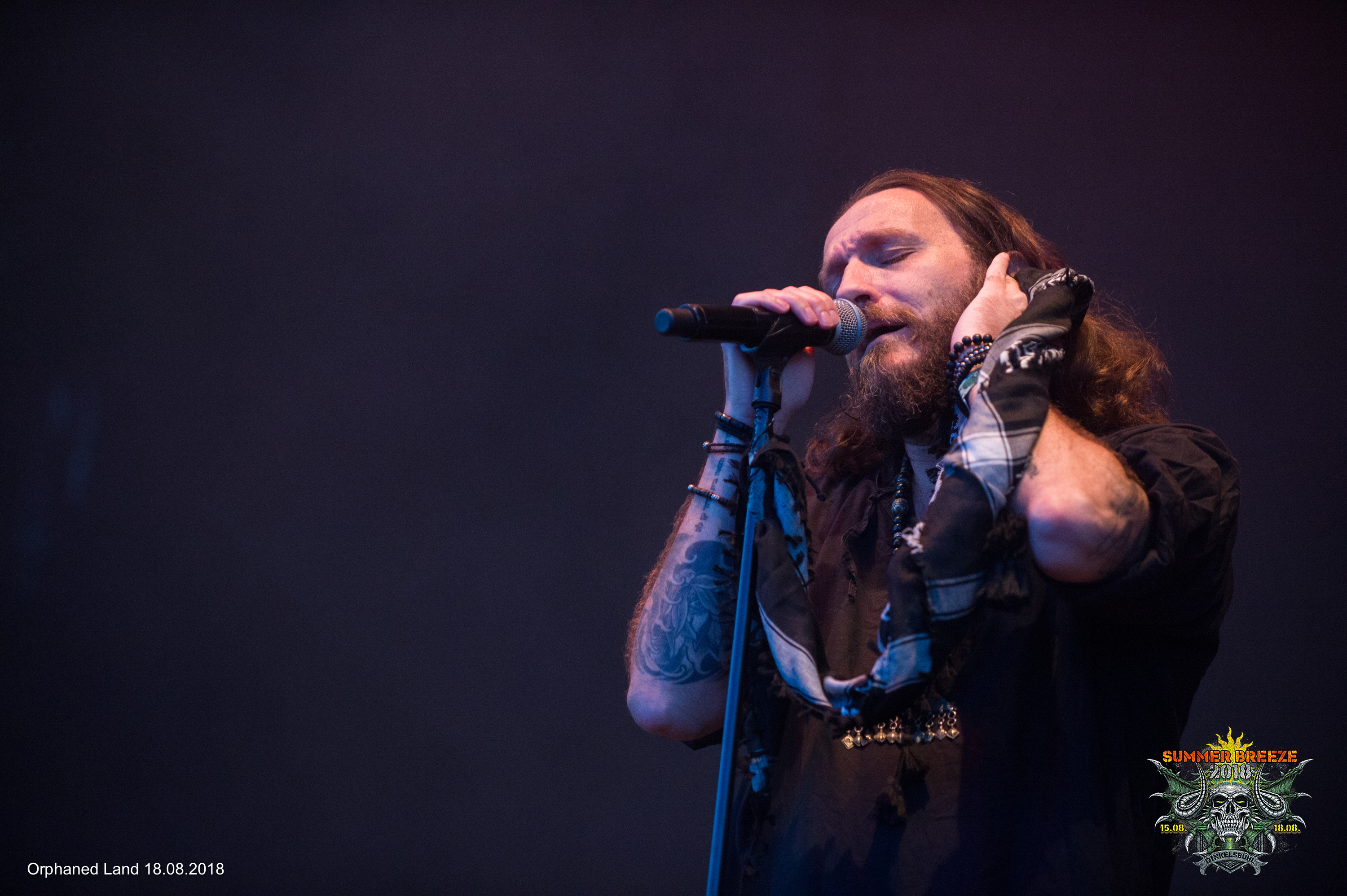 ORPHANED LAND legten mit „The Cave“, dem Opener ihres aktuellen Albums „Unsung Prophets & Dead Messiahs“, recht zackig los. Die Israelis haben sich längst zu einer absoluten Live-Macht entwickelt, die mühelos auch auf einer der größeren Bühnen hätte bestehen können. Folgerichtig fand sich eine gewaltige Zuschauermenge vor der Camel Stage ein, die sich von Frontmann Kobi Farhi ohne nennenswerten Widerstand zu eifrigem Mitklatschen und lauten „Nanana“-Chören bewegen ließ. Der Mann sah nicht nur aus wie Jesus (was noch dadurch unterstrichen wurde, dass er konsequent auf das Zeigen der „Pommesgabel“ verzichtete und lieber die geöffneten Handflächen oder die geballte Faust in die Höhe reckte), sondern verfügte zudem über ein gewaltiges Charisma. Man musste ihn und seine Band einfach lieben, die mit hymnenhaften Ohrwürmern wie „All Is One“, „Sapari“ oder „Norra El Norra“ in den vergangenen fünfzehn Jahren vermutlich mehr dafür getan hatte, Menschen aus verschiedenen Kulturen und mit unterschiedlichen Religionen im Nahen Osten zusammen zu bringen, als alle Politiker dieser Welt zusammen.