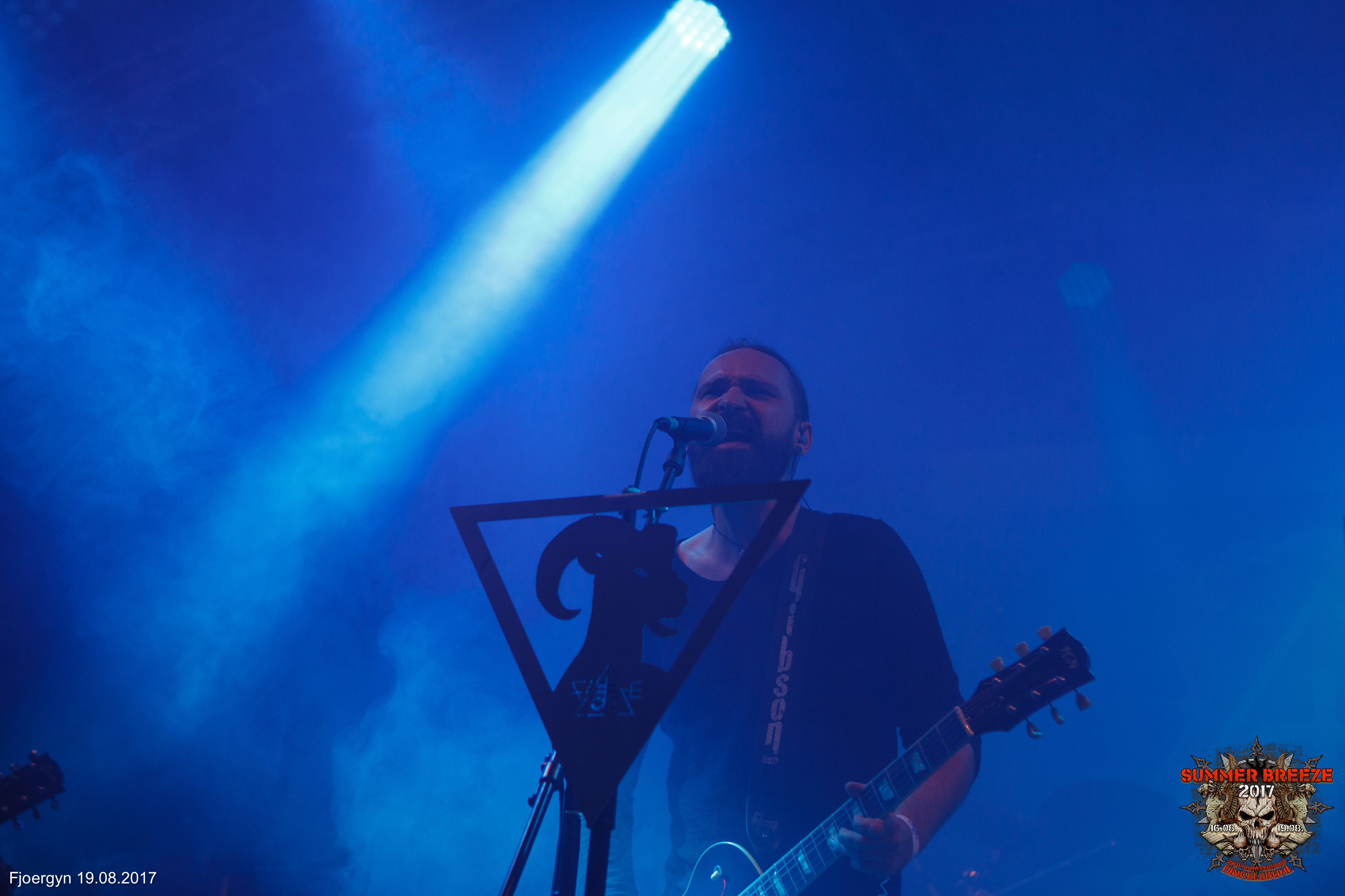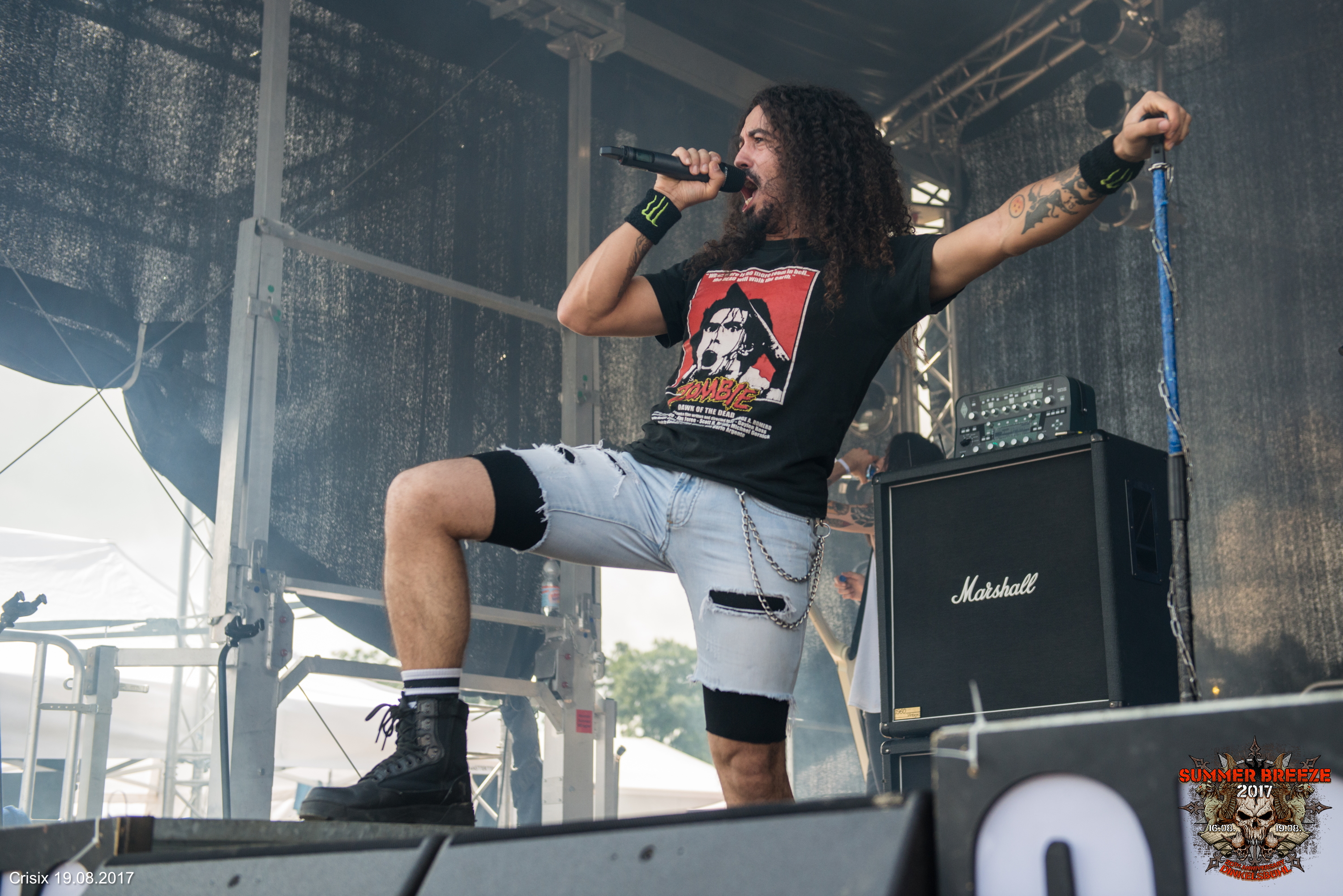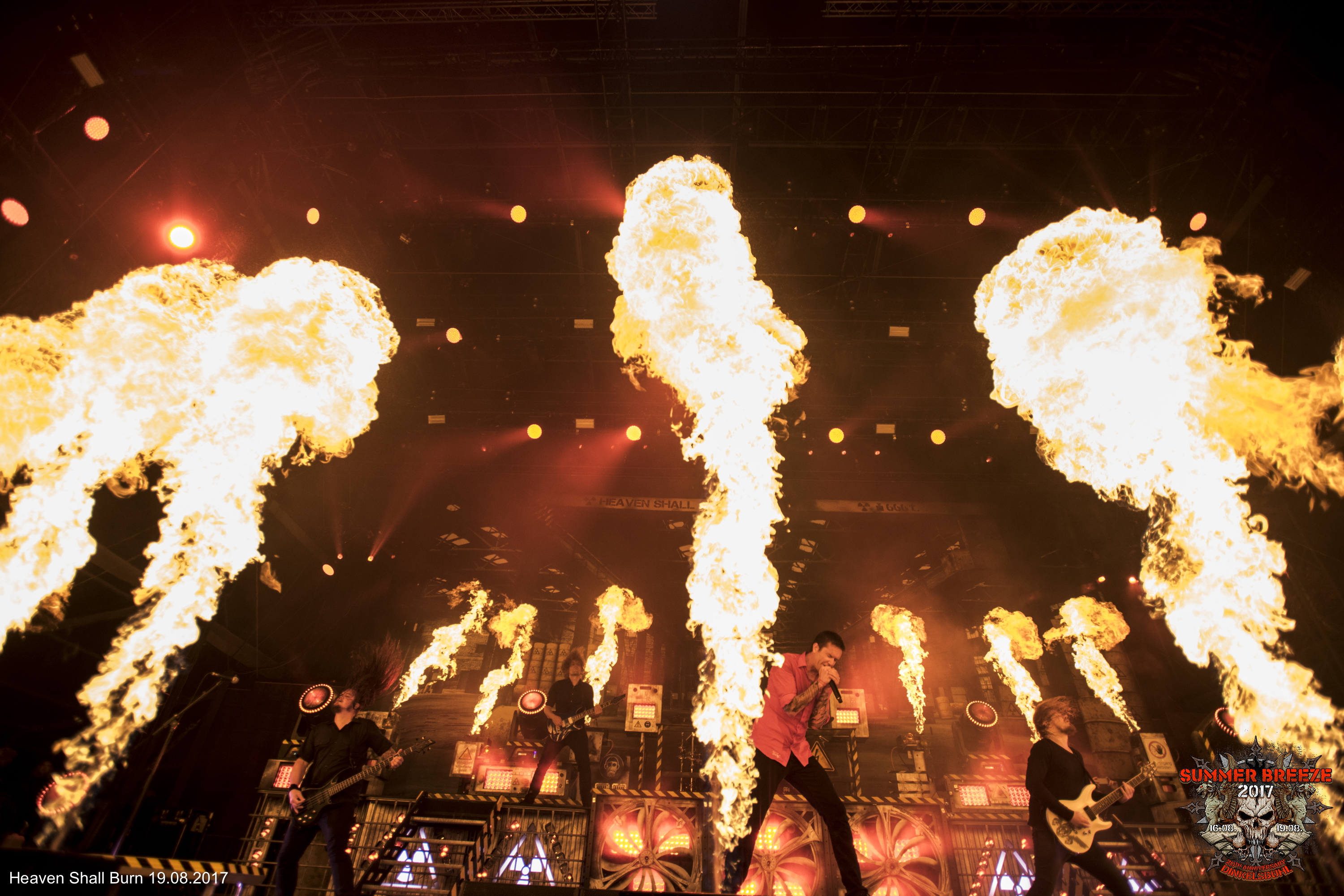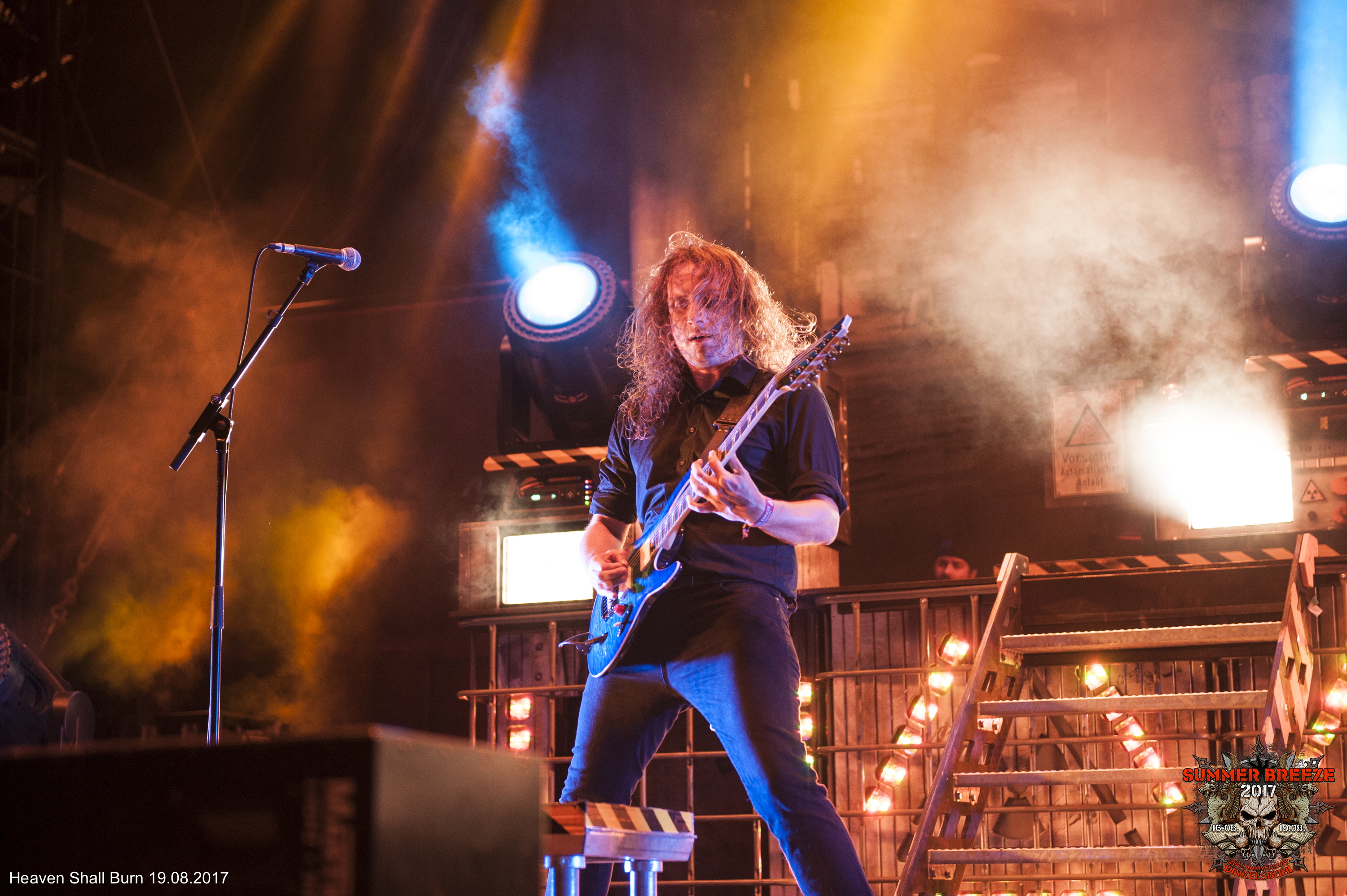 Die Geschichte des SUMMER BREEZE und die von HEAVEN SHALL BURN sind eng verwoben. Die Thüringer Wiederholungstäter mit der Abrissgarantie war schließlich nicht zum ersten Mal dabei. So war es nur konsequent, dass die Band sich auch zum 20-jährigen Festivaljubiläum die Ehre gab und am letzten Festivalabend den Boden für den Headliner KORN bereitete. HEAVEN SHALL BURN eröffneten ihr Set mit der Groove-Walze „The Loss Of Fury“ vom aktuellen Album „Wanderer“ und hatten das Publikum direkt auf ihrer Seite. Trotz deutlichem Augenmerk auf den Songs der letzten Scheibe, mangelte es dem Set auch keineswegs an Klassikern. „Voice Of the Voiceless“, „Forlorn Skies“ und „Counterweight“ wurden frenetisch gefeiert – wobei der Bühnenvorplatz überhaupt von Beginn an einem Schlachtfeld glich. Bekannt für legendäre Circle Pits und Walls Of Death schienen HEAVEN SHALL BURN sich an diesem Abend selbst noch toppen zu wollen. Mehrfach betonte Sänger Marcus Bischoff die Sonderstellung, die das SUMMER BREEZE für die Band einnimmt, und erinnerte an denkwürdige Auftritte der Vergangenheit. Ziemlich früh zeigte sich, dass das Jahr 2017 sich problemlos in die Reihe ihrer Live-Großtaten der letzten Jahre einreihen würde. Die Krone für die meisten Crowdsurfer konnten sich HEAVEN SHALL BURN zumindest sehr schnell sichern. Was nicht zuletzt daran lag, dass Bischoff den starken Jungs im Graben partout keine Langeweile zumuten wollte. Spätestens zu „Endzeit“ war eben jene auch für so manchen Pit-Spartaner gekommen. Als letzten Song stimmten HEAVEN SHALL BURN schließlich ihre Cover-Version von „Black Tears“ von Edge Of Sanity an und holten dazu den Urheber des Songs, Dan Swanö, persönlich auf die Bretter. Man merkte der Band die Begeisterung an – plötzlich standen da einfach nur noch Metal-Fans auf der Bühne. Ein weiterer sympathischer Abriss voller Hingabe ging vorbei. Und für KORN war der schlammige Boden mehr als festgestampft.