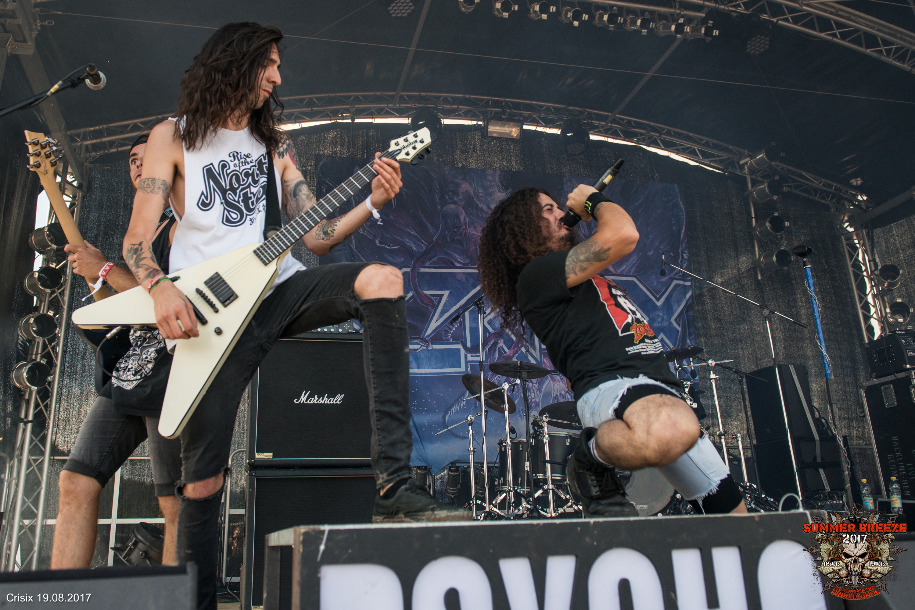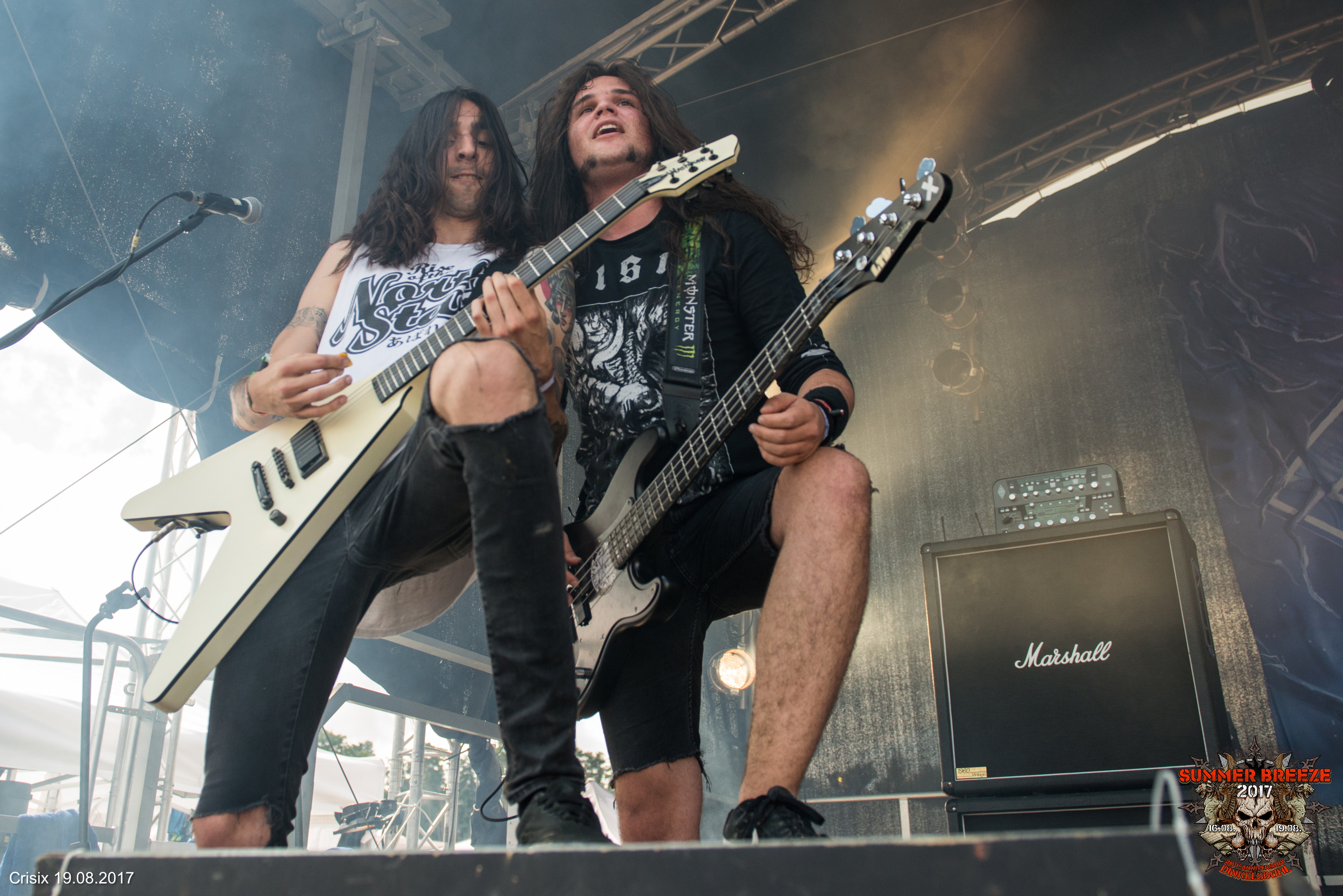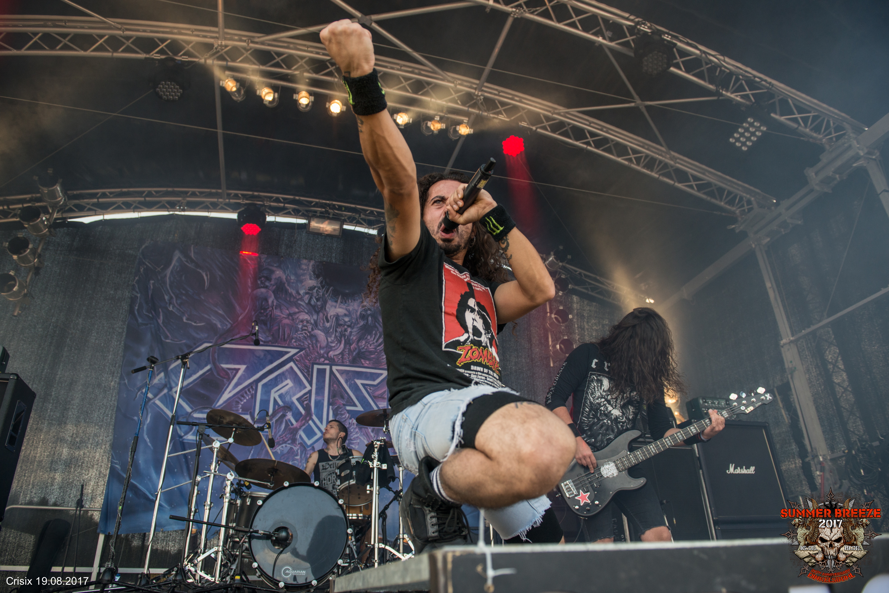 Für eine kompromisslose Thrashwalze sorgten CRISIX auf der Camel Stage. Die fünf Spanier ließen sich auch vom leicht matschigen Sound nicht beirren und lieferten eine Show ab, die in Sachen Intensität die Auftritte so mancher Genre-Größe locker in die Tasche steckte. Und da ließ sich auch die große Anzahl der erschienenen Fans nicht lumpen. „Okay friends, it’s time to break your fucking neck!“, forderte Sänger Julián Baz. Danach flogen allüberall Haare durch die Luft. In der Mitte des Sets nahm er sich zudem Zeit für eine klare Ansagen gegen den Terrorismus, der vor kurzem Barcelona, die Heimatstadt der Band, heimgesucht hat. Dafür erntete er großen Applaus. Bei „G.M.M. – The Great Metal Motherfucker“ flogen dann auch noch so einige Fäuste durch die Luft. Anschließend forderten CRISIX noch eine Football Of Death, was nichts anderes war als eine Wall Of Death, bei der einige Luftballons in die Mitte geworfen wurden. Dass Baz und seine Mannen nicht nur fordern, sondern auch liefern, bewiesen sie beim abschließenden „Ultra Thrash“. Zu Beginn des Songs verließ die Band die Bühne und spielte ihn im Circle Pit. So viel Fannähe wurde mit lauten „Zugabe“-Forderungen belohnt.
