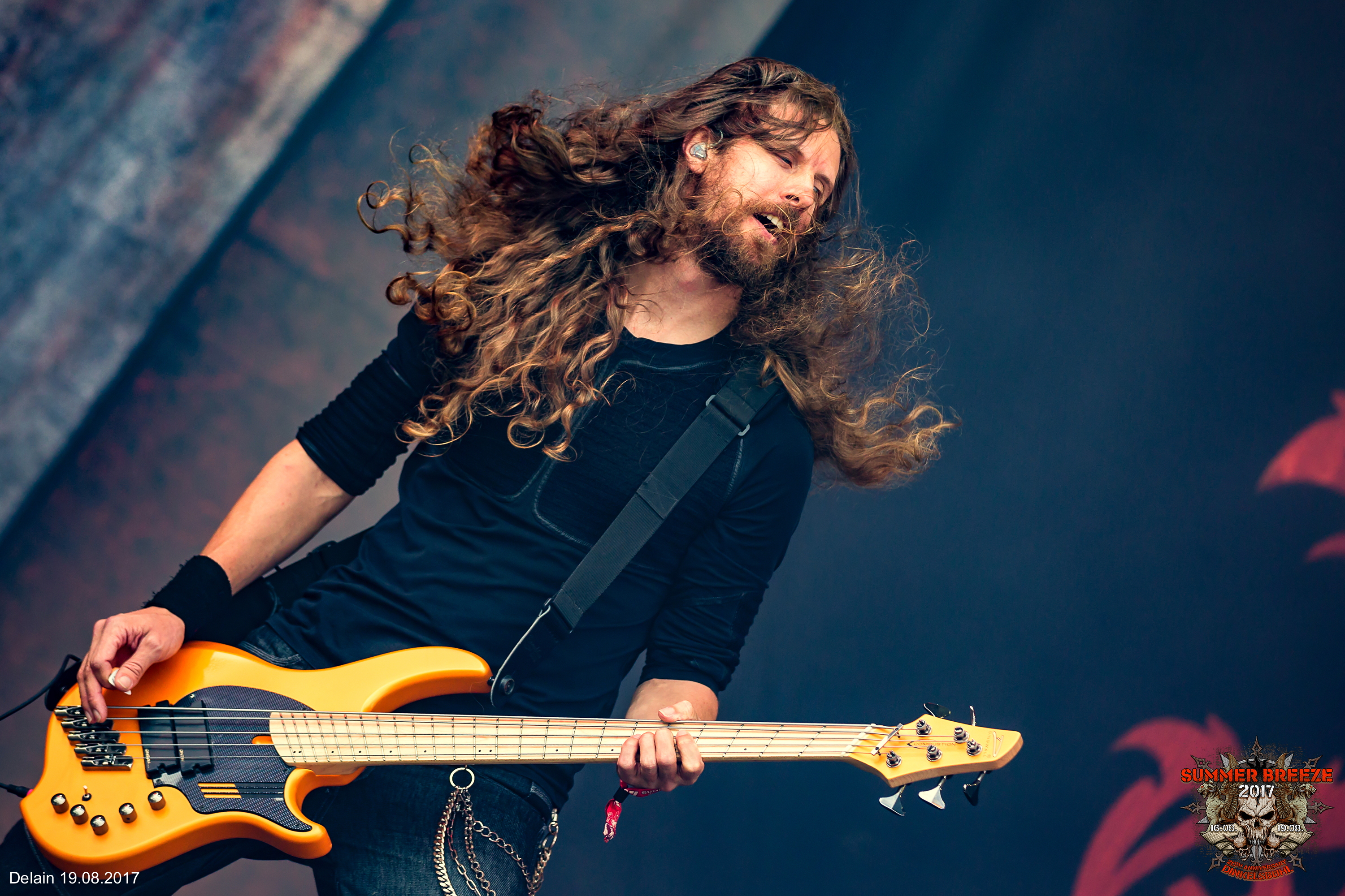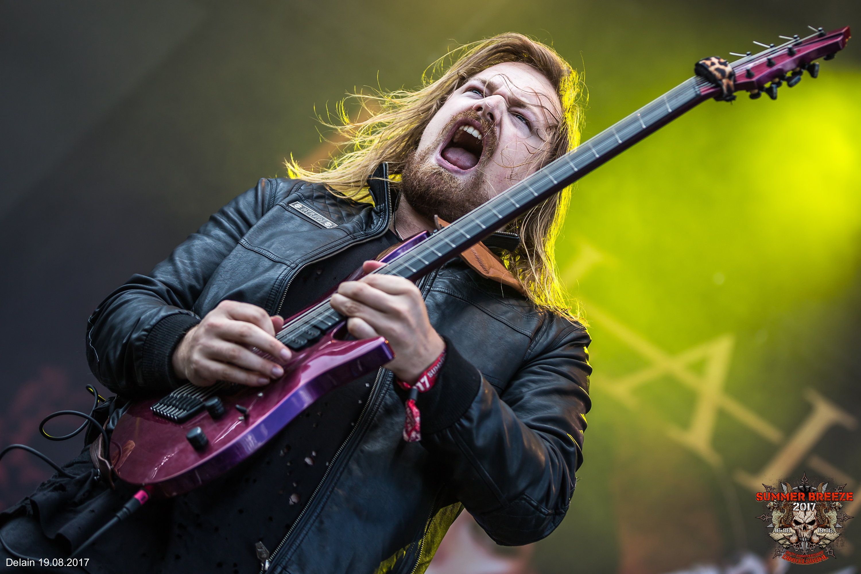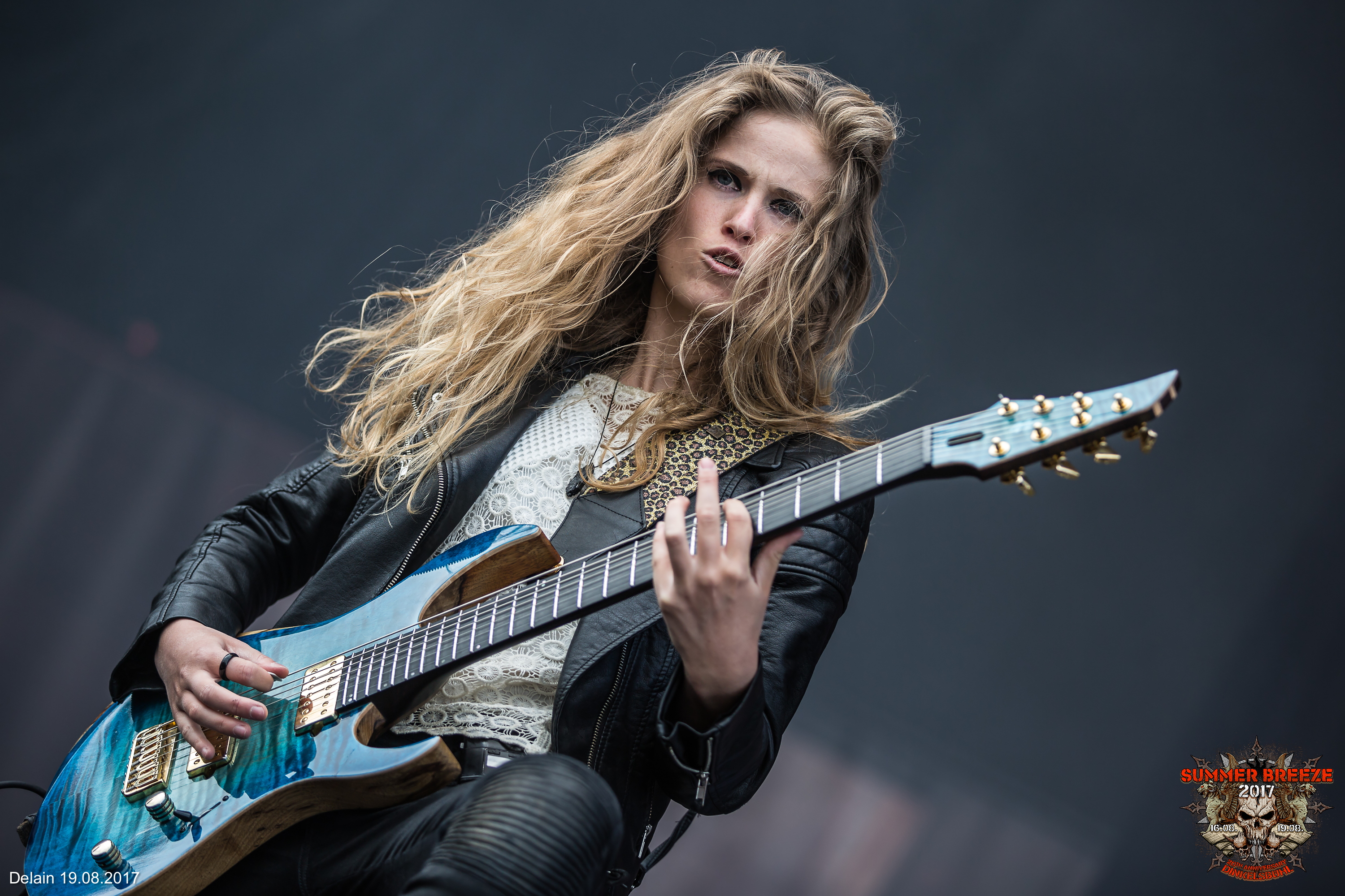 Zeit für das mittägliche Aerobic-Programm! Ihre Animateurin ist heute Charlotte Wessels! Die DELAIN-Frontlady motivierte die Menge praktisch ununterbrochen zum Klatschen, Hüpfen und zu lauten Anfeuerungsrufen. Dass ihre Fans dabei so willig mitspielten, zauberte der in der Mittagssonne zwar mit einer buntgescheckten Fellweste, dafür aber bauchfrei auftretenden Holländerin ihr strahlendstes Lächeln ins Gesicht. Und auch die Bandkollegen verliehen ihrer sichtlichen Freude mit großen Posen Ausdruck, wenngleich die zierliche Gitarristin Merel Bechtold beim Versuch böse Metal-Grimassen zu ziehen, eher niedlich wirkte. Ohne Keyboarder Martijn Westerholt wurden dessen Parts, wie bereits bei DELAINs letztem SUMMER BREEZE-Besuch vor drei Jahren, aus der Konserve eingespielt. Dies tat glücklicherweise weder dem Ohrwurm-Potential von Zuckermelodien wie in „Pristine“ noch den groovigen Electro-Beats von „Don’t Let Go“ einen Abbruch, denn die spielfreudige Truppe auf der Bühne ließ einen leicht darüber hinwegsehen, in welch feste Bahnen die Stücke dadurch gegossen wurden. Zum Abschluss gab es natürlich einmal mehr die Gänsehaut-Hymne „We Are The Others“ zu hören, deren wichtige Kernaussage von einem Crowdsurfer im Penis-Kostüm geradezu perfekt unterstrichen wurde. Kein Wunder, dass insbesondere Sängerin Charlotte und Gitarristin Merel bei diesem skurrilen Anblick für einen winzigen Moment zu stutzen und sich mühsam ein Lachen zu verkneifen schienen.
