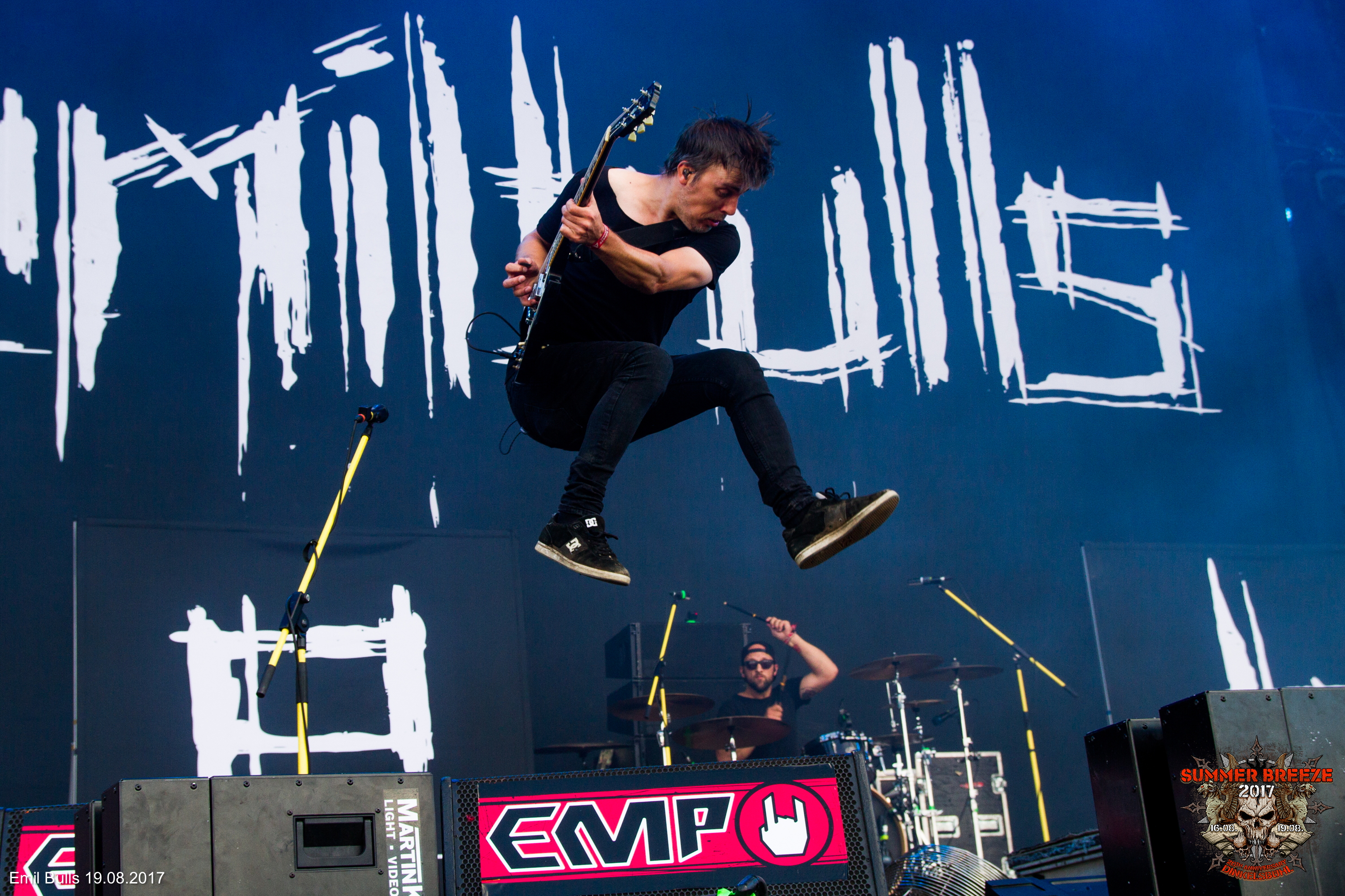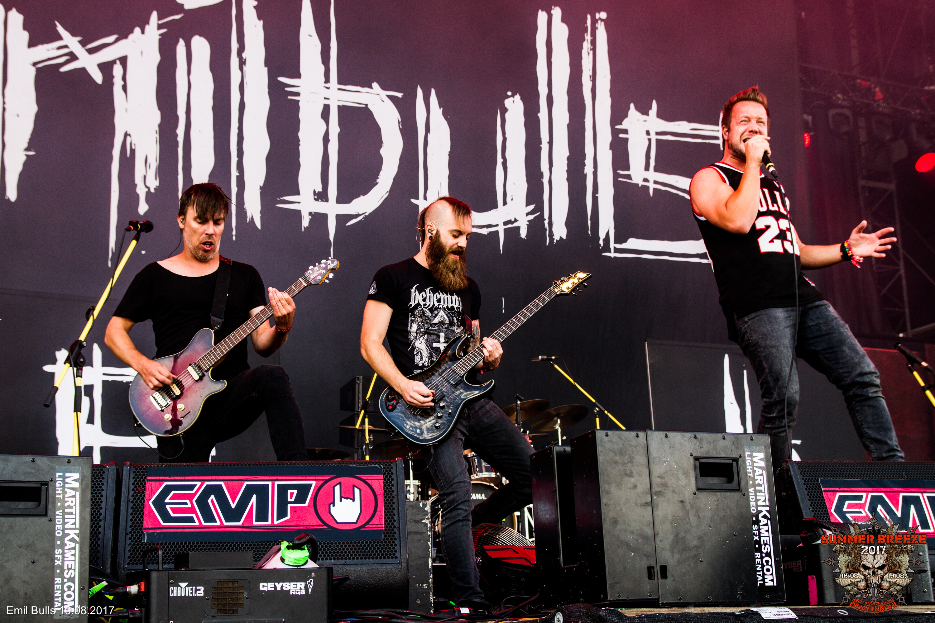 Die Münchner sind eine der Bands die das Festival seit Jahren begleiten und auch mit ihm gewachsen sind. Im Gegensatz zu so manch anderer Band sind sie mit den Jahren eben nicht poppiger geworden, sondern haben nach und nach sogar das ein oder andere Schippchen Metall zusätzlich in den Bandmotor geschaufelt. Gestartet wurde mit dem gewohnten Manowar-Intro und dem heftigen „Hearteater“. Und obwohl Mono Inc. wirklich schon sehr ordentlich vorgelegt hatten, schafften es die BULLS tatsächlich das innerhalb kürzester Zeit zu toppen. Die Grabensecurity sollte an diesem Tag bei kaum einem anderen Act nochmal derartig viel zu tun haben. Teilweise waren mehr als zehn Crowdsurfer gleichzeitig (!!!) über den Köpfen der Meute. Es wurde aus tausenden Kehlen mitgeschmettert und selbst Fortgeschrittenen-Spielchen wie „alle setzen sich hin und springen erst auf Ansage wieder gemeinsam auf“ klappten wie am Schnürchen. Die Mischung aus tightem Riffing und den charakteristischen, poppig-melodischen Refrains bringt sonst keine Band derart auf den Punkt. Die zigfach in die Meute geworfenen Wasserbälle kursierten das ganze Set über und zum krönenden Abschluss überwand Sänger Christ den Bühnengraben und sang auf der Absperrung stehend im Vollkontakt mit den Fans. Demnächst im Lexikon ihres Vertrauens unter „Leidenschaft meets Spielfreude: EMIL BULLS“, und im Herzen sind sie doch Hippies: „We come in peace, this ain’t no war, this is passion, this is love, oh, this is how we do it, in the age of revolution we’re a unit!“
