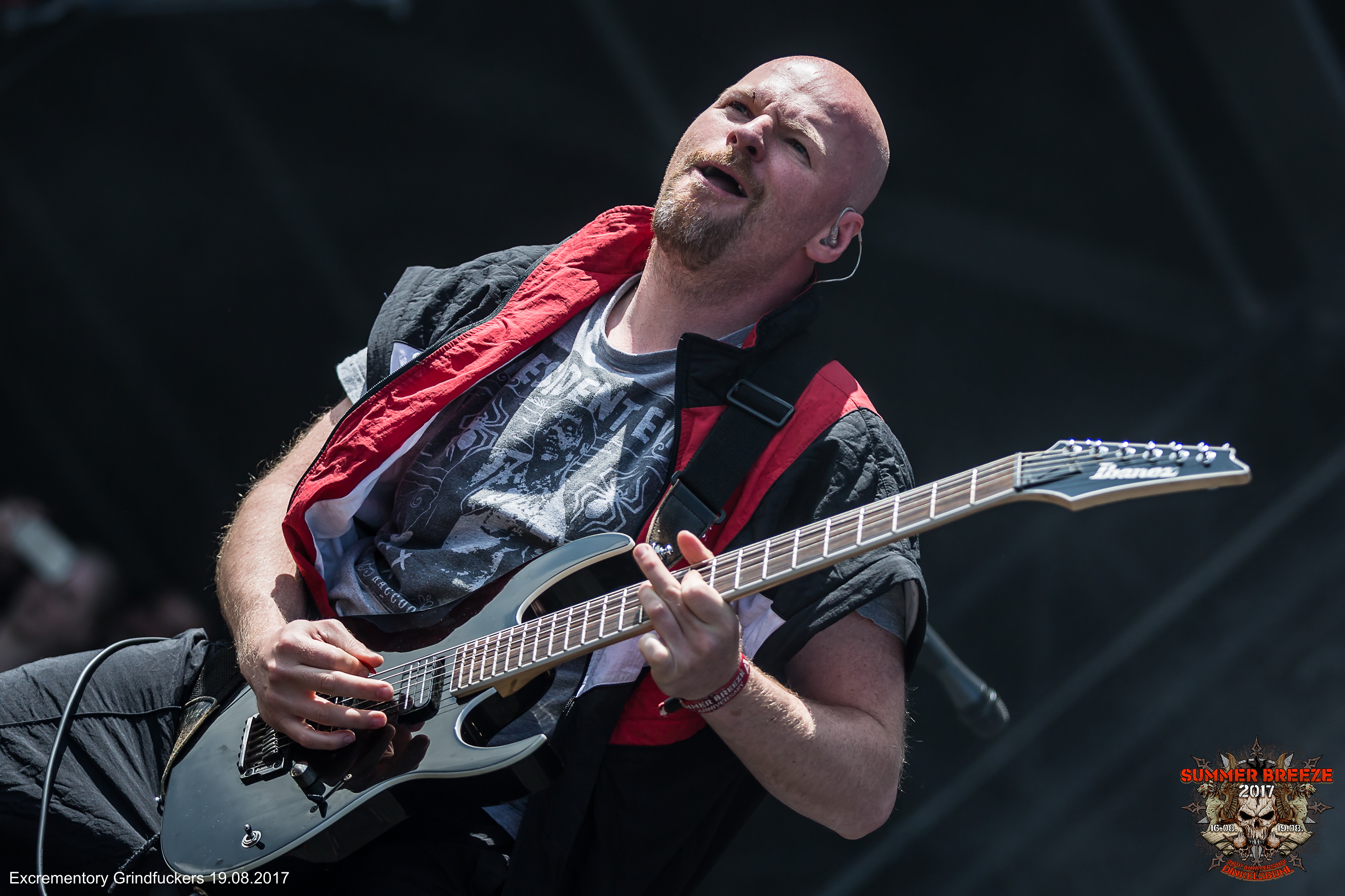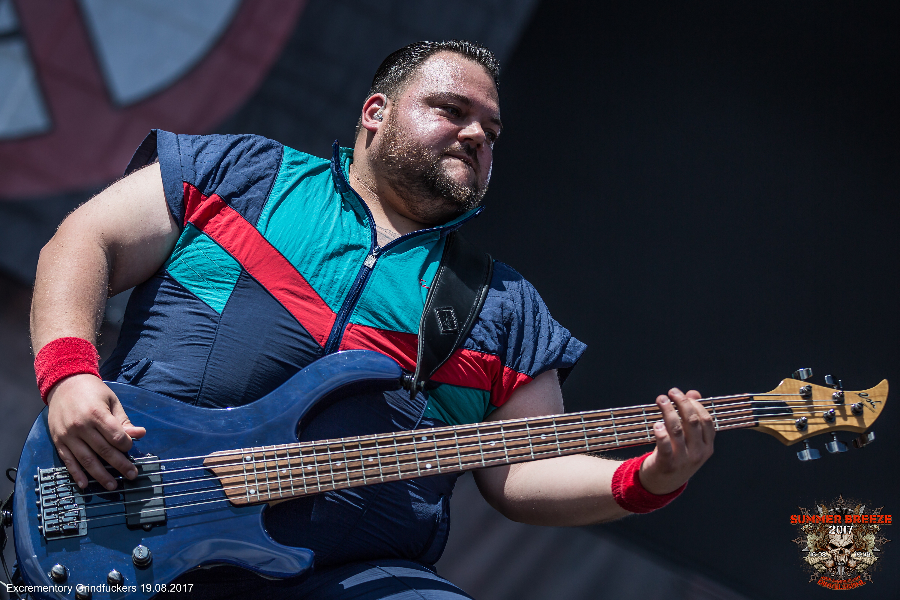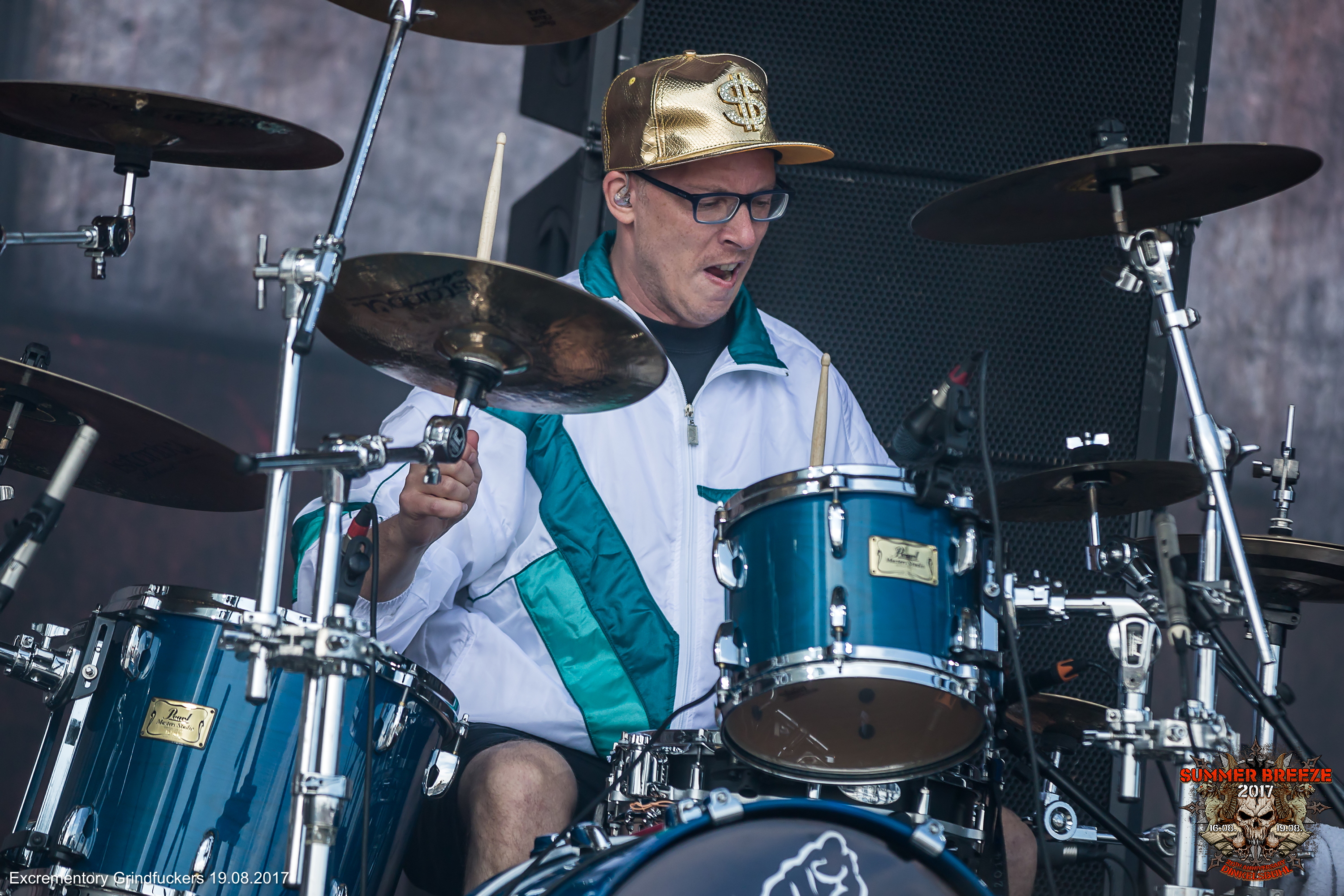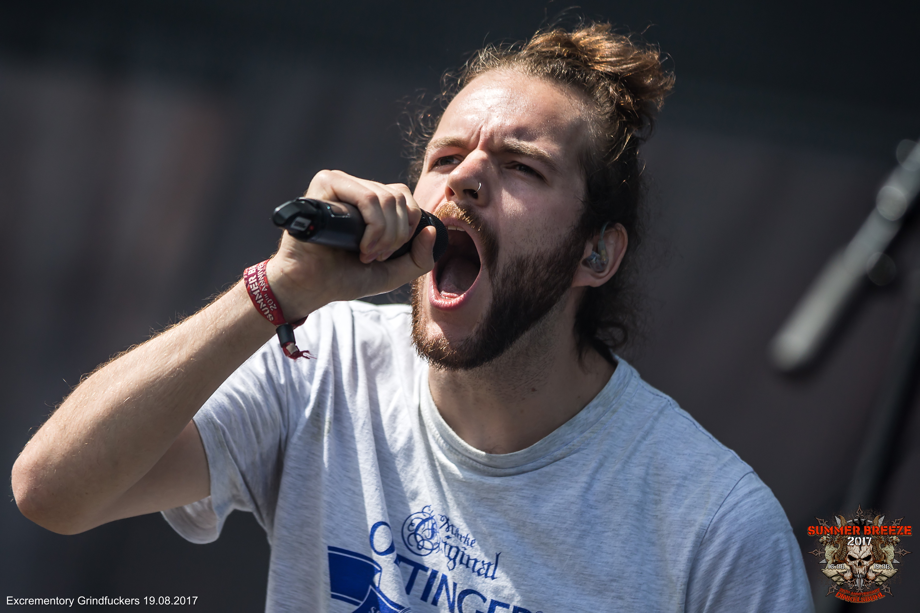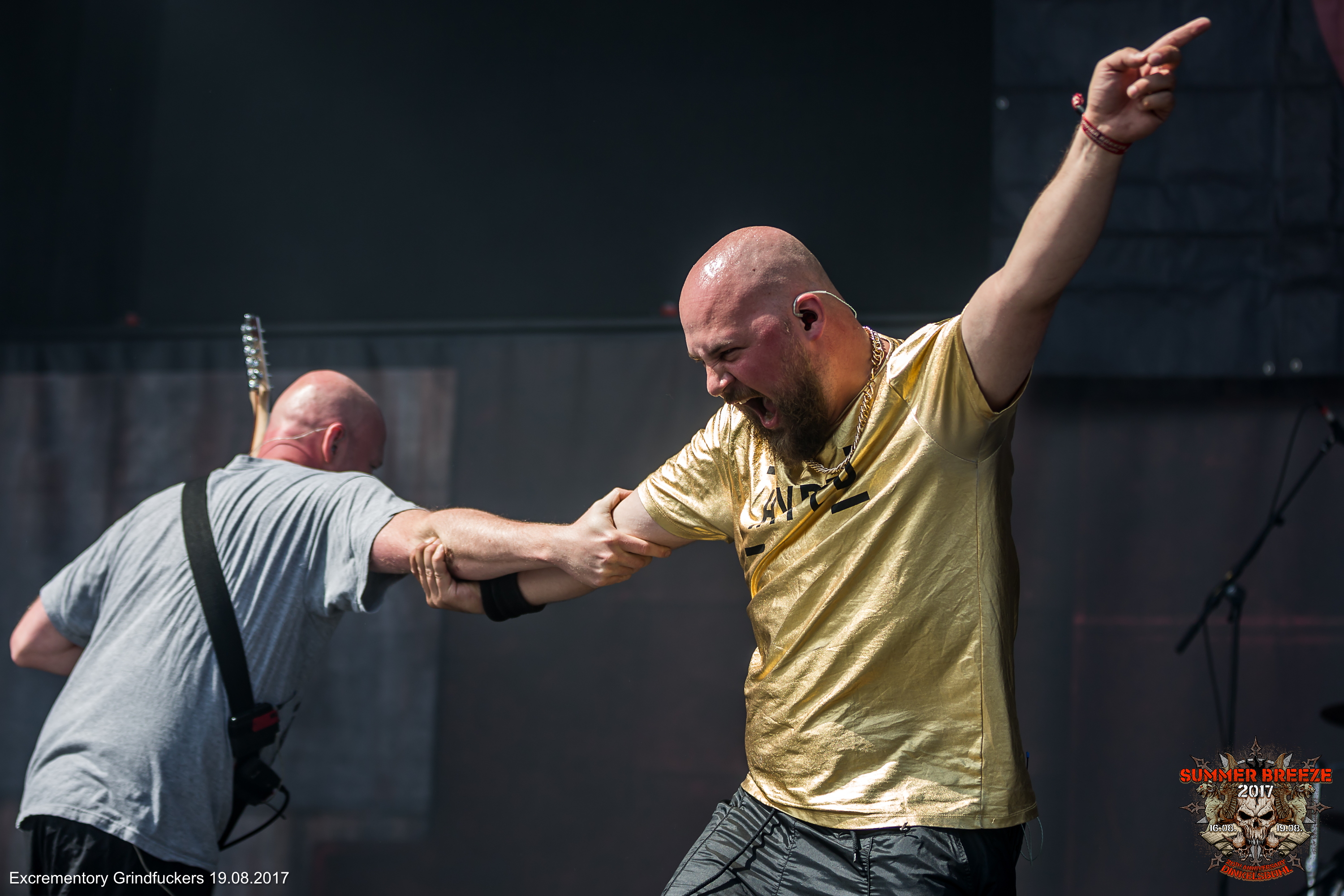 Beim Blick ins Publikum konnte man meinen, dass zur Mittagszeit schon der nächste Headliner auf dem Programm steht. Tatsächlich waren es aber die EXCREMENTORY GRINDFUCKERS, die kaum weniger Zuschauer zogen als KREATOR am Vorabend. Optisch präsentierten sie sich mit Trainingsanzügen und goldfarbenen Turnschuhen als die Könige des schlechten Geschmacks. Das Publikum schloss sich dem gleich an, denn eine Menge Leute erschien in den abstrusesten Verkleidungen. Trotz der frühen Stunde waren die Fans bereit für eine amtliche Party. Vom ersten Song an war mächtig Bewegung in der Menge. Und die Band bedankte sich artig dafür: „Oh ja, das wird ein richtig schöner Tag. Vielen Dank für den geilen Empfang, SUMMER BREEZE!“ Neben den von der Band geforderten Circle Pits, bildete das Publikum auch die ein oder andere spontane Polonaise. Da am Ende noch etwas Zeit blieb, erweiterten die EXCREMENTORY GRINDFUCKERS ihre Setlist spontan noch um „The Final Grinddown“. Die „Zugabe“-Rufe blieben im Anschluss trotzdem nicht aus.