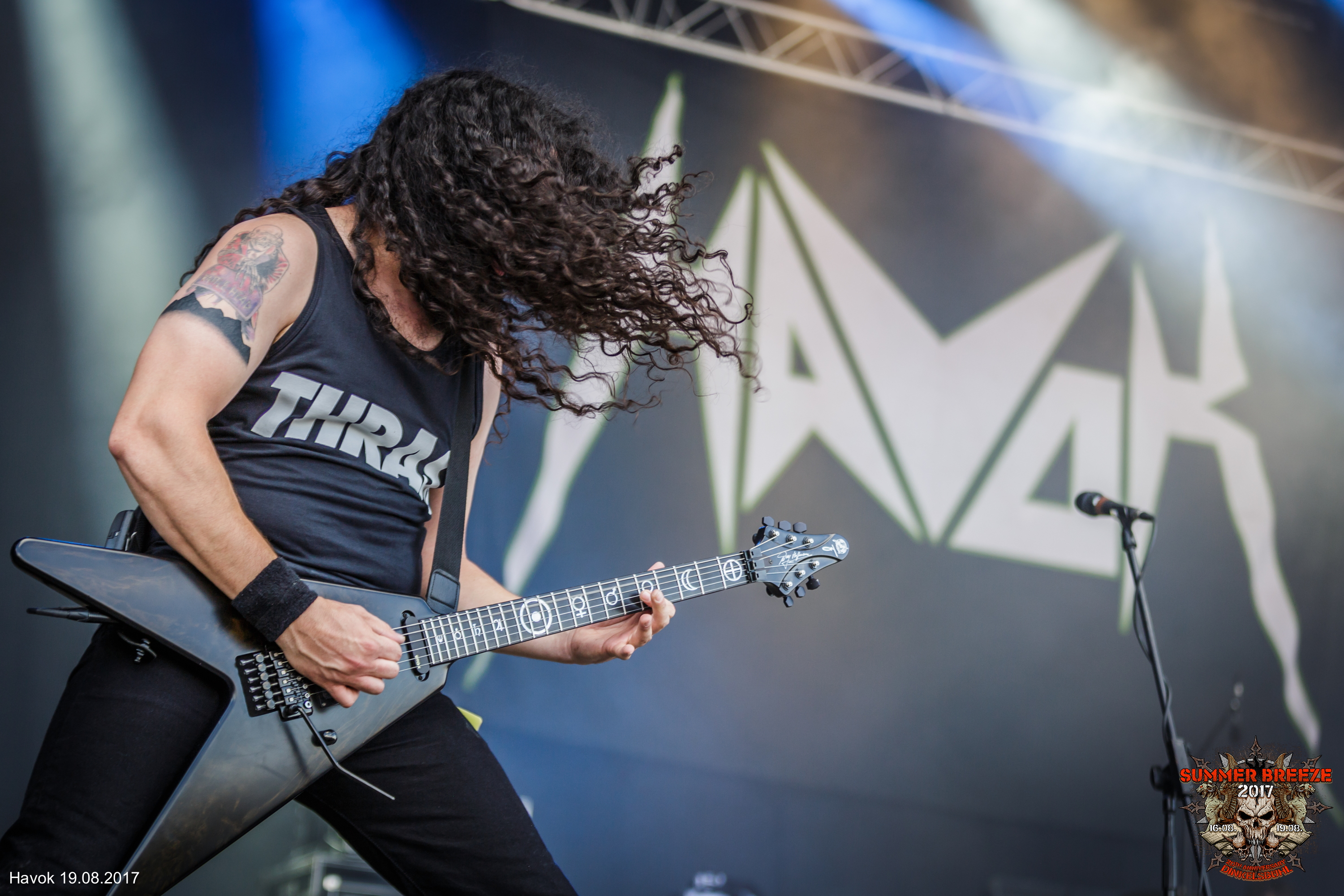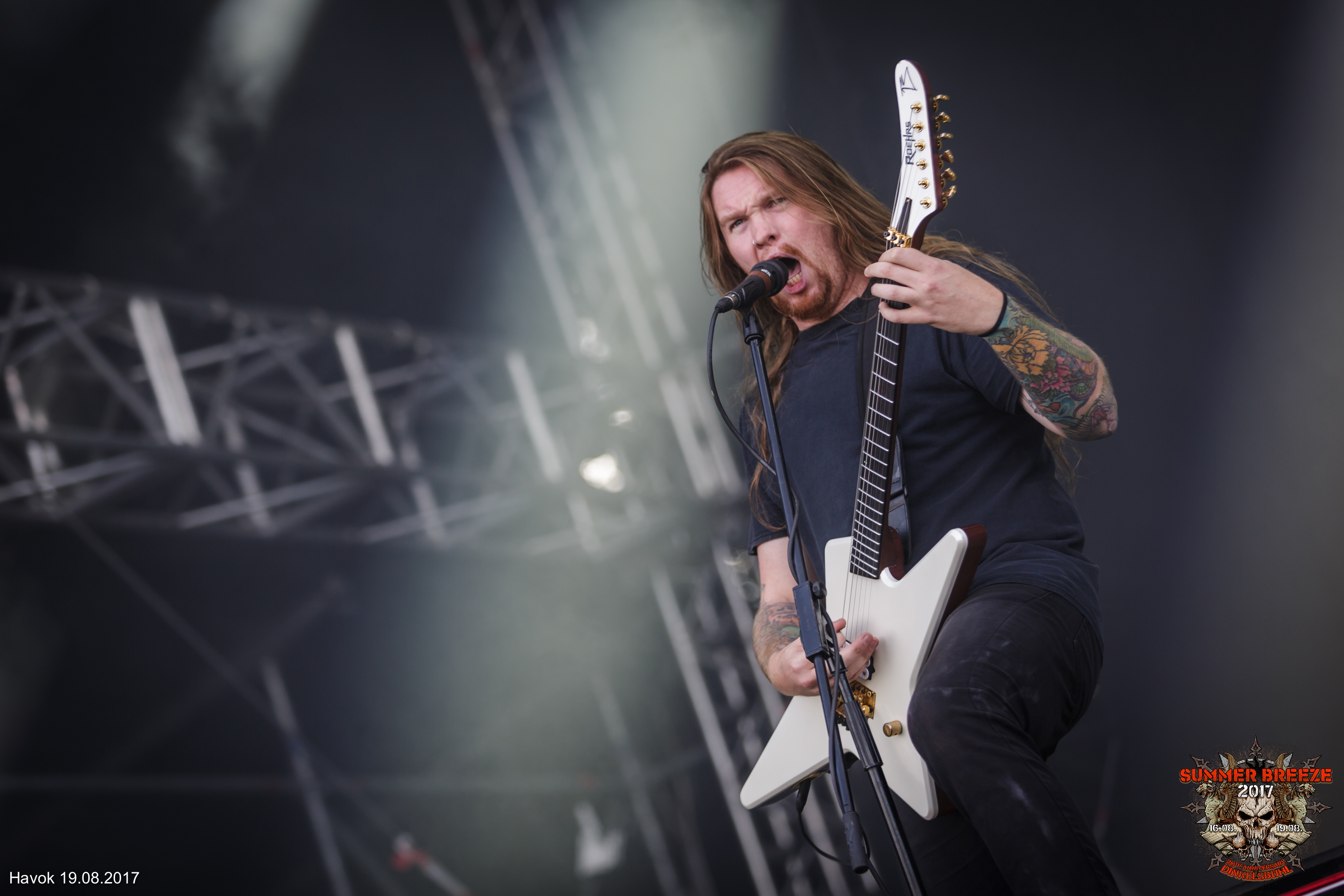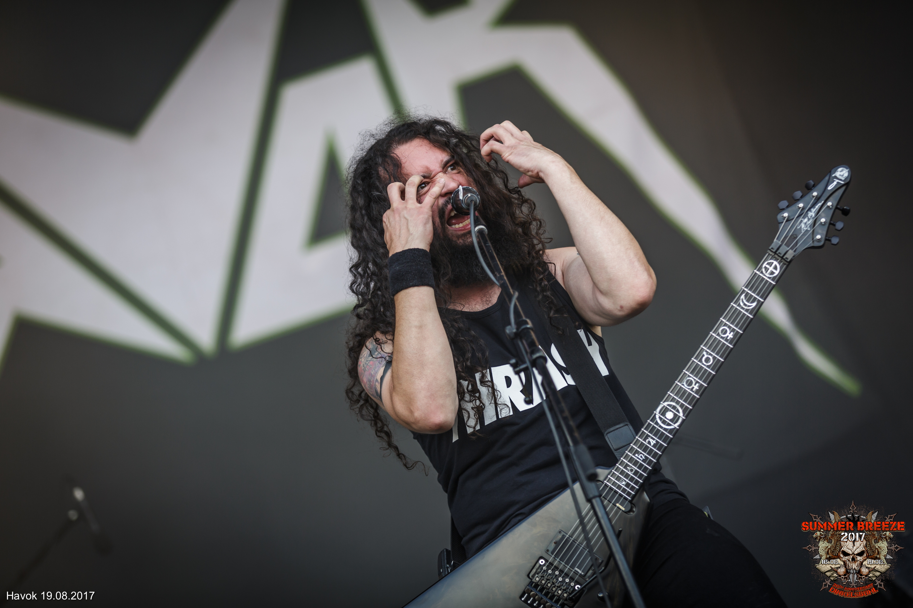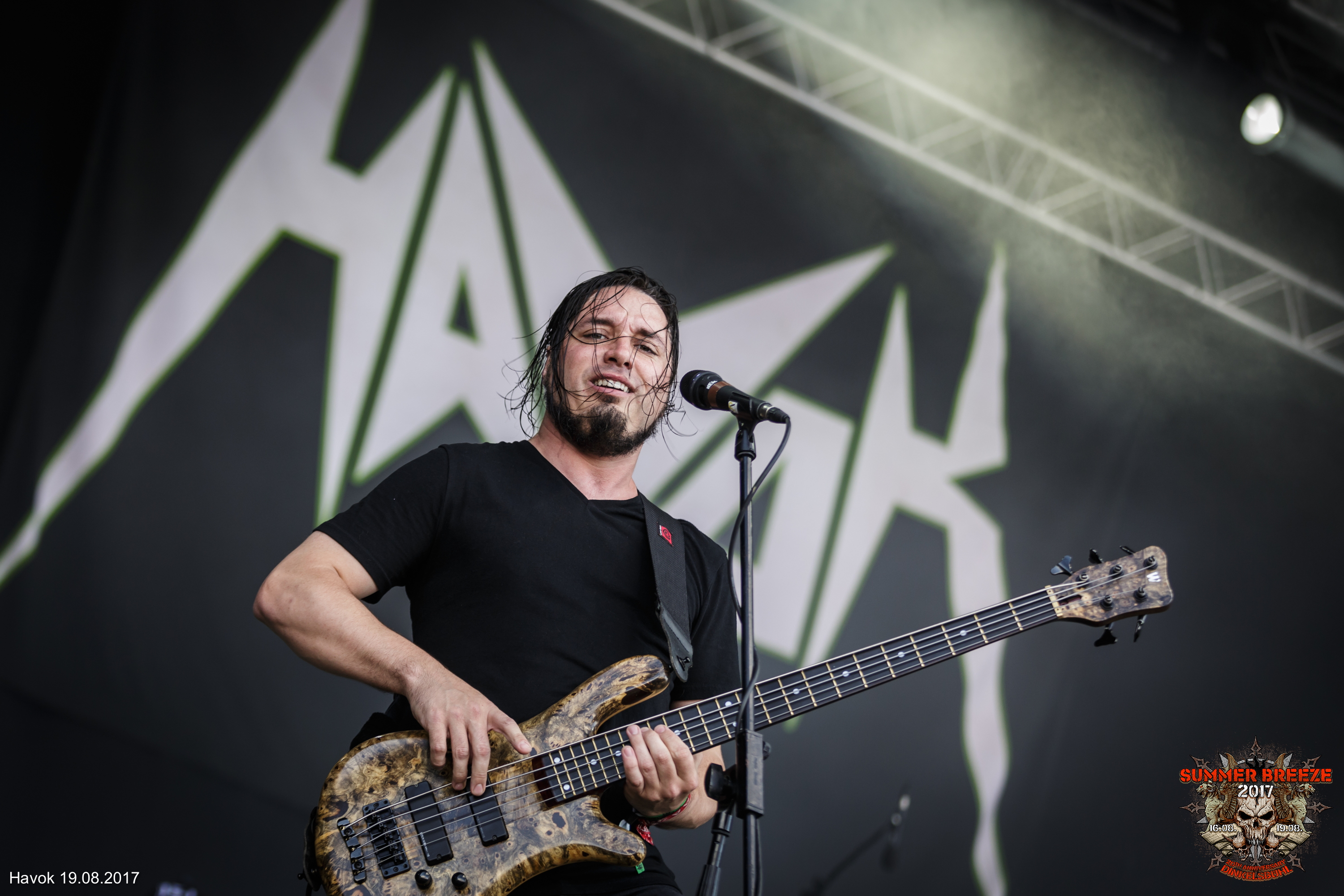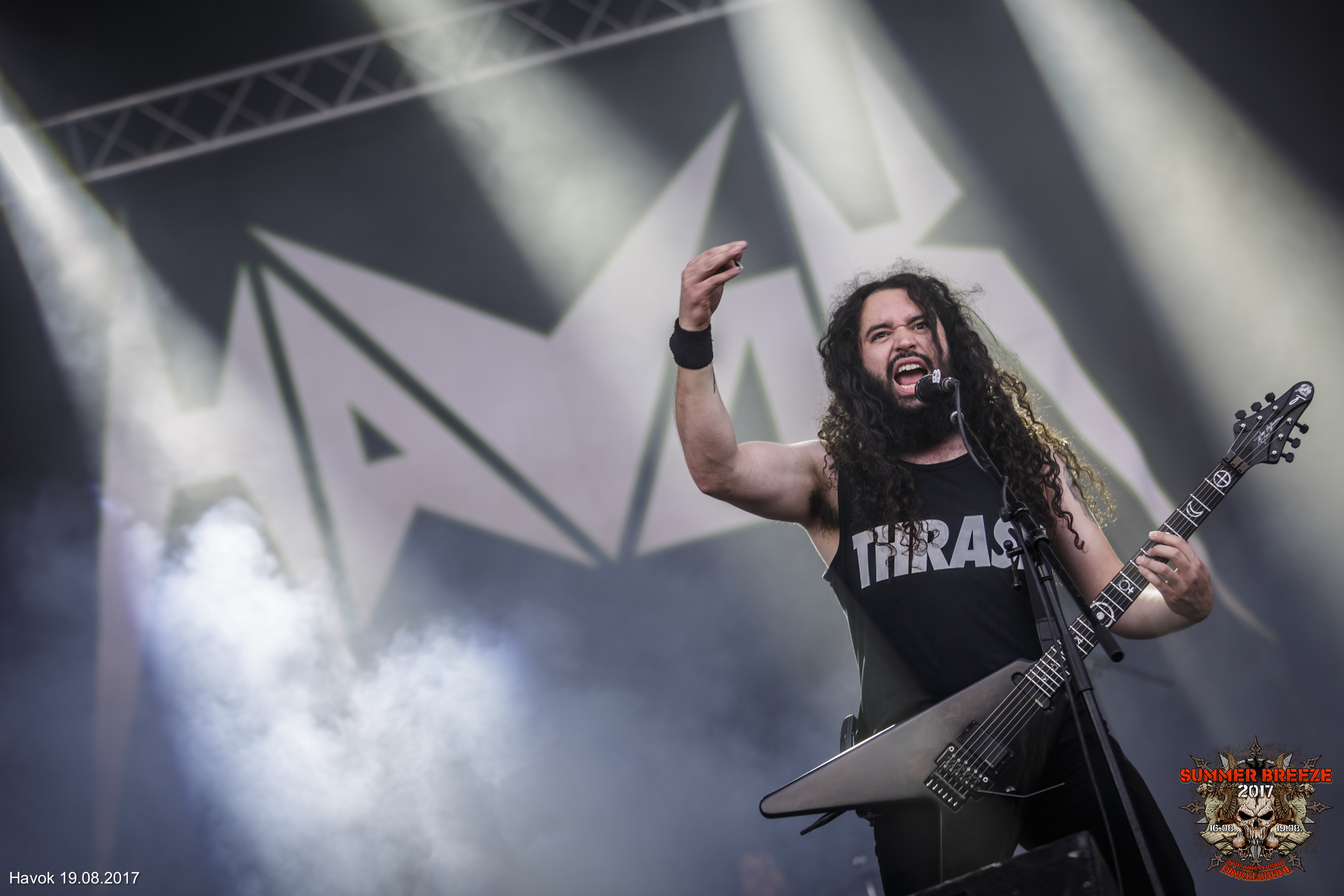 Schon während des von den Bandmitgliedern selbst durchgeführten Soundchecks scherzten HAVOK mit den ersten Reihen ihrer zeitig angerückten Anhängerschaft. Die Thrash-Durchstarter aus Denver, Colorado waren spürbar gut aufgelegt – ein Eindruck der sich prompt bestätigte, als das Quartett pünktlich um 17 Uhr die Bühne stürmte. Zu komplexen Thrash-Riffs in Hochgeschwindigkeit, unterbrochen von Headbang-Passagen und funkigen Instrumental-Einschüben, bildete sich schon sehr bald der erste Circle-Pit. Der Platz vor der Bühne war schnell gut gefüllt und vor allem in den ersten Reihen konnte man so manches HAVOK-Shirt erblicken. Besonders beeindruckend war das im Soundmix sehr präsente Bassspiel von Nick Schendzielos, der zwischendurch immer wieder mit kleinen Soloausflügen glänzte. Aber auch der Rest der Band machte einen starken Job bei gleichzeitig hoher Mobilität. Die Songansagen von David Sanchez wirkten dabei durch und durch authentisch. Am Ende des Sets gab es noch das obligatorische Bandselfie mit dem Publikum und einen Appell an alle, sich in Zeiten, in denen ein verdrehtes Wahrheitsverständnis an Boden gewinnt, konsequent des eigenen Verstandes zu bedienen. Progressiver Thrash mit Message – dafür stehen HAVOK mit ihrem guten Namen.