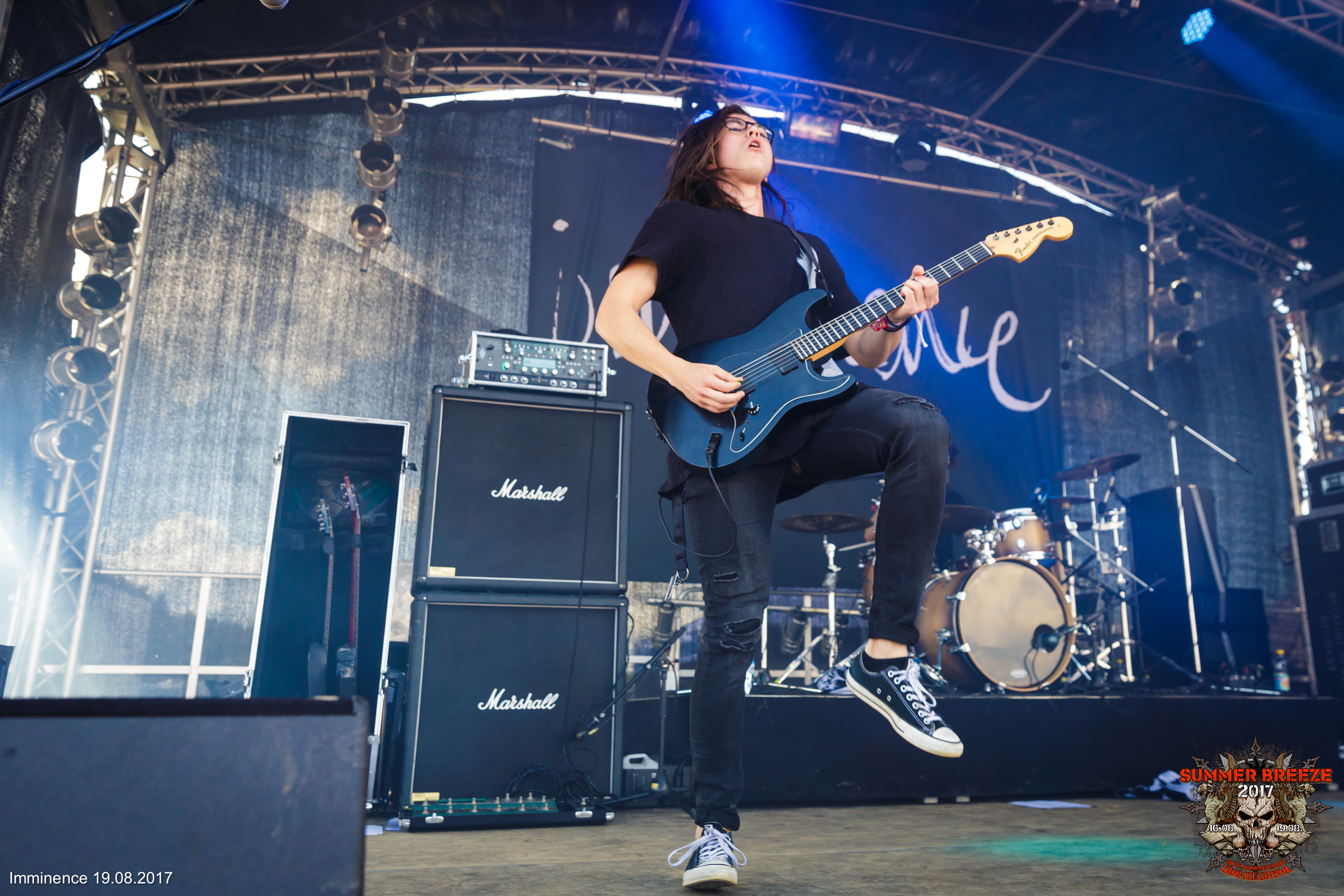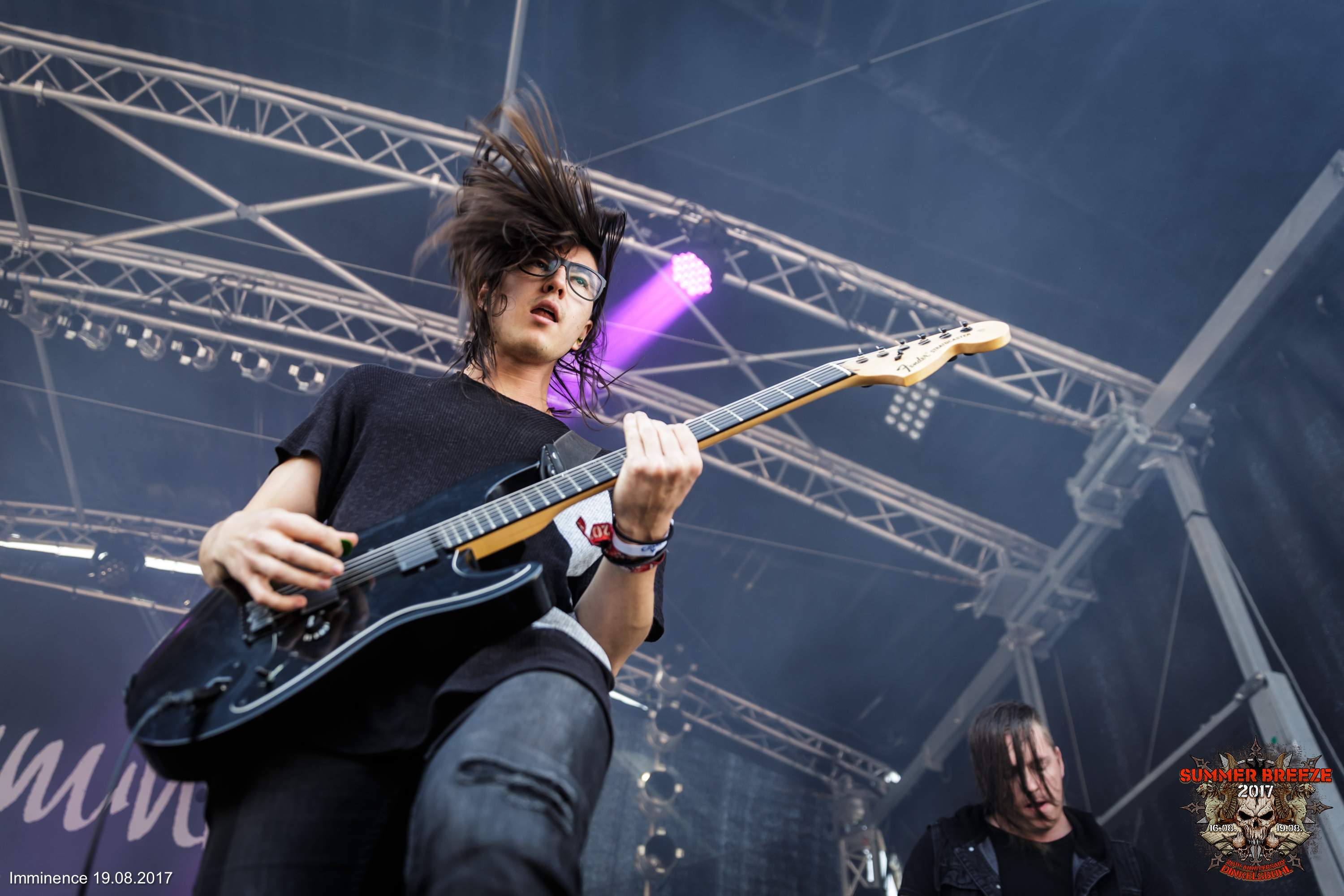 IMMINENCE aus Schweden haben den Dreh offenbar raus: nachdem zu Beginn des Auftritts auf der Camel Stage nur ein harter Kern direkt vor der Bühne aufmarschierte und der Rest eher punktuell und verloren herumstand, zogen die Jungs ihr Publikum stetig und selbstbewusst in ihren Bann. Der eingängige Mix aus Metalcore und poppigen Melodien erwies sich dabei als smartes Erfolgsrezept. Auch der volle Körpereinsatz des Quartetts tat sicher ein Übriges um die Menge auf Betriebstemperatur zu bringen. Zur Belohnung gab es trotz der kurzen halben Stunde Spielzeit genug Action für eine Wall of Death, einen Circle Pit und überhaupt jede Menge Tanzbereitschaft vor der Bühne. Zudem fand sich auch der eine oder andere Fan, der die Texte der eingängigen Melodien mitschmettern konnte – ein Zeichen, dass wir von dieser Band wohl auch in Zukunft noch hören werden. Sänger Eddie Berg lobte sein Publikum dafür charmant mit ein paar Bröckchen Deutsch, ehe wieder ordentlich ins Mikro gekreischt wurde und die Mähnen und Fäuste flogen.
