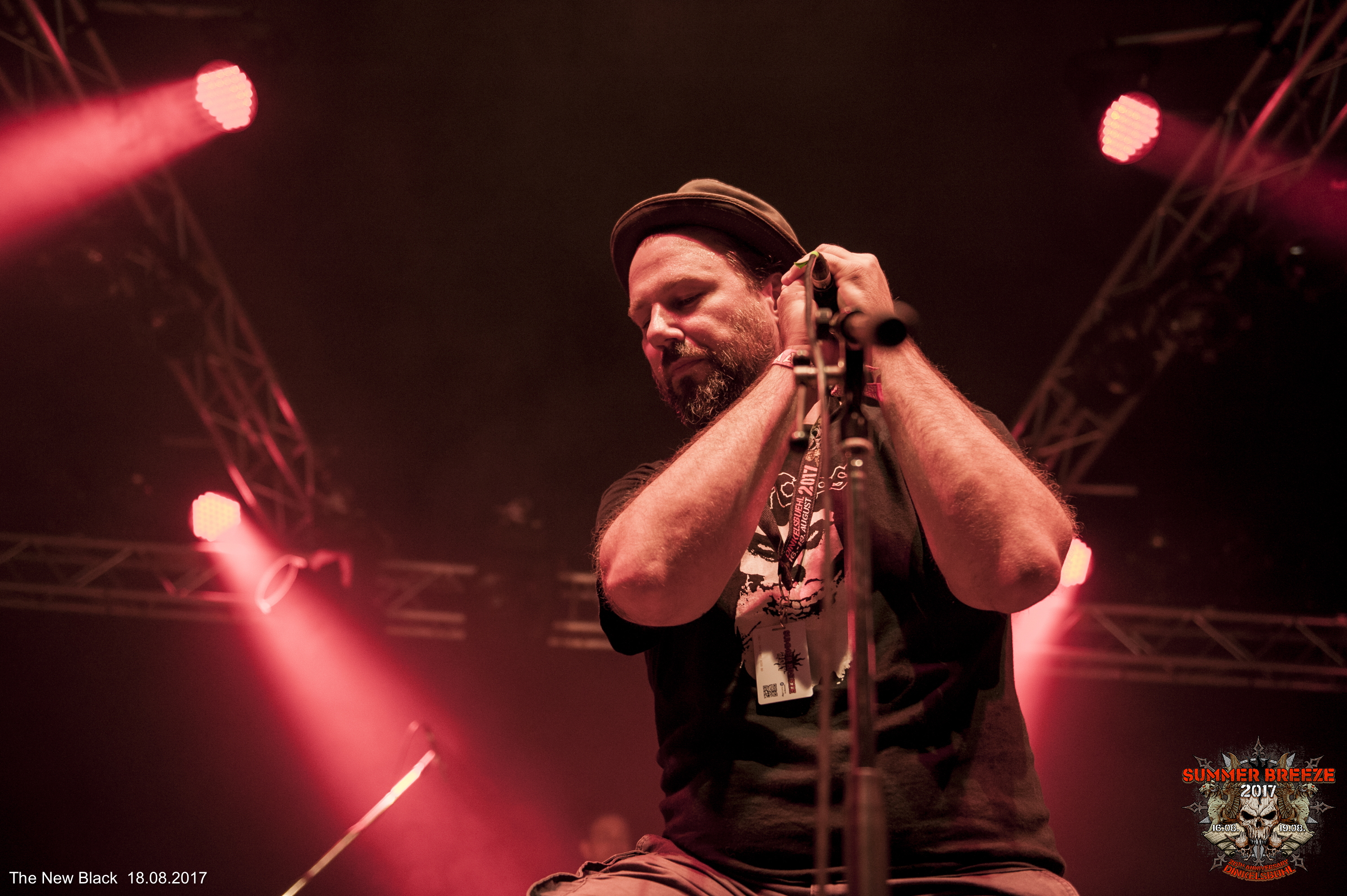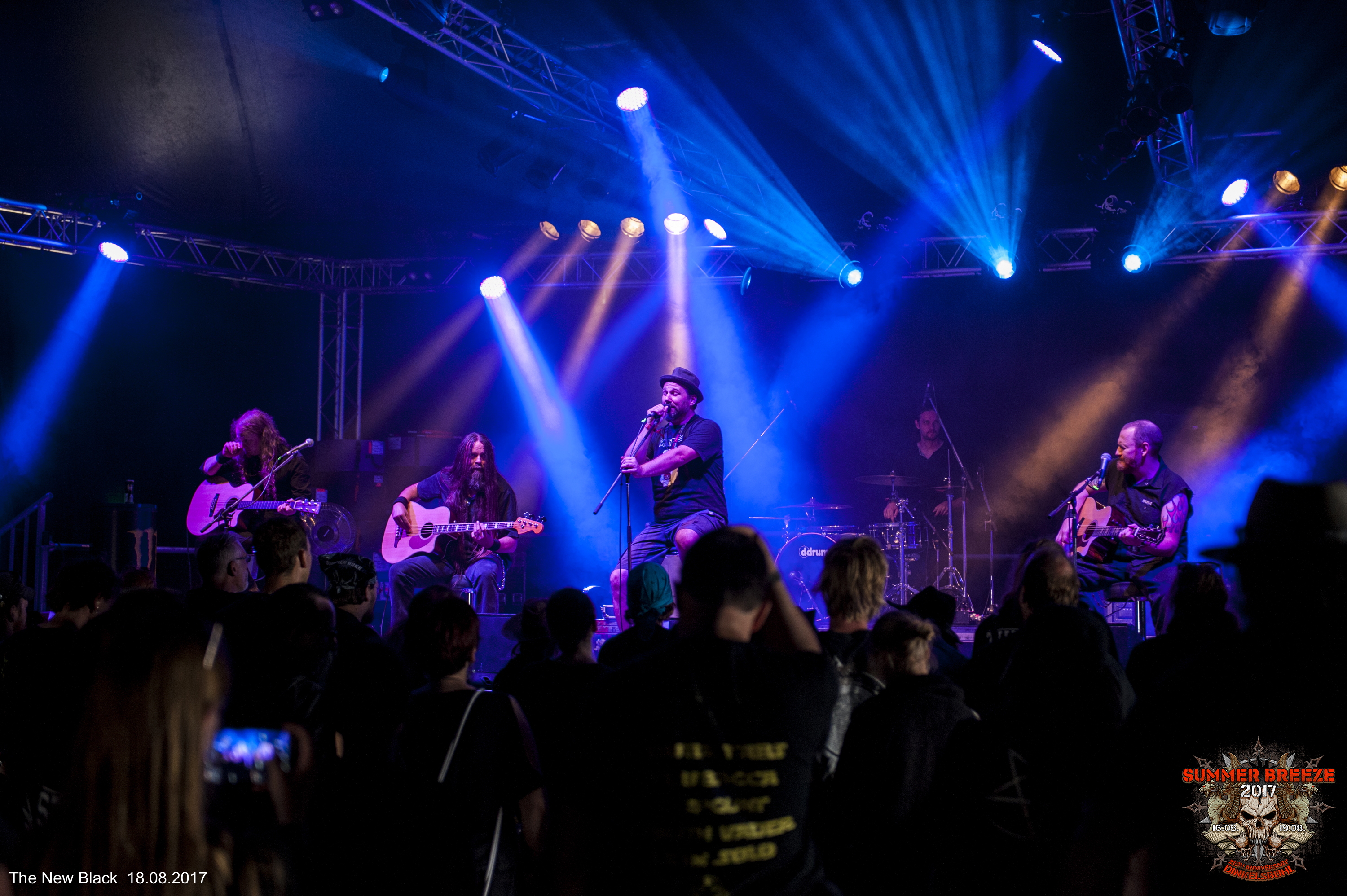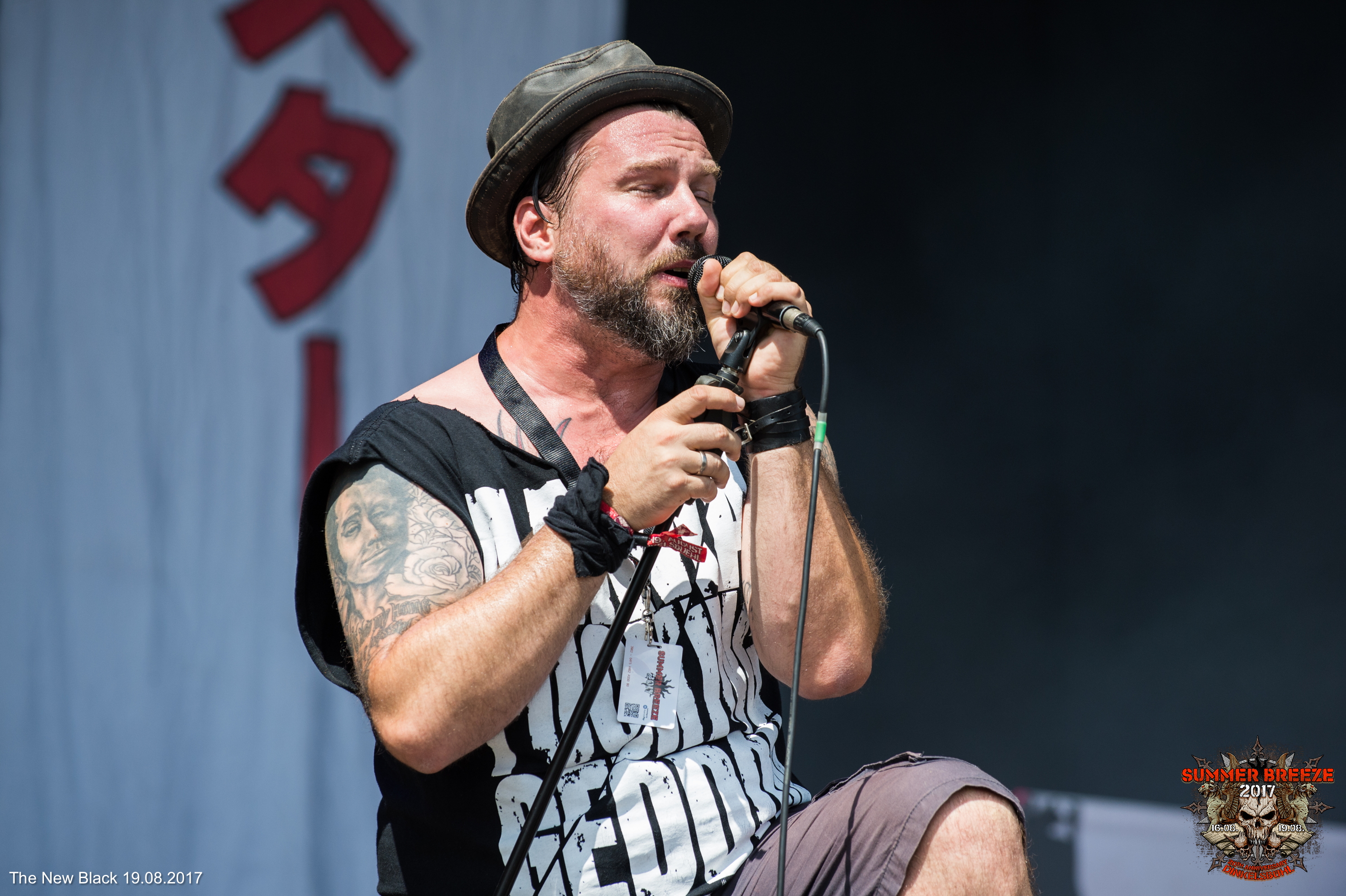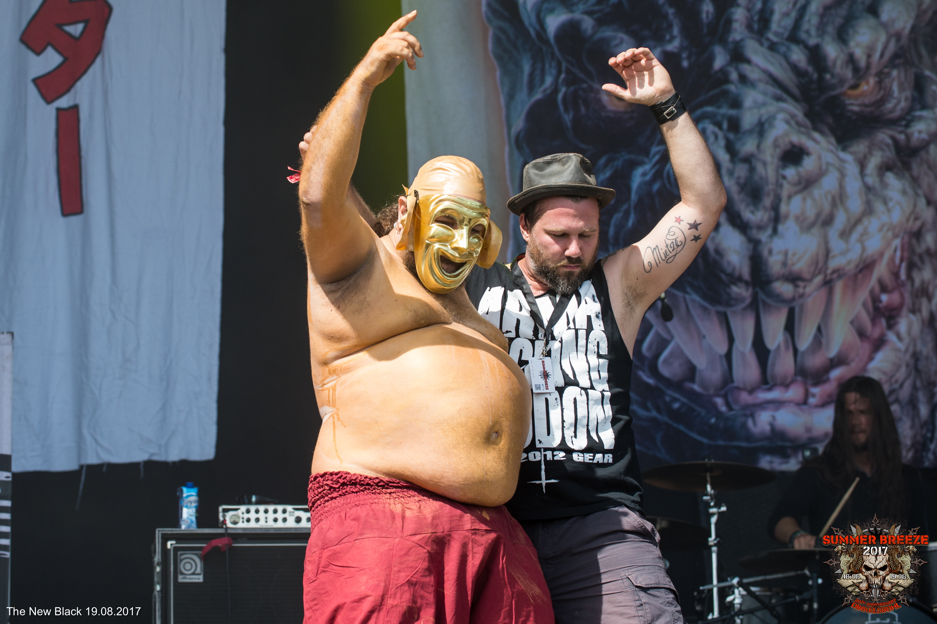 Neben dem SUMMER BREEZE selbst feierten auch THE NEW BLACK in diesem Jahr ein Jubiläum. Anlässlich ihres zehnjährigen Bestehens hatte die Band sich für ihren T-Stage-Auftritt am Samstag eine Reihe von Gimmicks überlegt. Im Verlaufe des Sets betraten Freunde und Weggefährten wie Vito von den Mitfranken J.B.O. die Bühne – dieser passenderweise zum Song „Clowns“ – und halfen vorübergehend an der Gitarre aus. Zu „Buddha“ schob sich ein goldfarben bepinselter BEMBERS auf die Bretter und übte sich im beeindruckenden Ausdruckstanz. Nach vollendetem Einsatz nahmen die Gäste auf einer Couch am Bühnenrand Platz und verfolgten mit einem Bier im Anschlag den Rest der Show. Abgesehen von der spaßigen Bühnenshow überzeugten THE NEW BLACK aber auch musikalisch mit ihrem groovigen Hard Rock und versammelten in kurzer Zeit eine größer werdende Menge vor der Bühne. Die Mähnen flogen, auf der Bühne wurde gegrinst und sich zugeprostet. Auf die nächsten zehn Jahre mit THE NEW BLACK!