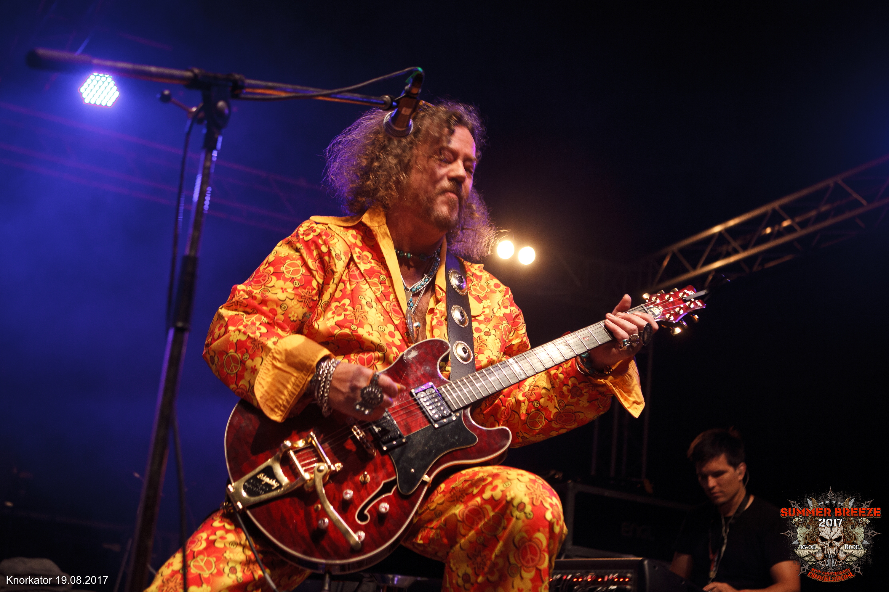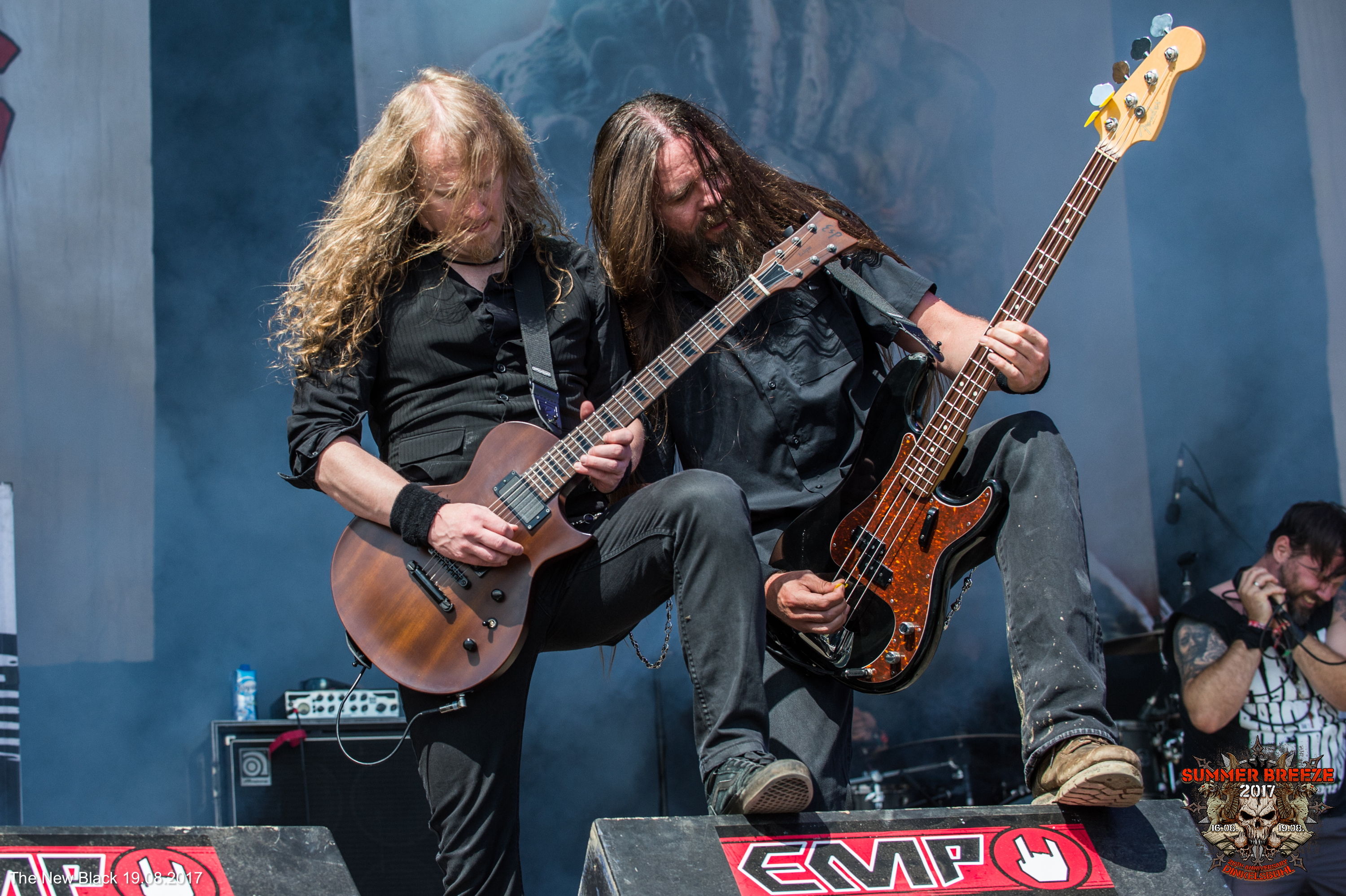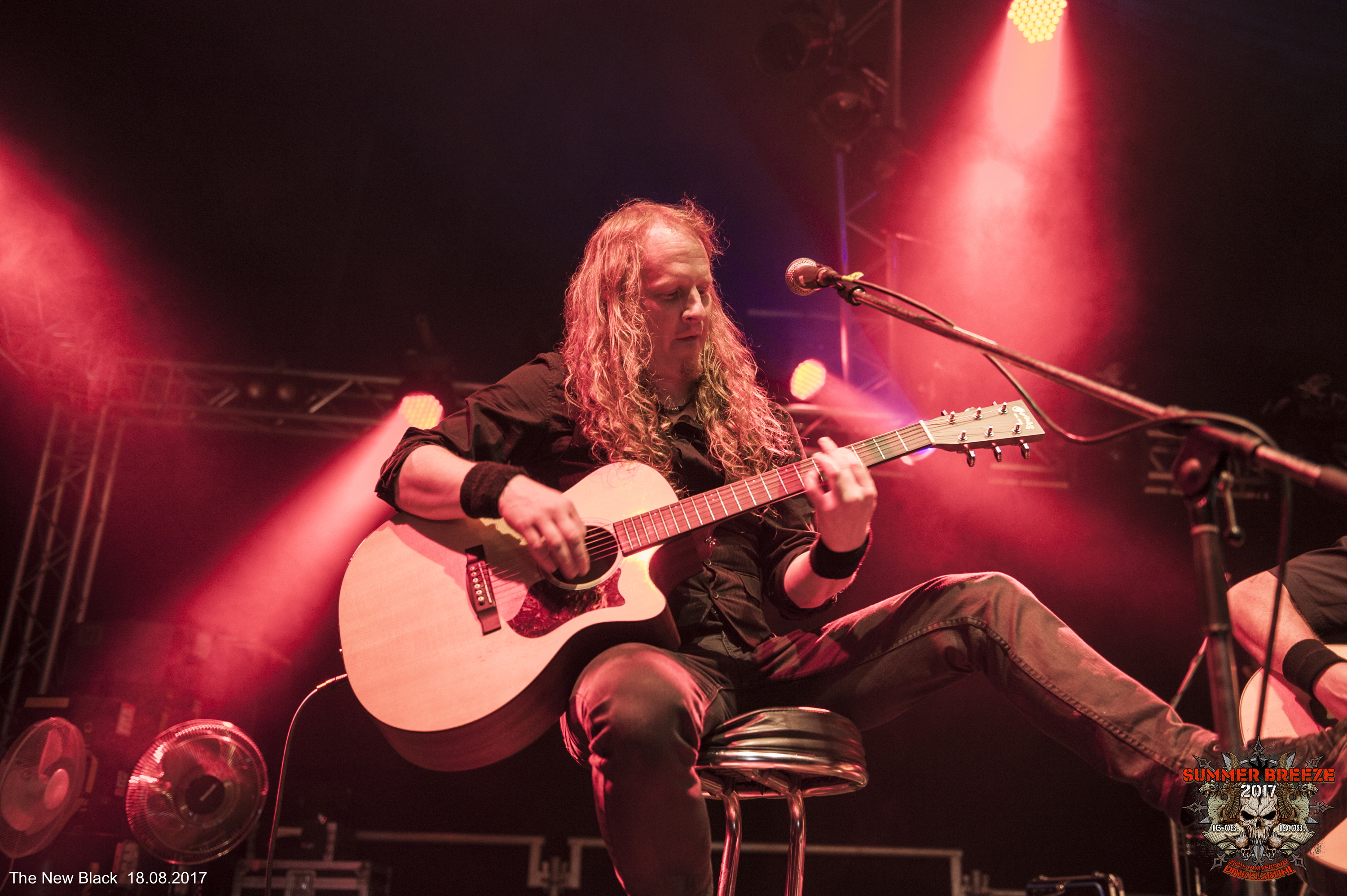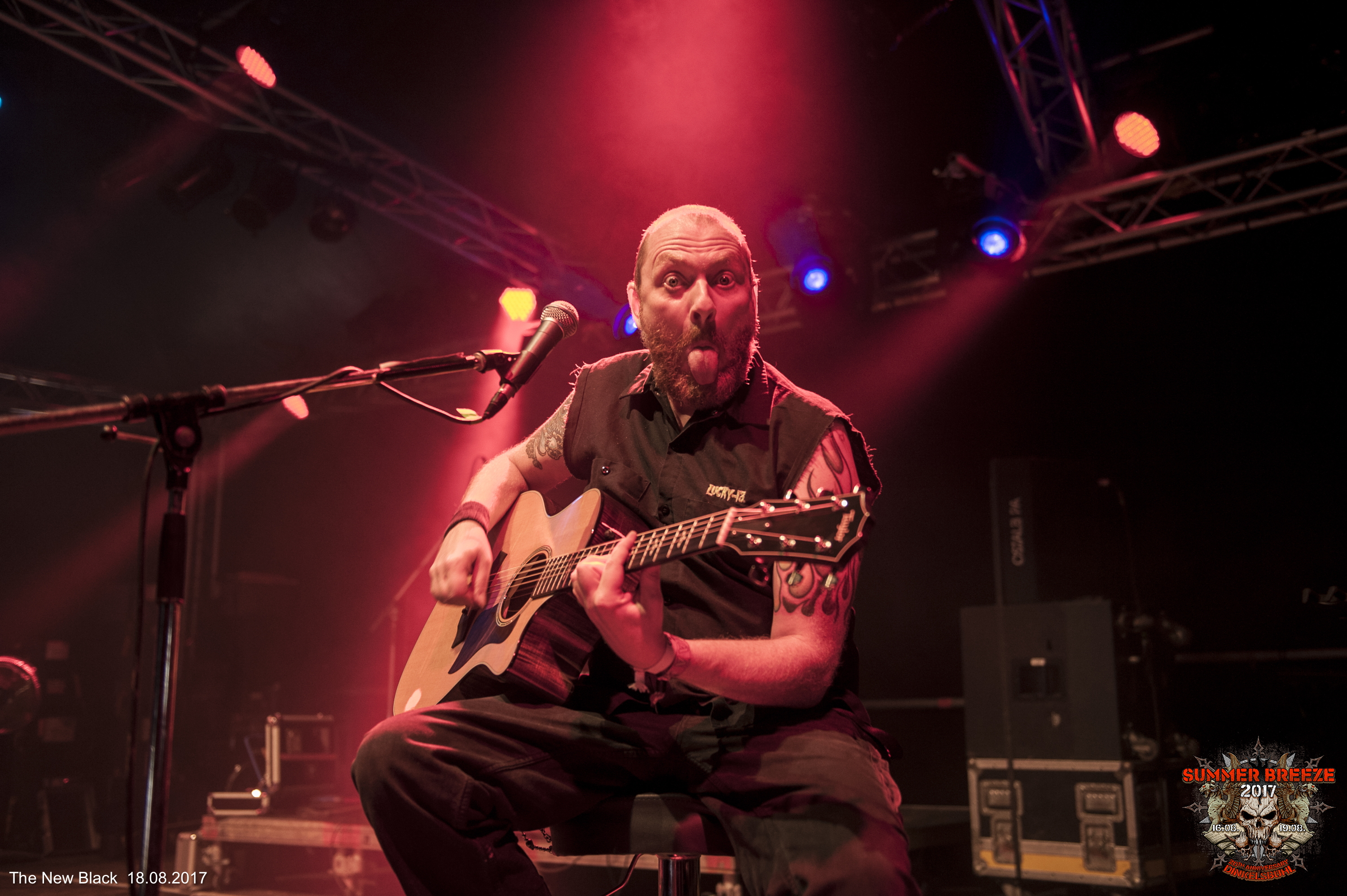 Neben dem SUMMER BREEZE selbst feierten auch THE NEW BLACK in diesem Jahr ein Jubiläum. Anlässlich ihres zehnjährigen Bestehens hatte die Band sich für ihren T-Stage-Auftritt am Samstag eine Reihe von Gimmicks überlegt. Im Verlaufe des Sets betraten Freunde und Weggefährten wie Vito von den Mitfranken J.B.O. die Bühne – dieser passenderweise zum Song „Clowns“ – und halfen vorübergehend an der Gitarre aus. Zu „Buddha“ schob sich ein goldfarben bepinselter BEMBERS auf die Bretter und übte sich im beeindruckenden Ausdruckstanz. Nach vollendetem Einsatz nahmen die Gäste auf einer Couch am Bühnenrand Platz und verfolgten mit einem Bier im Anschlag den Rest der Show. Abgesehen von der spaßigen Bühnenshow überzeugten THE NEW BLACK aber auch musikalisch mit ihrem groovigen Hard Rock und versammelten in kurzer Zeit eine größer werdende Menge vor der Bühne. Die Mähnen flogen, auf der Bühne wurde gegrinst und sich zugeprostet. Auf die nächsten zehn Jahre mit THE NEW BLACK!