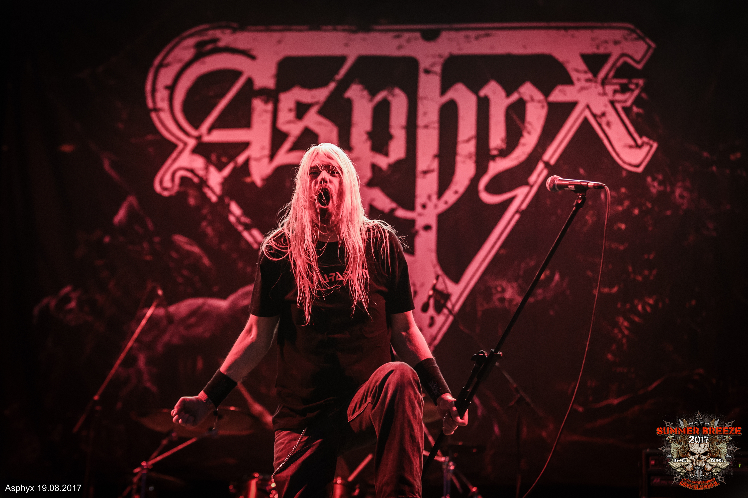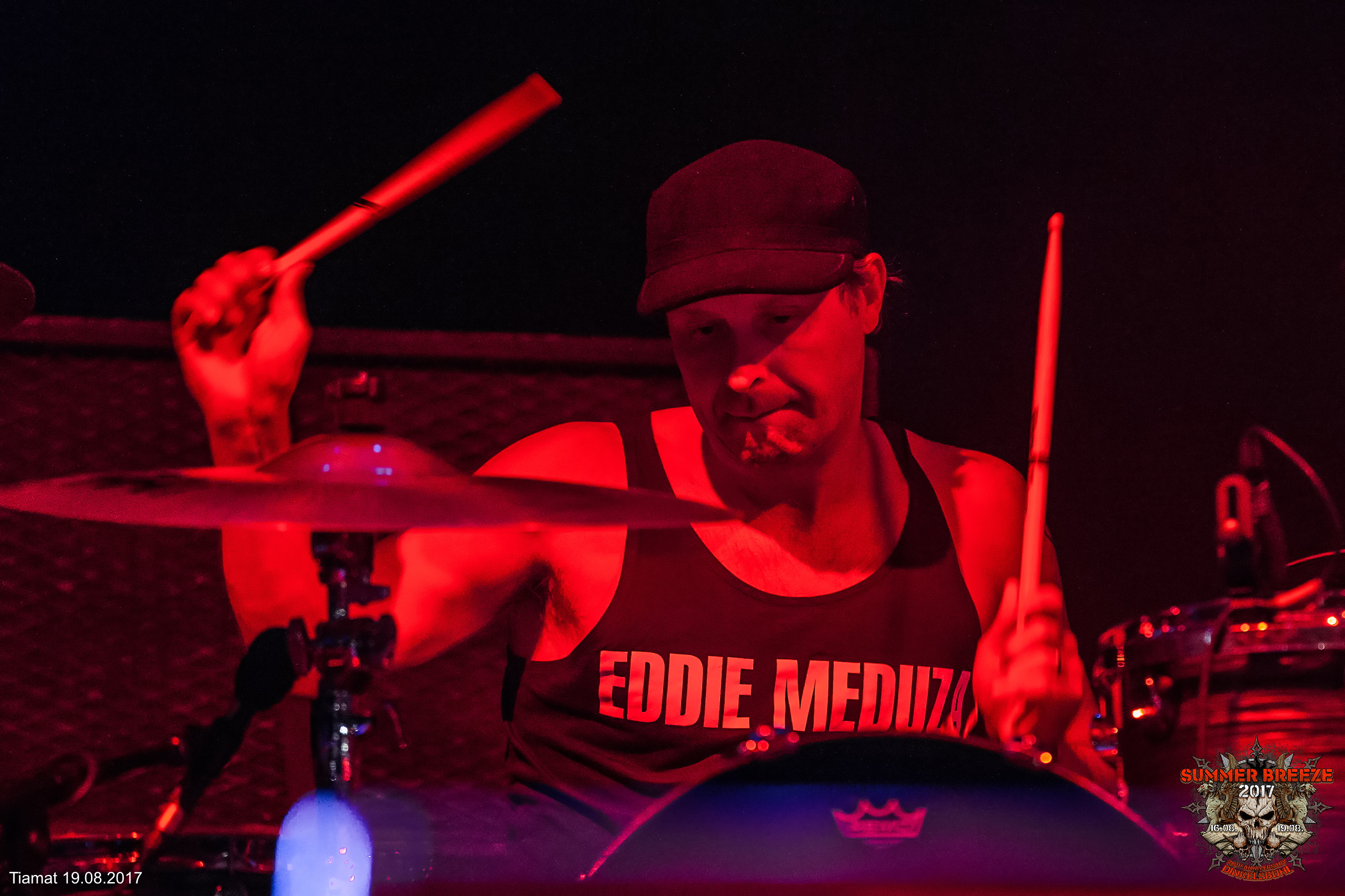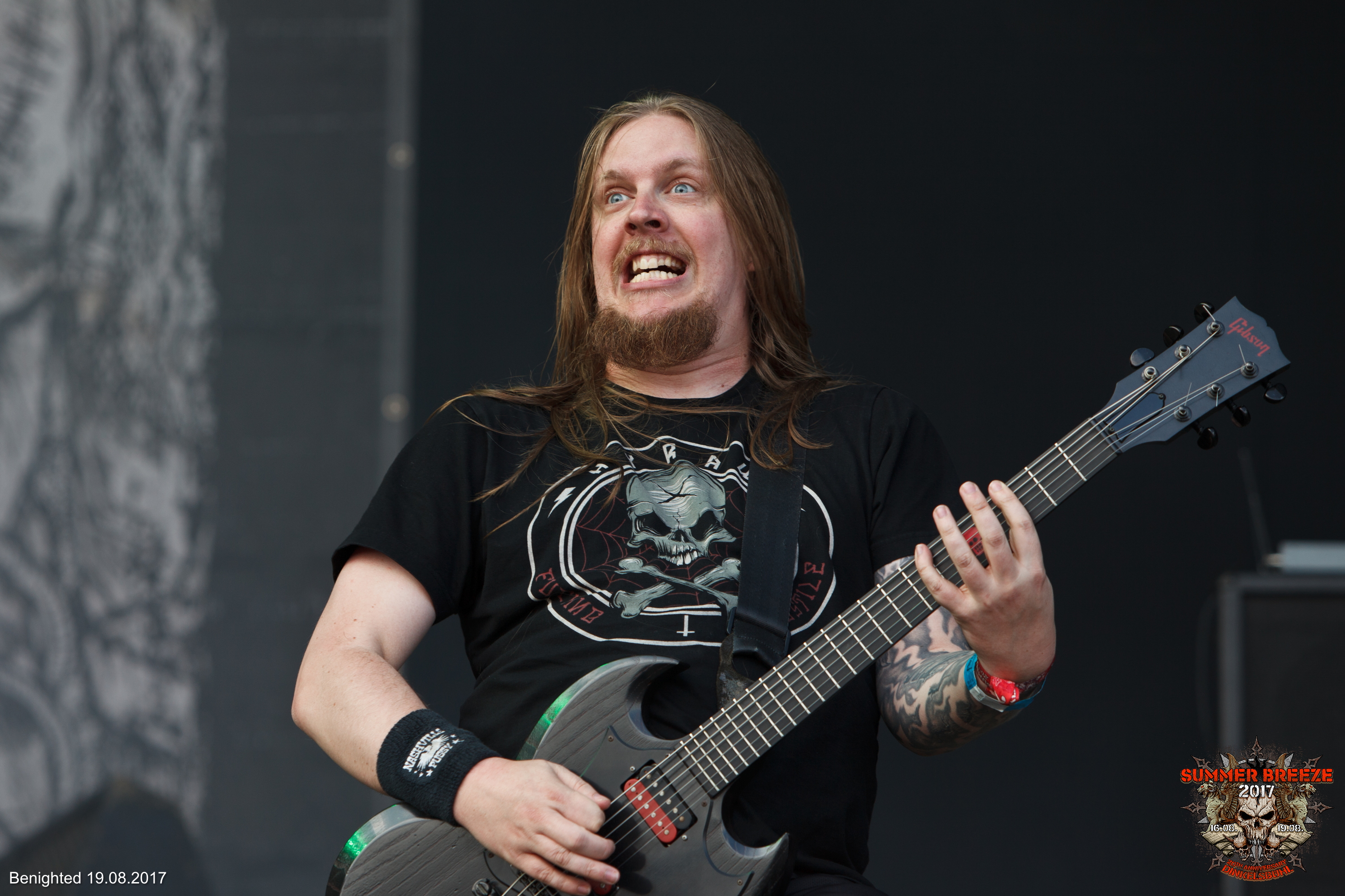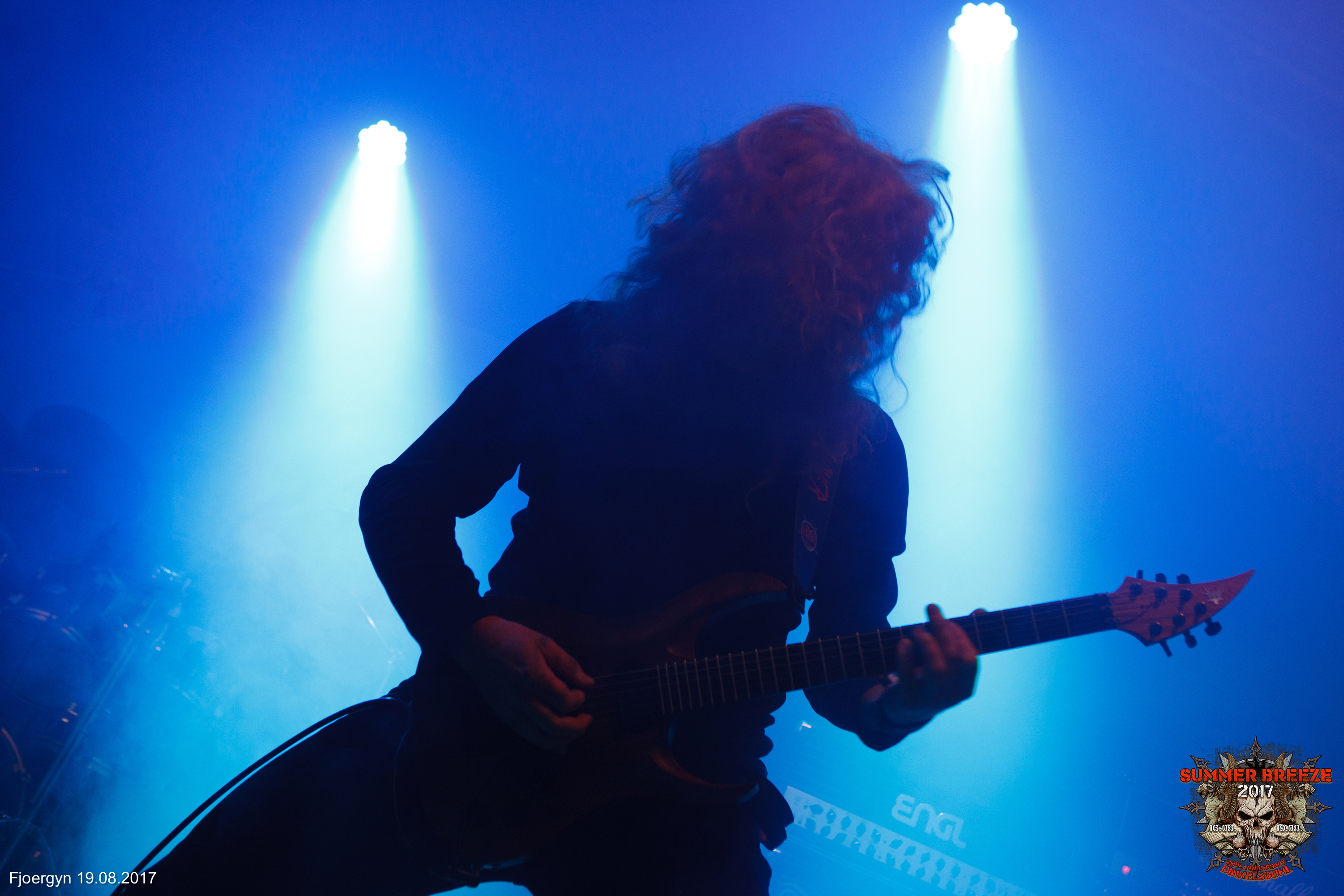 Bereits eine halbe Stunde vor Konzertbeginn trieb eine rauchige Stimme beim Bühnenumbau Schabernack mit dem Publikum, während Heaven Shall Burns Echo zu vernehmen war. Martin van Drunen war redselig und zu Späßen aufgelegt, beste Voraussetzungen also für einen folglich hammermäßigen Auftritt. Und der folgte bei der (vorwiegend) holländischen Dampfwalze unausweichlich und unerbittlich! Ab dem ersten Takt, den Stephan „Tormentor“ Hüskens angab, rotierten die Propeller – auch bis in die letzten Ecken irgendwo beim Cocktailstand. Der Sound war umwerfend gut, so dass die sägenden Gitarren schnörkellos von schnell auf langsam schalten und die ersten fünf Reihen mit unbarmherziger Intensität umwalzen konnten. Dabei haben sie sich an diesem Abend für eine eher schnellere Gangart entschieden und die Teilnehmer der kleinen Circle Pits hörten sicherlich nur zwischendurch kurz auf, um den Drehwurm zu bekämpfen. Spätestens als dem Platz der „Deathhammer“ um die Ohren flog, wurde es in den vorderen Reihen nochmal kuscheliger, da immer mehr Zuschauer zur T-Stage pilgerten und das nicht ohne Grund: Zu guter Letzt waren bei „Last One On Earth“ wirklich alle Fäuste in der Luft. Die Jungs haben wieder einmal alles richtig gemacht!