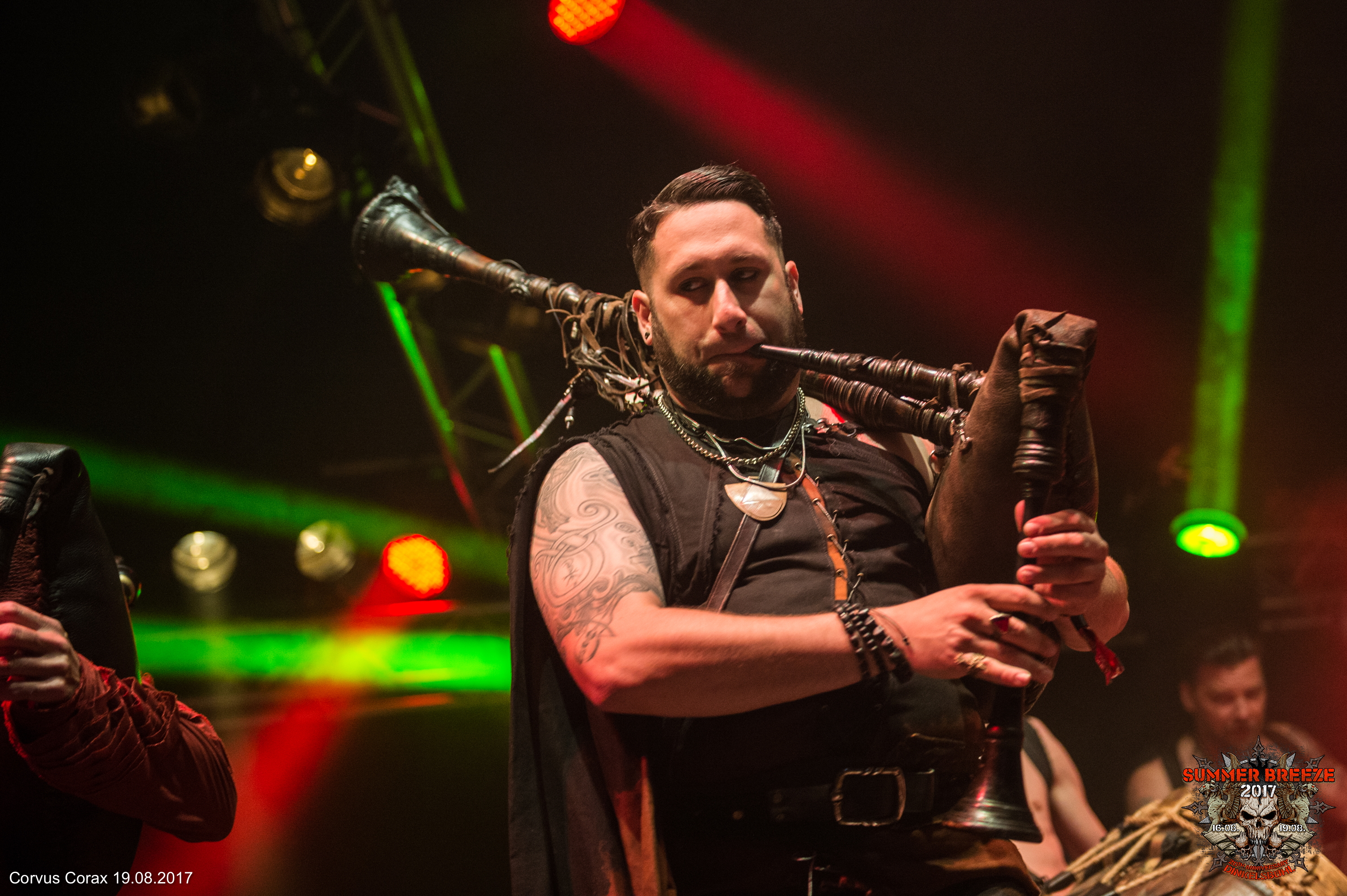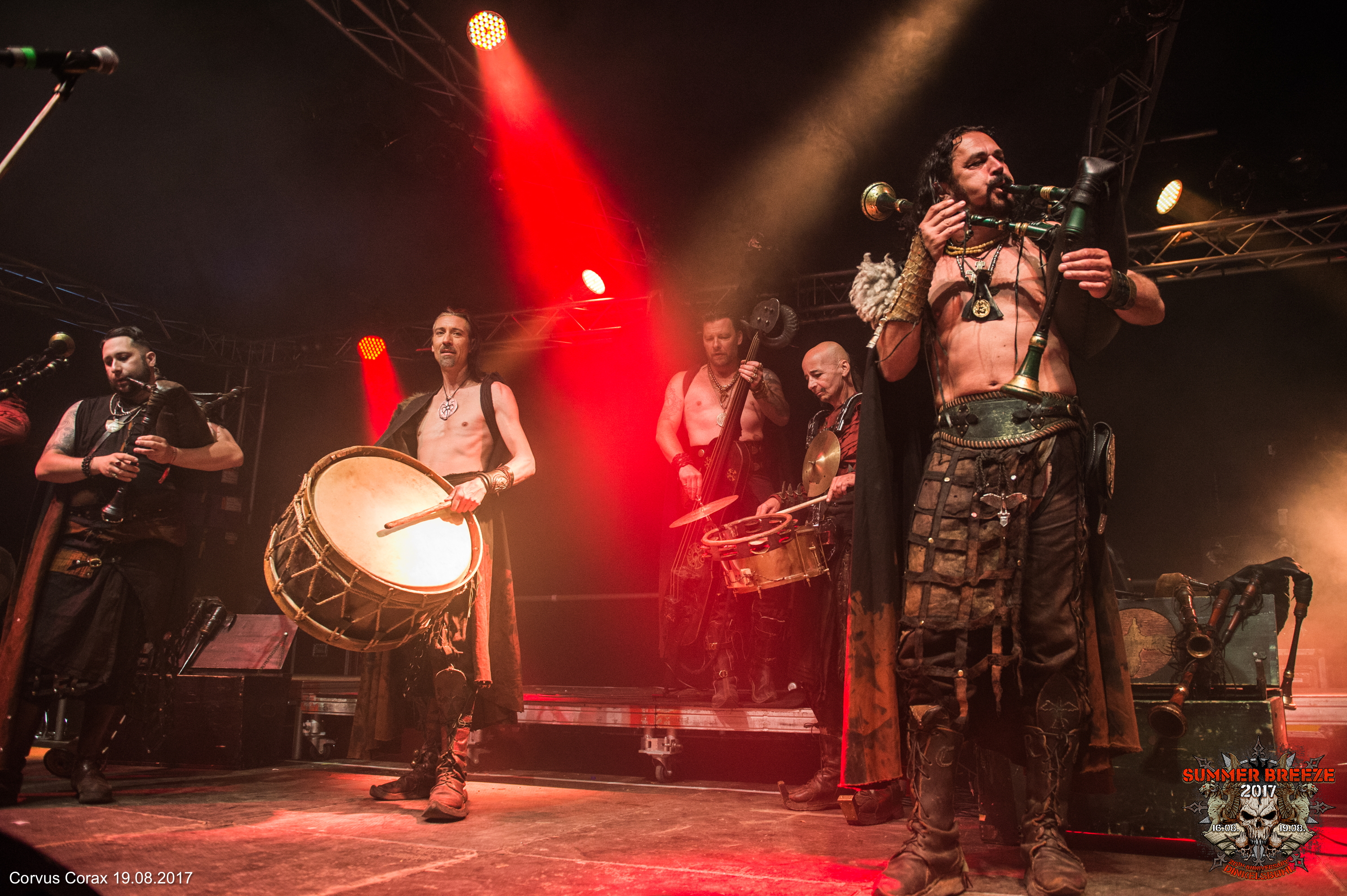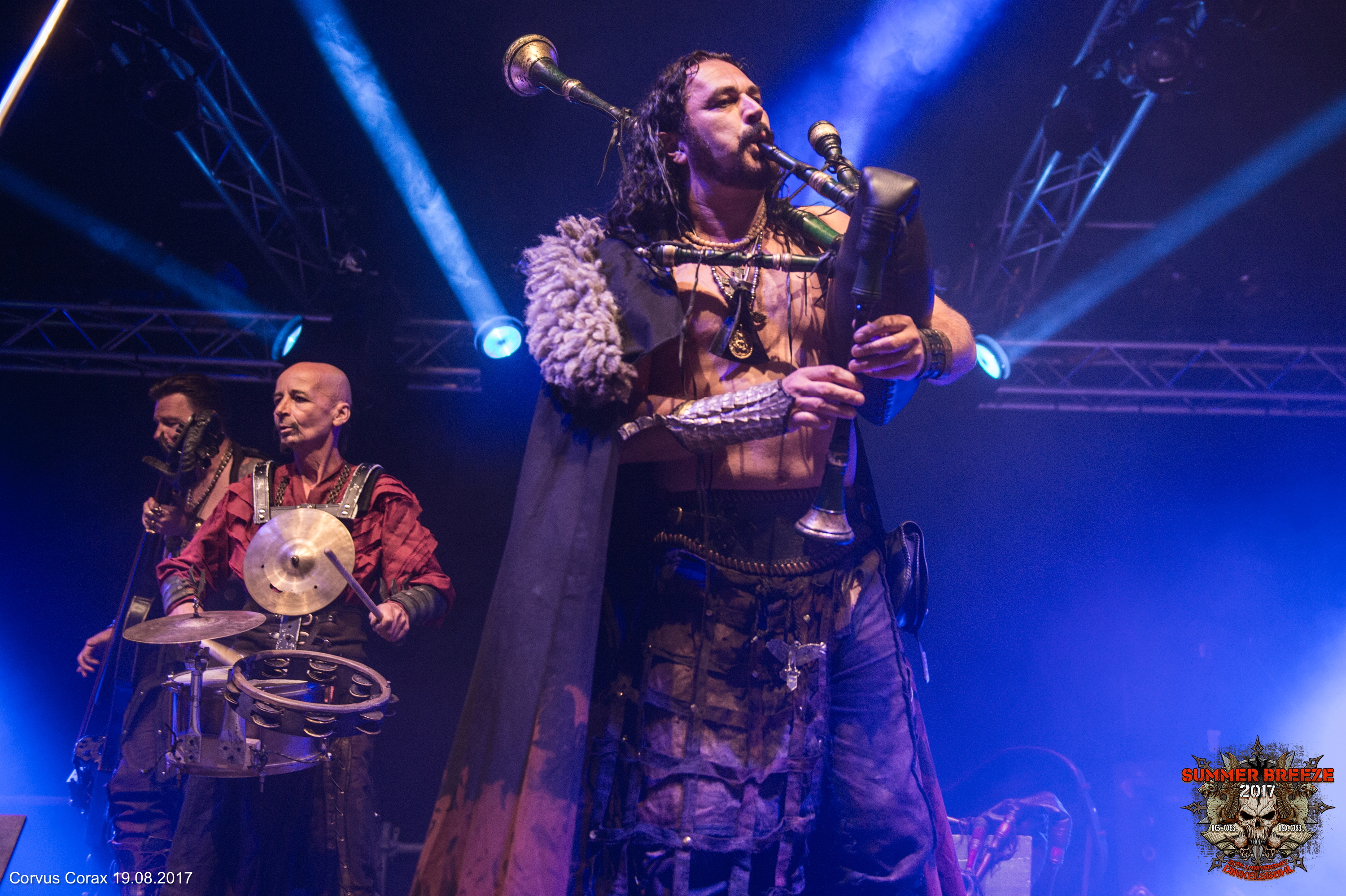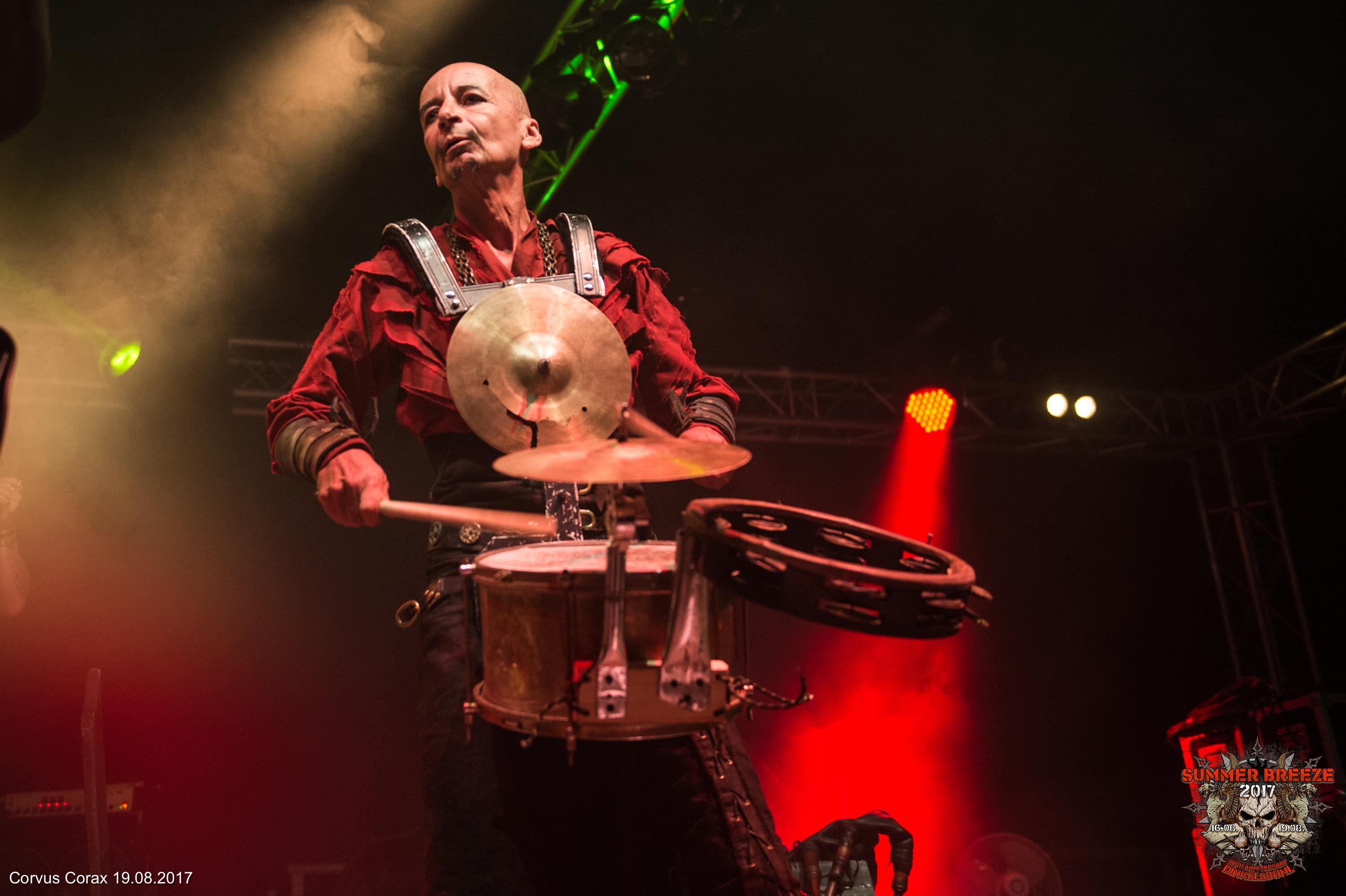 Viel erdiger und ursprünglicher geht es nicht! CORVUS CORAX spielten unplugged im brechend vollen Campsite Circus und lösten auch unverstärkt ein Klanggewitter aus, das Hände in die Luft und Beine in Bewegung brachte. Unter Ausschluss der Nachmittagssonne, beim Klang von Dudelsack, Schlagwerk, Schalmeien und Hörnern konnte man sich tatsächlich vorkommen, wie bei einem mittelalterlichen Gelage zum Auftritt der Spielleute. Dieser Funke sprang auf die Menge über, die ohnehin unverkennbar aus Fans der Mittelalter-Formation bestand. Instrumentalstücke wurden laut mitgesummt und beklatscht, Texte waren bestens bekannt – insbesondere zu „Havfru“ lieferten sich Band und Publikum einen regelrechten Schlagabtausch. Als besonderes Bonbon zum Abschluss spielten CORVUS CORAX ihre ganz eigene Version des „Game Of Thrones“- Titelsongs, mit dem Hinweis auf die Beteiligung der Gruppe am ursprünglichen (und dann verworfenen) Pilotfilm der Serie. Die Herausforderung ans Publikum lautete, beim Mitsummen besser abzuschneiden, als die Besucher des Hellfests. Ob das gelungen ist, wurde leider nicht verraten – aber wir dürfen gewiss davon ausgehen, dass das SUMMER BREEZE hier den Vogel abgeschossen hat! Wer dennoch nicht genug von CORVUS CORAX bekommen hat, oder nicht dabei sein konnte, durfte sich auf eine zweite Chance beim Auftritt von CANTUS BURANUS am Abend freuen.