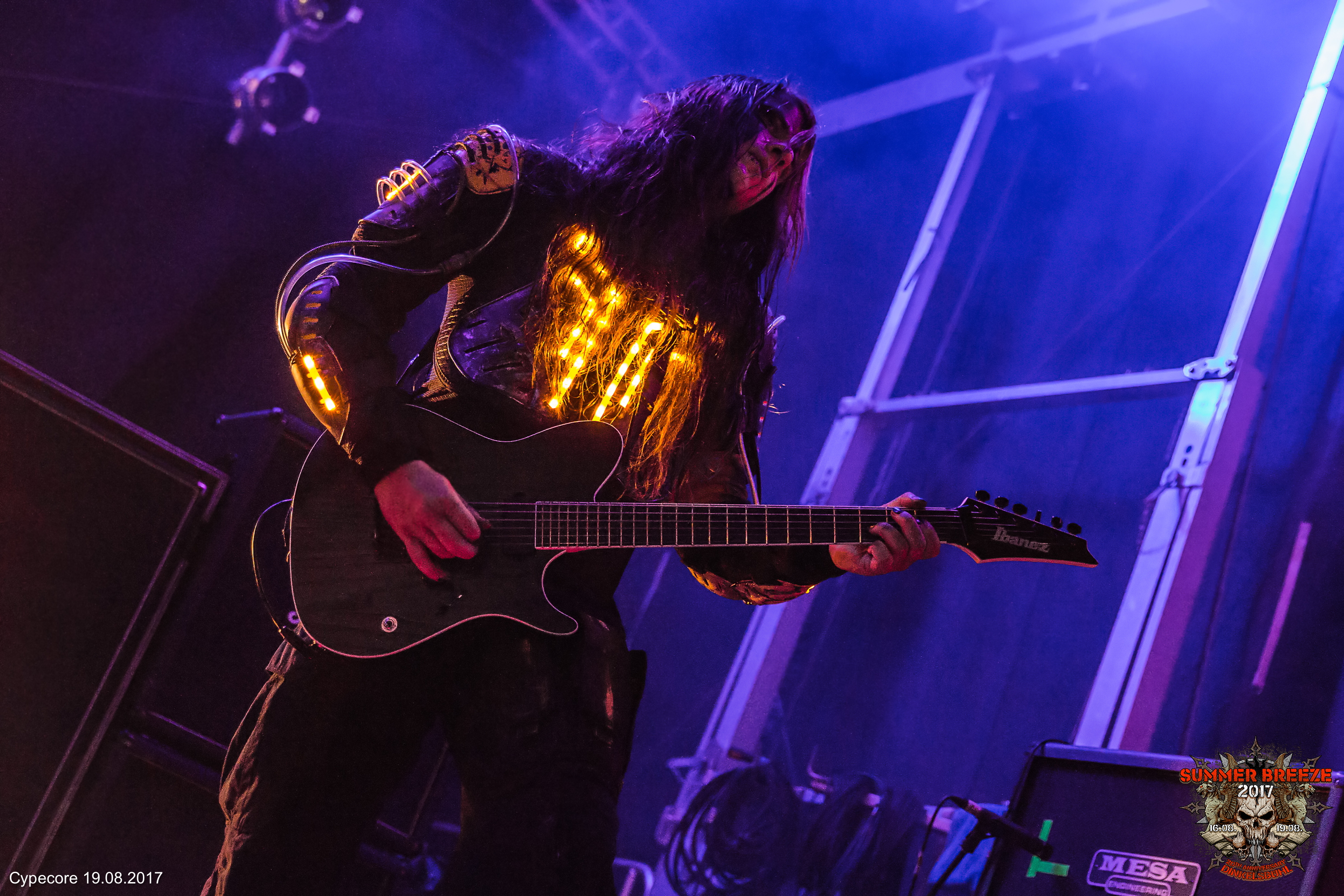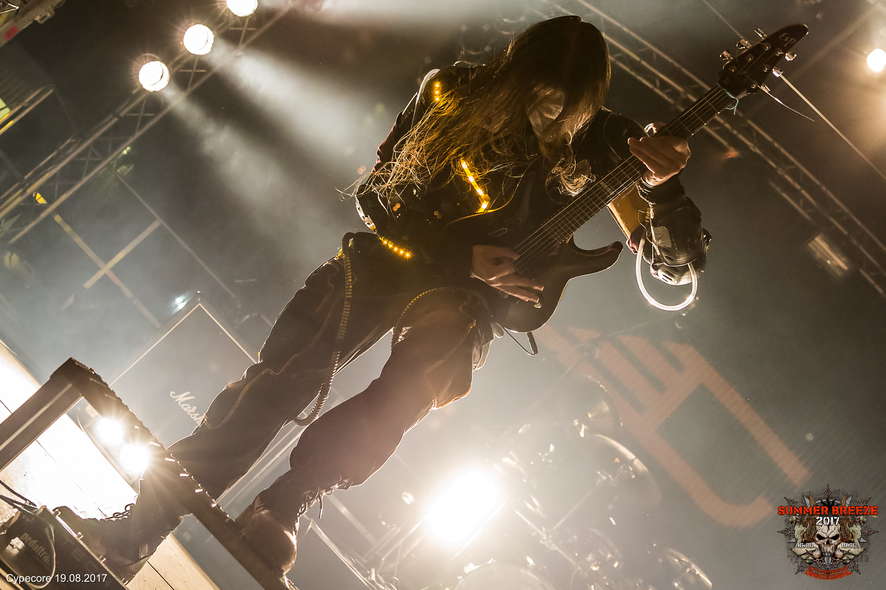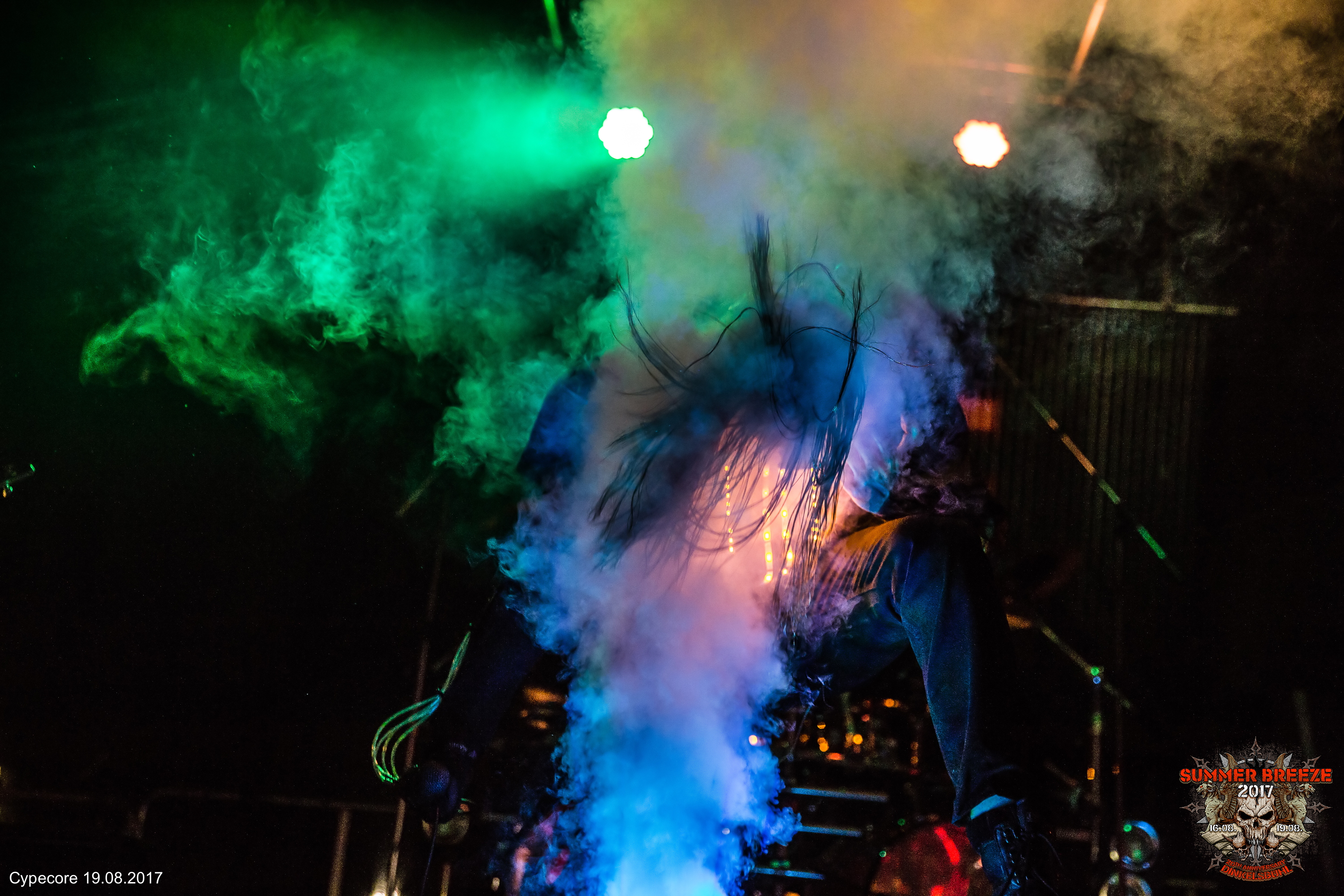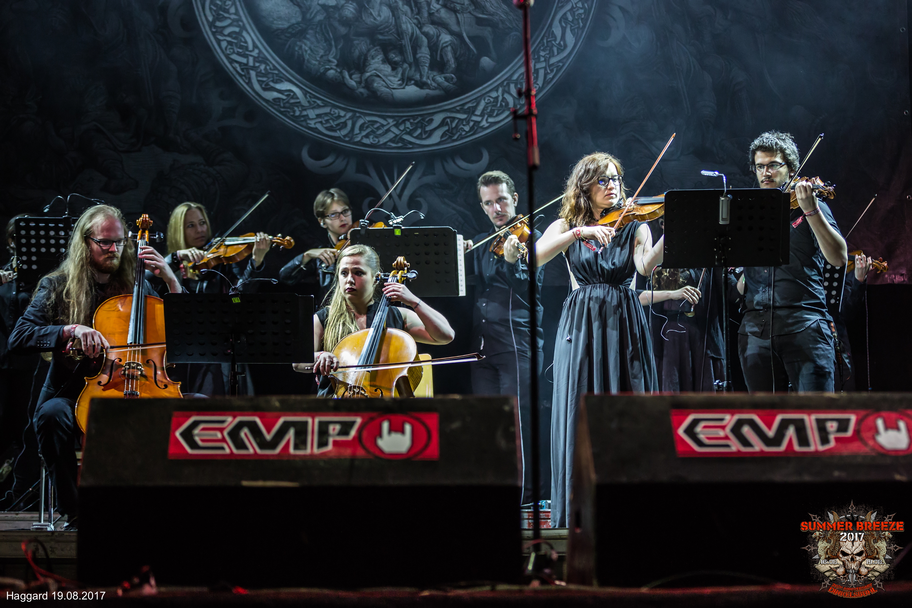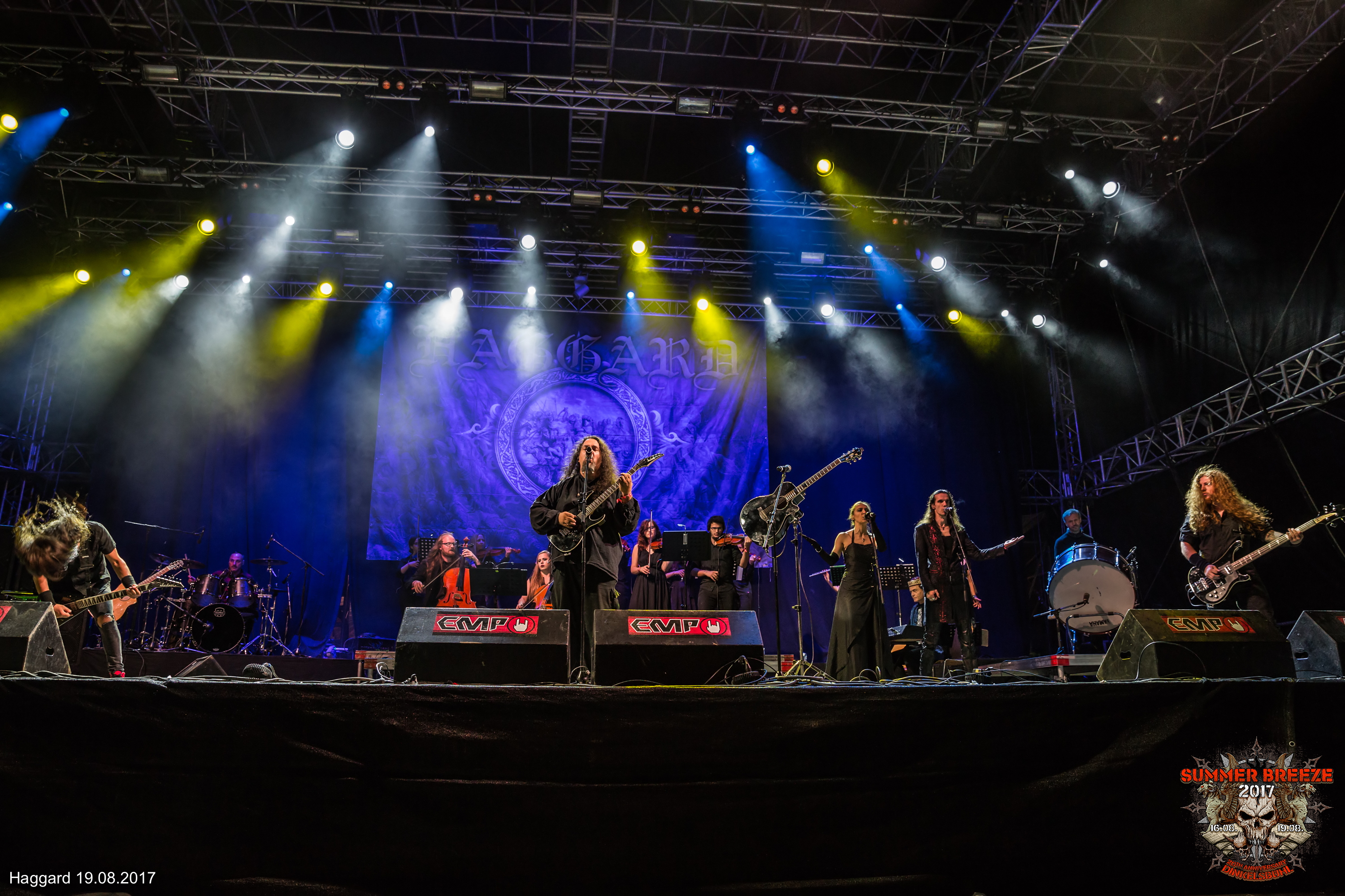 Im Rahmen eines Open-Air-Festivals mit enger Umbaupausen-Taktung den Sound für insgesamt zwanzig Sänger und Instrumentalisten – viele davon zudem mit klassichen Blas- und Streichinstrumenten bewaffnet – einzustellen, ist kein leichtes Unterfangen. So musste HAGGARD-Mastermin Asis Nasseri zum offiziellen Beginn der Show das Publikum erst einmal um einige Minuten Geduld bitten, bis ein letztes technisches Problem aus der Welt geräumt war. Dennoch harrte eine erfreulich große Zuschauermenge geduldig in der Kälte aus und freute sich auf komplexe Metal/Klassik-Hybrid-Stücke, die weniger für ausgelassenes Feiern als für andächtiges Lauschen geeignet waren. Das Warten sollte sich glücklicherweise bezahlt machen, denn bei exzellenten Soundverhältnissen spielten HAGGARD anlässlich dessen zwanzigjährigen Jubiläums ihr komplettes Debütalbum „And Thou Shalt Trust… The Seer“. Den wenigen, aber emotionalen Ansprachen von Asis merkte man die Leidenschaft für das eigene Werk und die Freude darüber an, dieses den begeisterten Fans live darbieten zu können. Die Antwort auf die Frage, welchen Song die Band als krönenden Abschluss spielen solle, fiel gleichermaßen eindeutig wie vorhersehbar aus: das monumentale „Awaking The Centuries“ bot einen Ausblick auf das gleichnamige Zweitwerk, dessen zwanzigjähriges Jubiläum HAGGARD in drei Jahren gerne ebenfalls auf dem SUMMER BREEZE begehen dürfen.