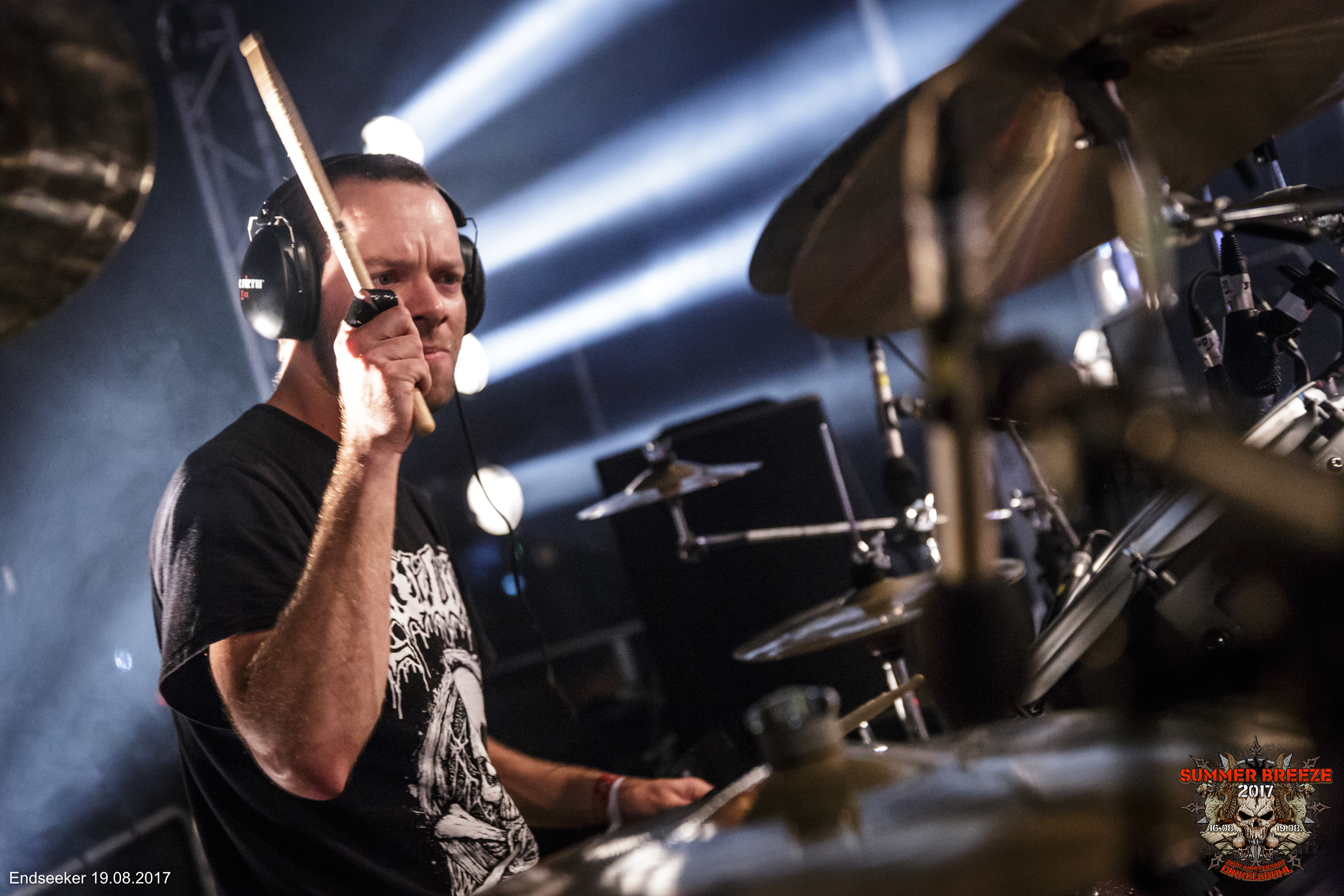 Das ist doch… Das klingt doch wie… Das muss es doch sein, oder? Als hätten die Godfathers Stockholmer Death Metals persönlich Hand angelegt, klang das Intro „Into The Flame“ frappant nach „Left Hand Path“, dazu brüllte ein Gitarrensound, der unzweifelhaft als HM-2 zu identifizieren war. Jepp, das hier war was für Freunde der alten Schule. Lediglich ein kleiner harter Kern von Todesblei-Fans versammelte sich zu Beginn des ENDSEEKER-Gigs, übrigens dem ersten ausserhalb ihrer norddeutschen Heimat, vor der Camel Stage, den die fünf Hamburger Jungs jedoch schnell zu erweitern wussten. Abgesehen vom erstklassigen Songmaterial, das hauptsächlich vom im Oktober erscheinenden Debut „Flesh Hammer Prophecy“ stammte, vermochte vor allem Fronter Lenny mit seiner ziemlich abgedrehten Körpersprache sowie den trocken-humorigen Ansagen das Publikum schnell zu vereinnahmen. Bei „Black Star Rising“, entgegen der Studioversion leider ohne ex-Morgoth-Sänger Marc Grewe, führte dies sogar zu einem kleinen Moshpit, bevor „Possessed By The Flame“ das Intro-Riff wieder aufgriff und aus dem Auftritt eine runde Sache machte. Auch wenn man selbst kein Schwede ist: schwedischer kann man Schweden-Death kaum zocken.