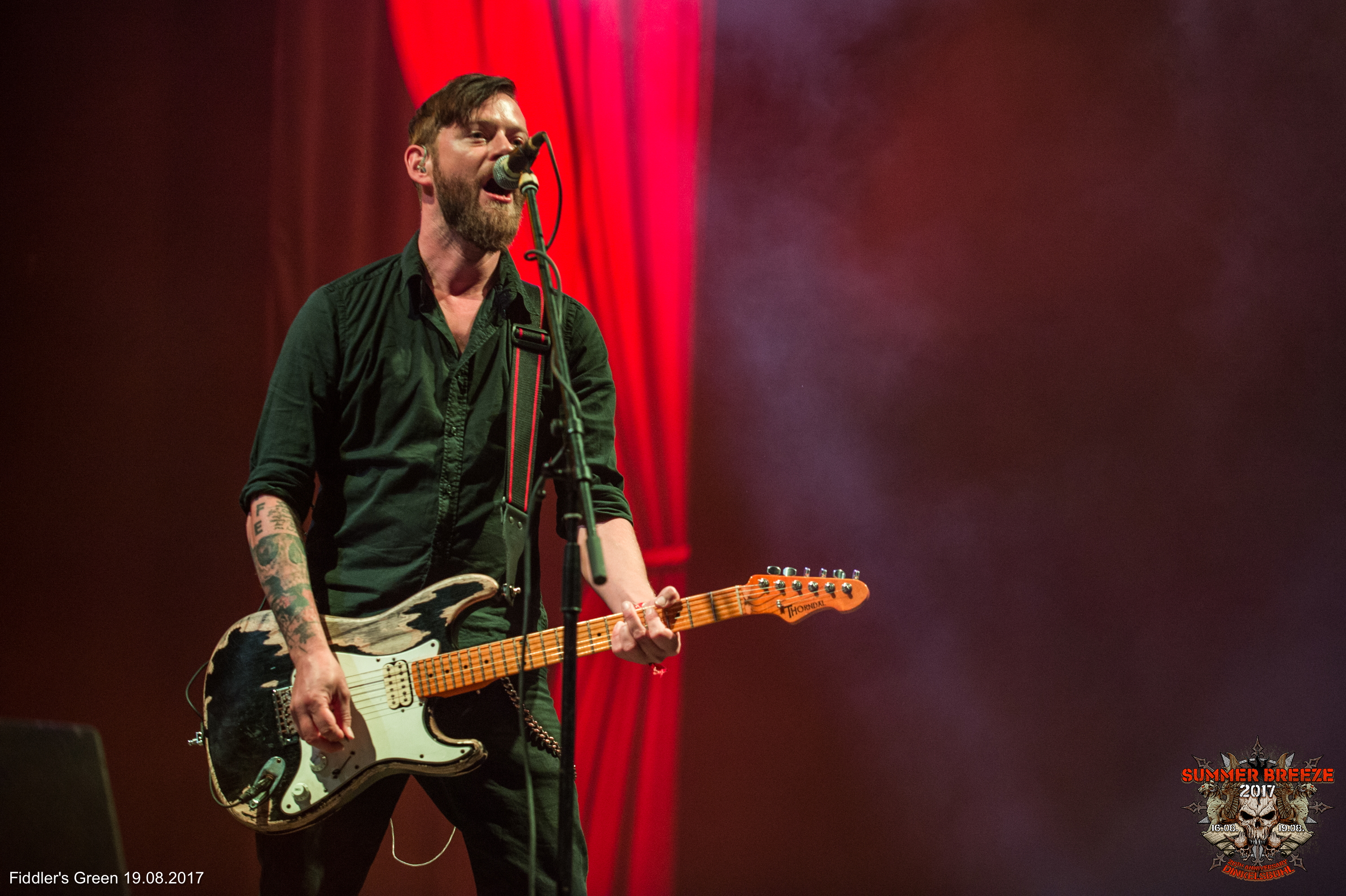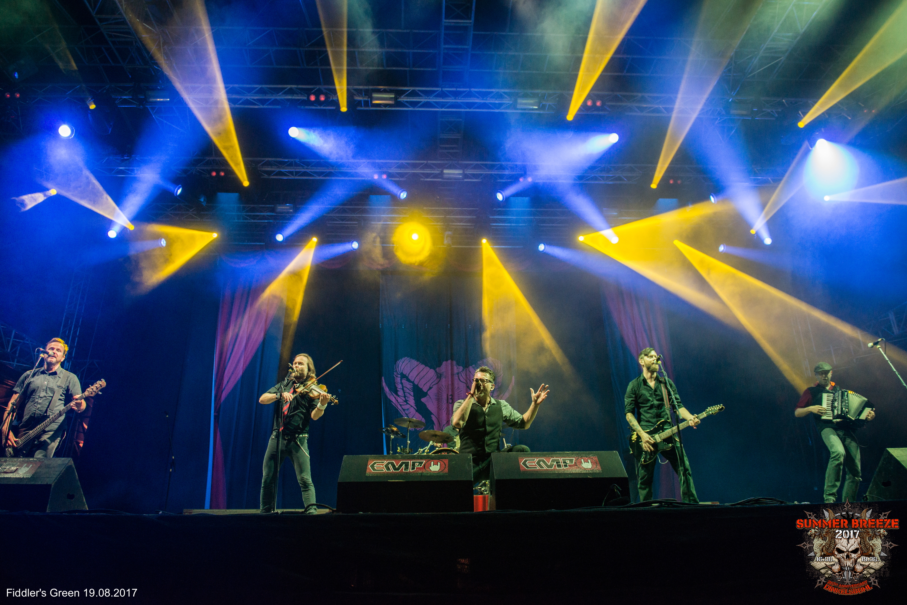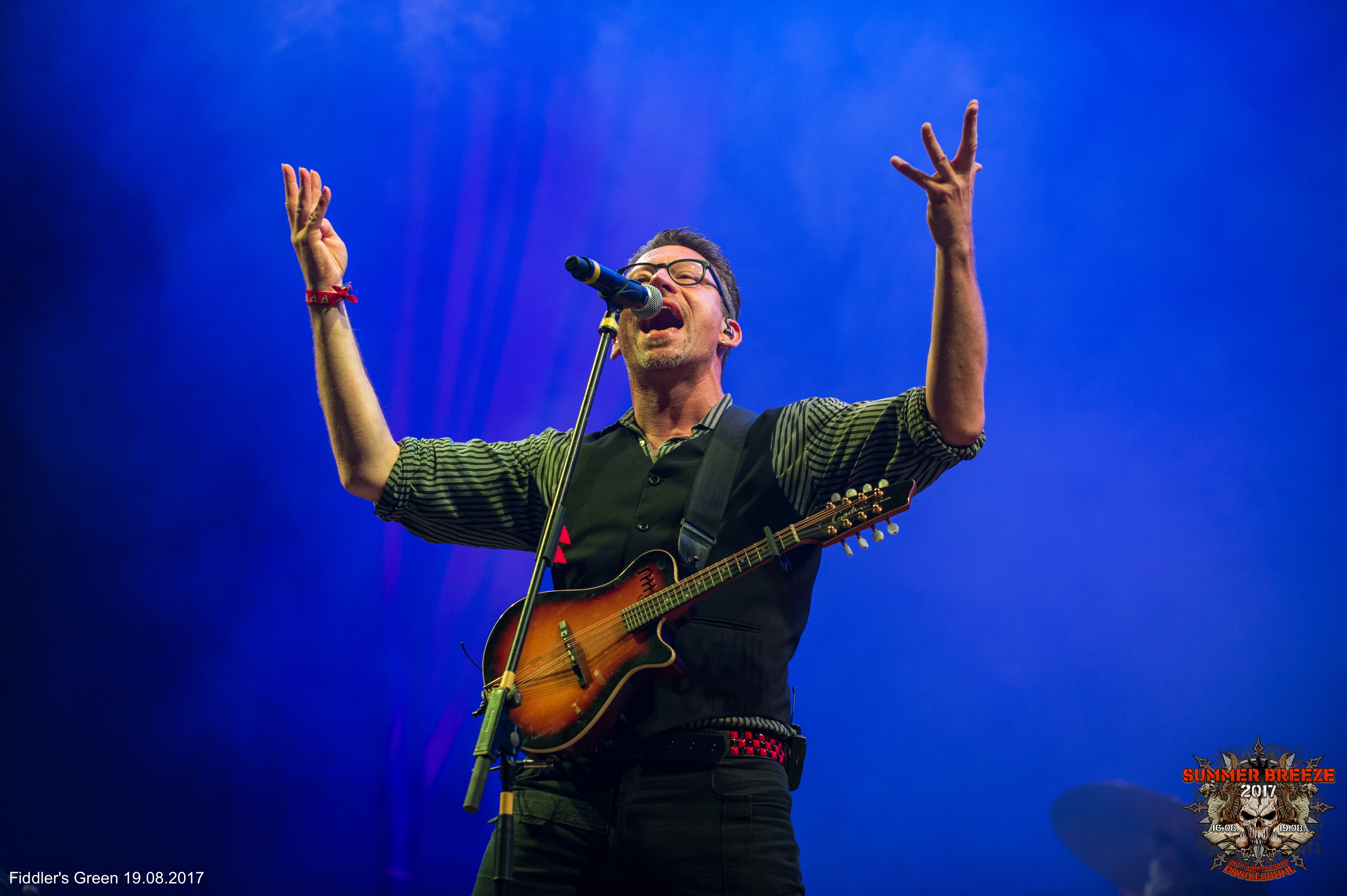 Nach ihrer Unplugged-Show am vorangegangenen Donnerstag durften FIDDLER’S GREEN nun die Bremsen komplett lösen und eine vollverstromte Gute-Nacht-Show zum Besten geben. Im Gegensatz zu den saunaartigen Bedingungen des Akustik-Gigs kroch eine unangenehme Kälte über den Platz vor der T-Stage, von der sich die fränkischen Irish-Speedfolker und ihre gewaltige Publikumsmenge jedoch nicht die Party-Laune verderben ließen. „Das beste ist Bewegung!“ gab Gitarrist Pat als Devise aus, der alle Anwesenden nur allzu gerne folgten. Damit auch die Jungs im Bühnengraben nicht untätig herumstehen mussten, forderte die Band bei „Perfect Band“ extraviele Crowdsurfer an und bekam sie prompt geliefert. Da blieb dann leider auch keine Zeit mehr, hübsche Crowdsurferinnen von einer Grabenschlampe zur nächsten weiterzureichen und im Takt herumzuwirbeln, wie es in ruhigeren Momenten gerne praktiziert wurde. Als brillante Live-Band ackerten sich FIDDLER’S GREEN durch ein mitreißendes Set mit Schwerpunkt auf dem aktuellen Album „Devil’s Dozen“. Im Anschluss an die Ballade „Blame It On Me“ wurde eine launige Solo-Einlage eingestreut, das Geiger Tobias Heindl mit perkussionistischer Unterstützung von Frank Jooss und Stefan Klug um seine Interpretation des Deep-Purple-Klassikers „Smoke On The Water“ herum arrangierte. Schlag auf Schlag näherte sich der Gig seinem Ende, nicht ohne jedoch auf den vom Publikum in dezenter Pappschild-Form eingestreunten Hinweis „Mina hat Geburtstag“ einzugehen. „Wir haben doch vorhin den Kuchen unterschrieben,“ erläuterte Frontmann Albi, woraufhin Pat augenzwinkernd hinzufügte: „Wir haben noch mehr mit dem Kuchen gemacht – die Zuckerglasur ist von uns!“ Wer sich da noch nicht pikiert abgewandt hatte, durfte beim abschließenden Hit-Triple „Old Dun Cow“, „The Night Pat Murphy Died“ und „Folk’s Not Dead“ noch einmal die letzten Kraftreserven mobilisieren.