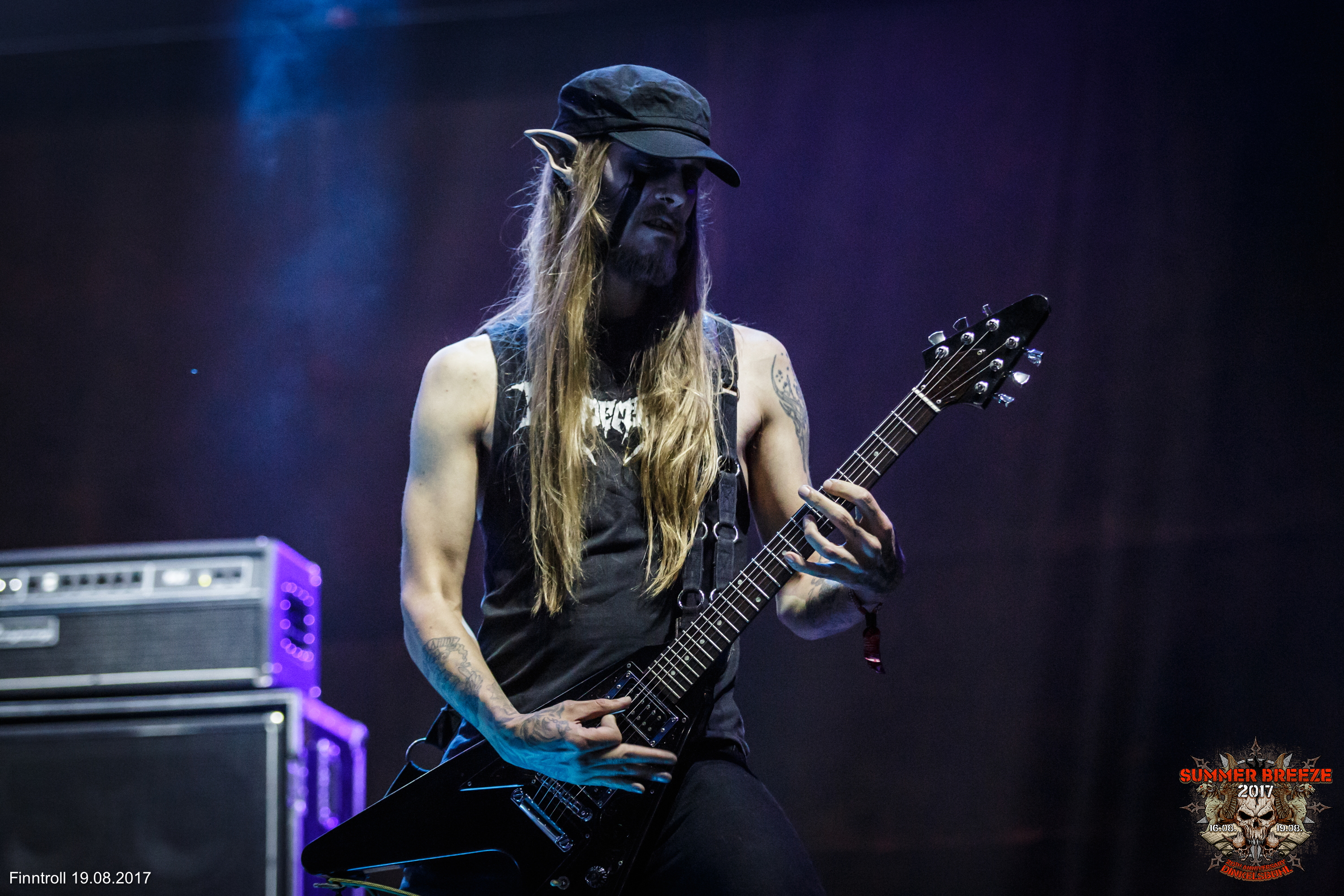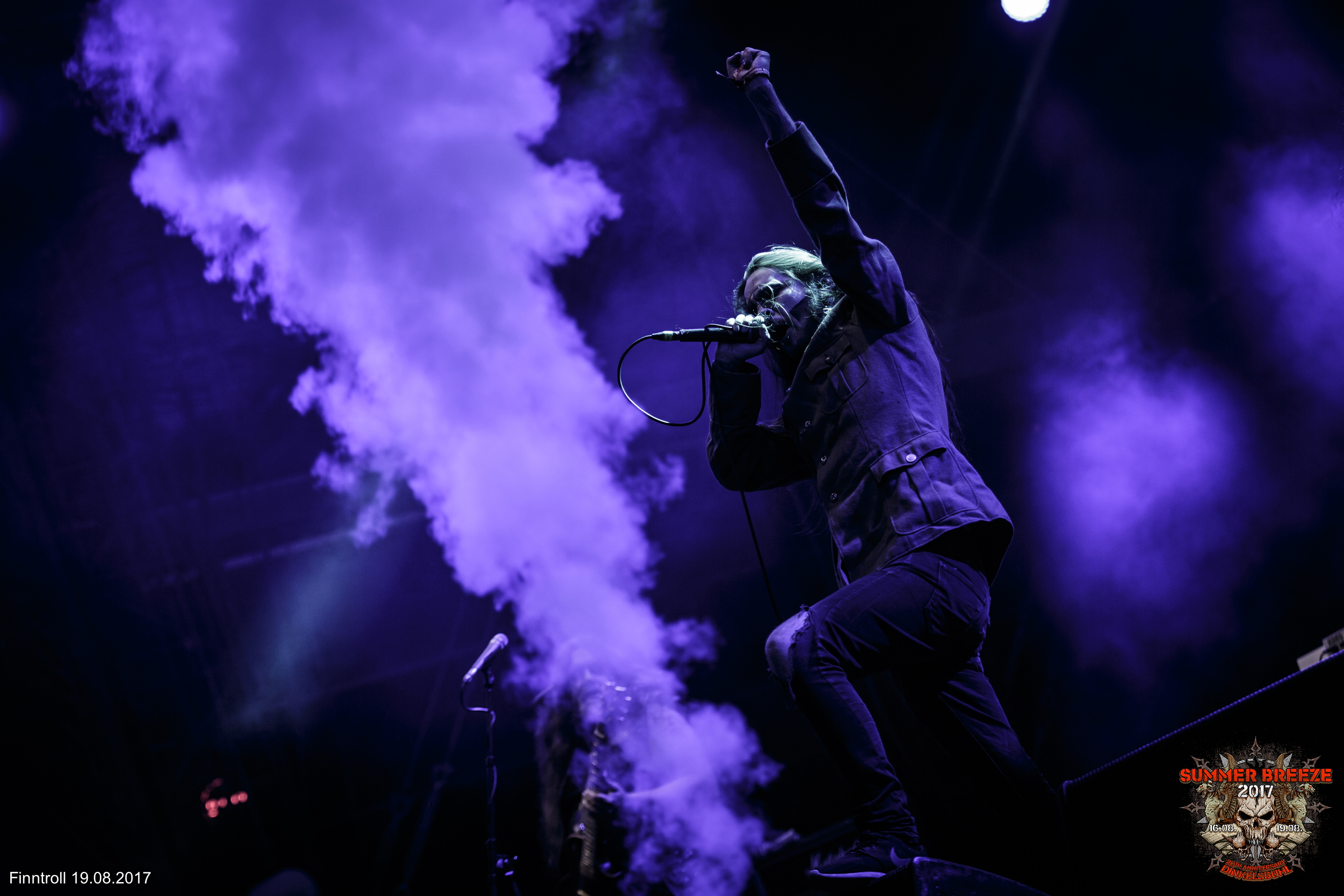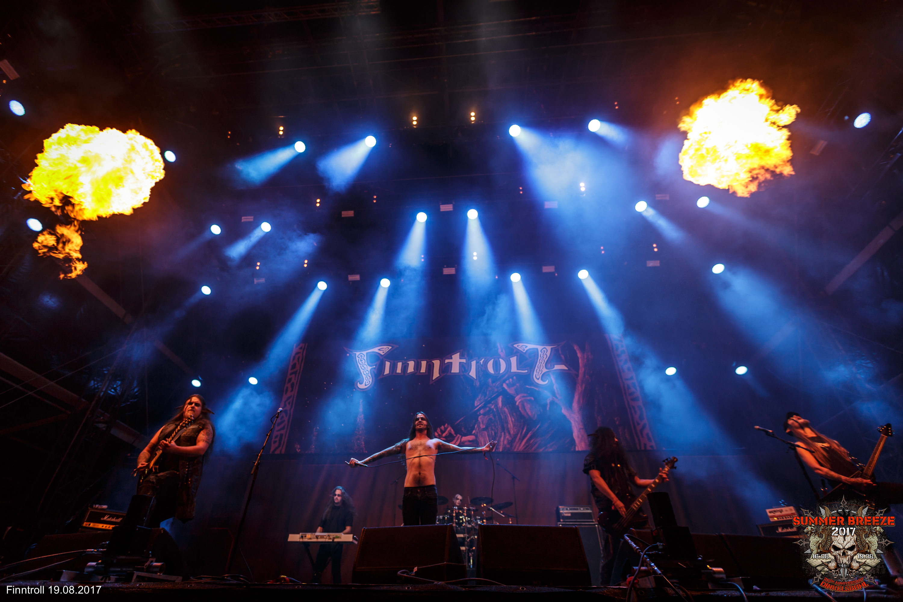 Es waren auch zu später noch überraschend viele Leute da, die sich den letzten Act auf der SUMMER BREEZE Stage nicht entgehen lassen wollten. Und sie bekamen eine reglerechte FINNTROLL-Geschichtsstunde. Die Finnen betraten die Bühne mit etwas Verspätung, da Cantus Buranus etwas überzogen hatten. Nach den beiden eröffnenden Stücken „Midnattens Widunder“ und „Rivfader“ kündigte Sänger Mathias Lilmåns an, dass neben dem SUMMER BREEZE selbst auch FINNTROLL ihr 20. Jubiläum feiern. Und so bekamen die Zuschauer einen Querschnitt durchs Schaffen der Band, und zwar von ganz frühen Werken bis hin zu ihren aktuellen Platten. So tummelten sich neben „Jaktens Tid“, „Natfodd“ und „Trollhammaren“ auch Stücke wie „Korpens Saga“, „Skogsdotter“ und „Bastuvisan“ im Set der Band. Dabei ließ Lilmåns auch nicht unerwähnt, wie wichtig die Alben „Natfodd“ und „Nivelwind“ für ihren Erfolg gewesen sind, und konsequenterweise bestand der Großteil ihres Sets auch aus Tracks dieser beiden Alben. Das Publikum dankte es ihnen mit Pogo und letzten, wenn auch etwas müden und zaghaften Crowdsurfing-Einlagen. Der Bitte Lilmåns, der zu „Solsagan“ „I wanna see you motherfuckers kill each other“ in die Menge warf, kam dagegen keiner nach. Ist vielleicht auch besser so.