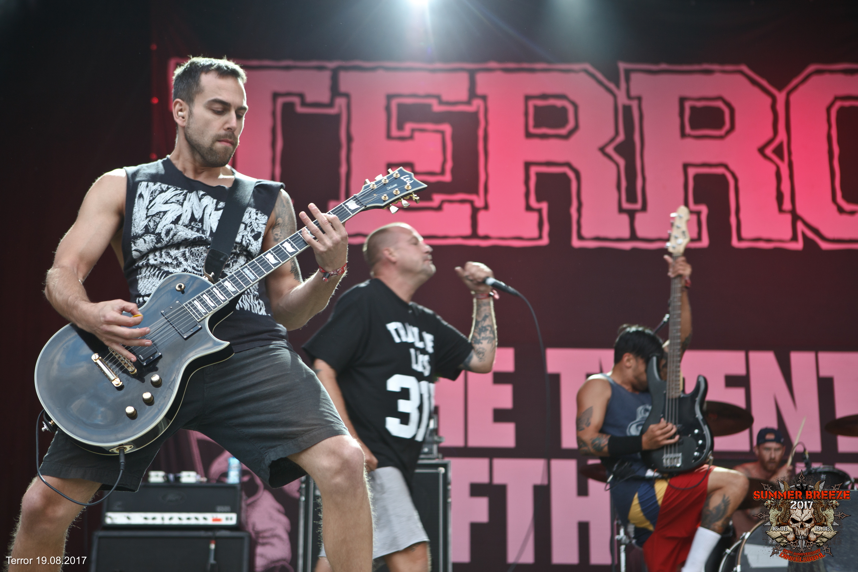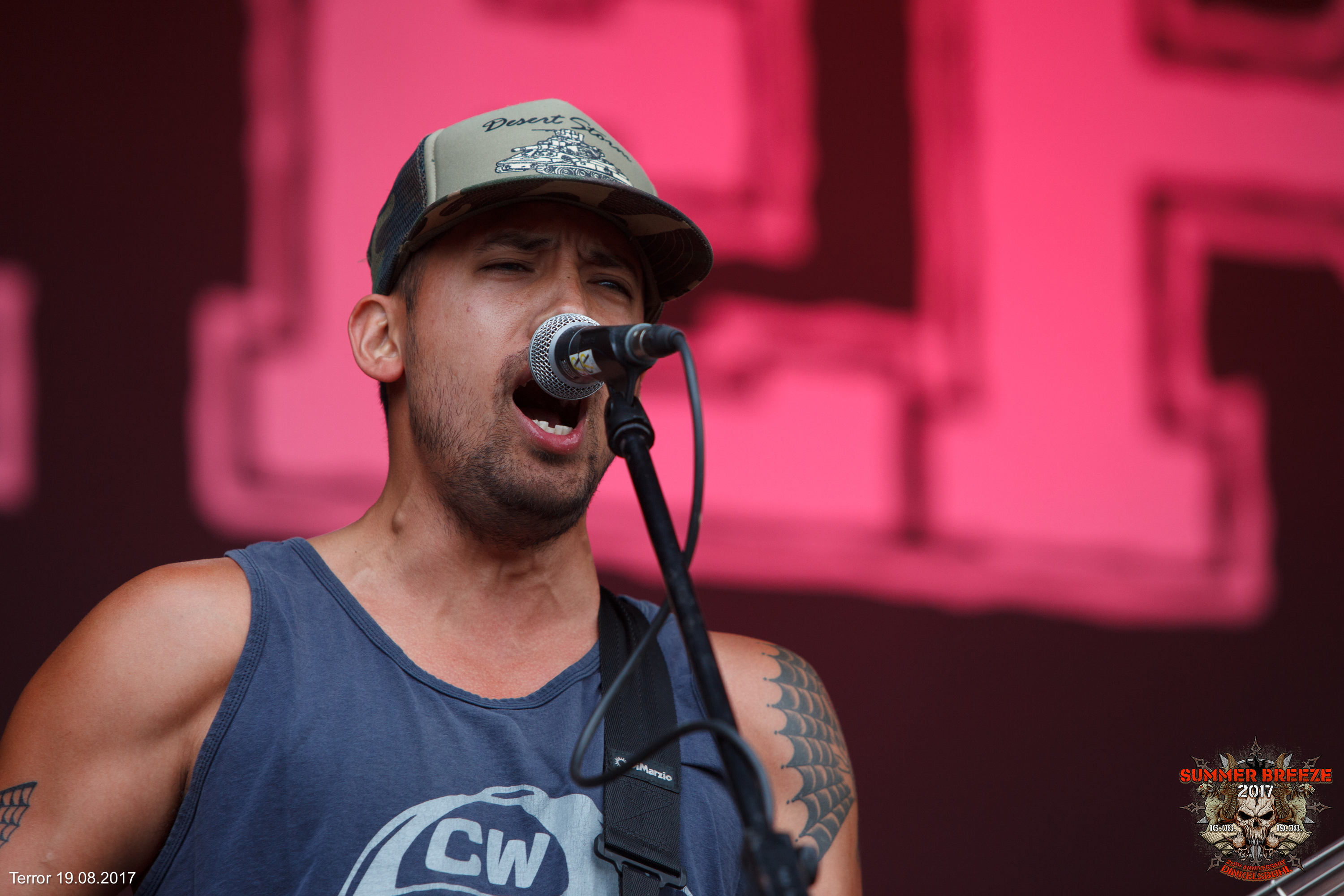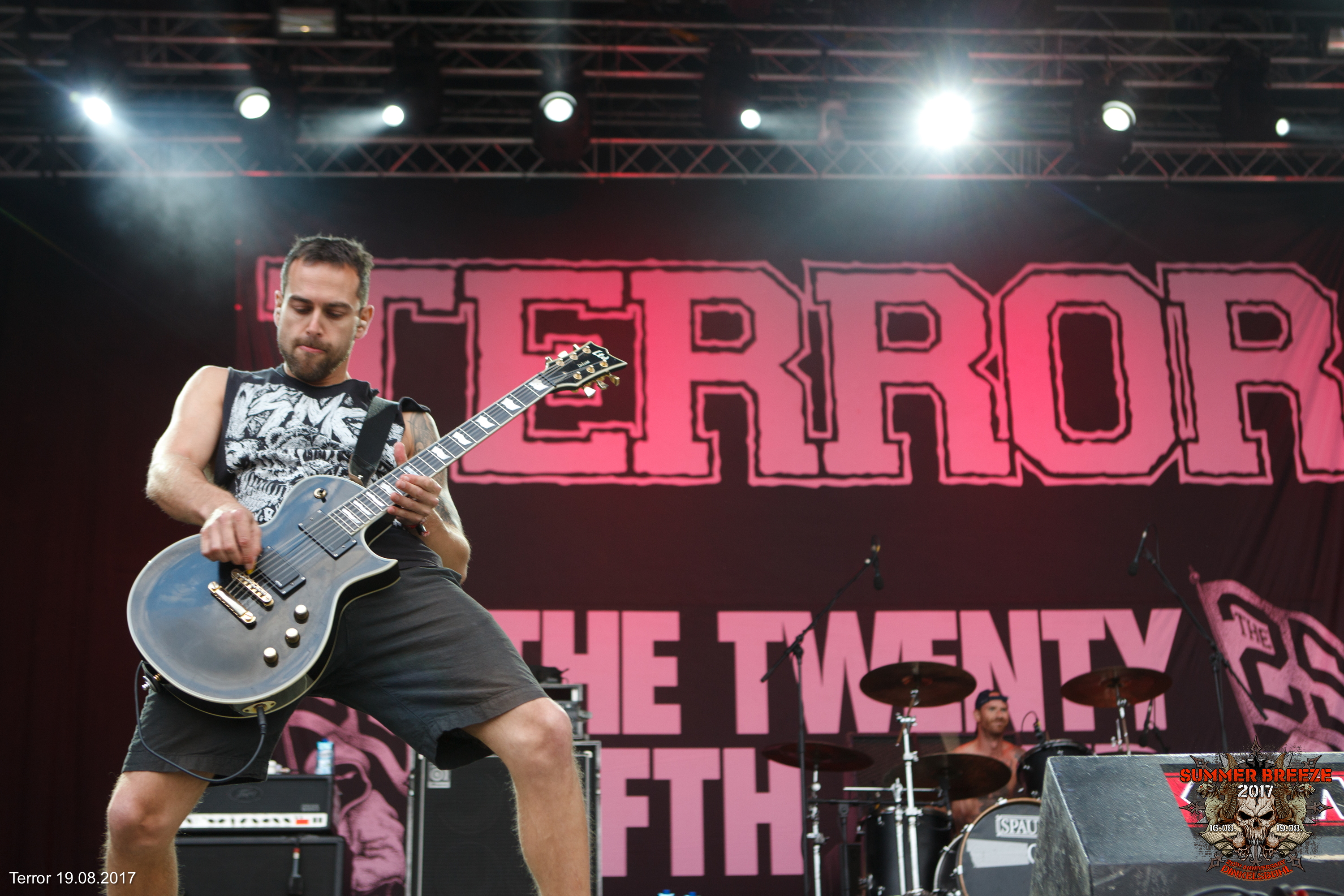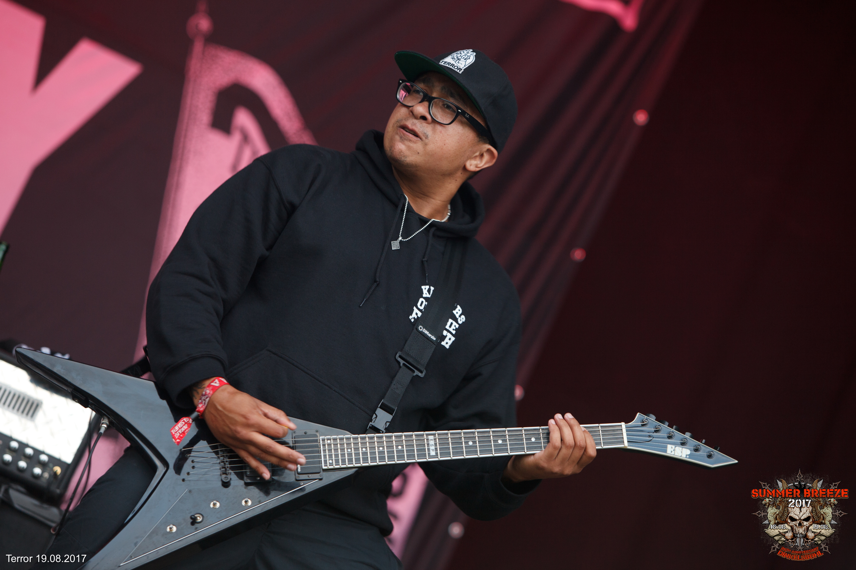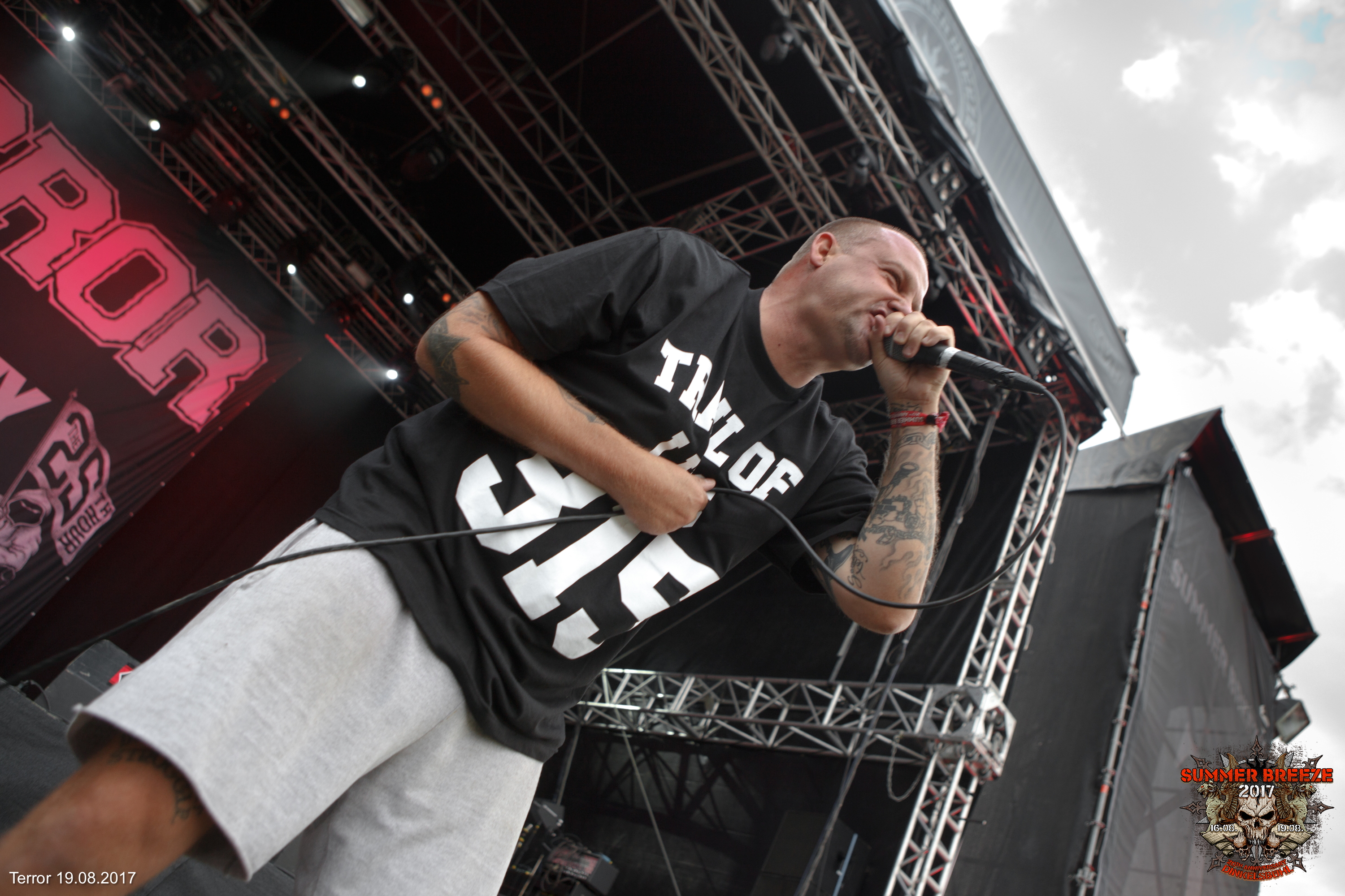 Auf TERROR ist und bleibt immer Verlass – oder hat man jemals von einer schlechten TERROR-Show gehört? Wohl eher nicht. Selbst als im vergangenen Jahr Sänger Scott Vogel aufgrund einer Rücken-Verletzung die Europa-Tour nicht absolvieren konnte und der damalige Bassist David Wood sang, war jede einzelne Show ein Abriss. Dieser war zwar auf dem Summer Breeze nicht mehr dabei, dafür kehrte Ober-Sympath Vogel ans Mikro zurück und machte wie gewohnt viele Kilometer auf der Bühne. Nicht zu vergessen sein legendären Ansagen. So stellte er gleich klar, dass er kein großer Freund der Wellenbrecher sei und forderte zu vermehrten Stage-Dives auf – und natürlich hörten alle brav und zu „Stick Tight“ flogen die Körper im Minutentakt in Richtung Bühne. Sowieso hatte das Publikum richtig Lust auf das Hit-Feuerwerk, dass TERROR da abfeuerten. Bereits zum dritten Song „Overcome“ brannte die Hütte lichterloh, spätestens zu den beiden Klassikern „One With The Underdogs“ und „Always The Hard Way“ lag dann alles in Schutt und Asche. Allerdings wird auch Vogel nicht jünger.Und so gönnte sich der ehemalige Buried-Alive-Sänger bei „The 25th Hour“ hinter der Bühne eine kleine Auszeit, um ein wenig Luft zu holen und den ein oder anderen Muskel etwas zu dehnen. Verständlich, denn der Abschlussblock hatte es mit „No Time For Fools“, „You’re Caught“, „Keep Your Mouth Shut“ und wie üblich dem grandiosen „Keepers Of The Faith“ schließlich nochmal in sich. Das war richtig stark! Lustige Randnotiz: Vogel pfefferte sein benutztes Handtuch in die Menge und machte damit die junge Dame in der ersten Reihe, die es ergatterte, offenbar sehr glücklich. Die freute sich nämlich minutenlang über ihre Beute.