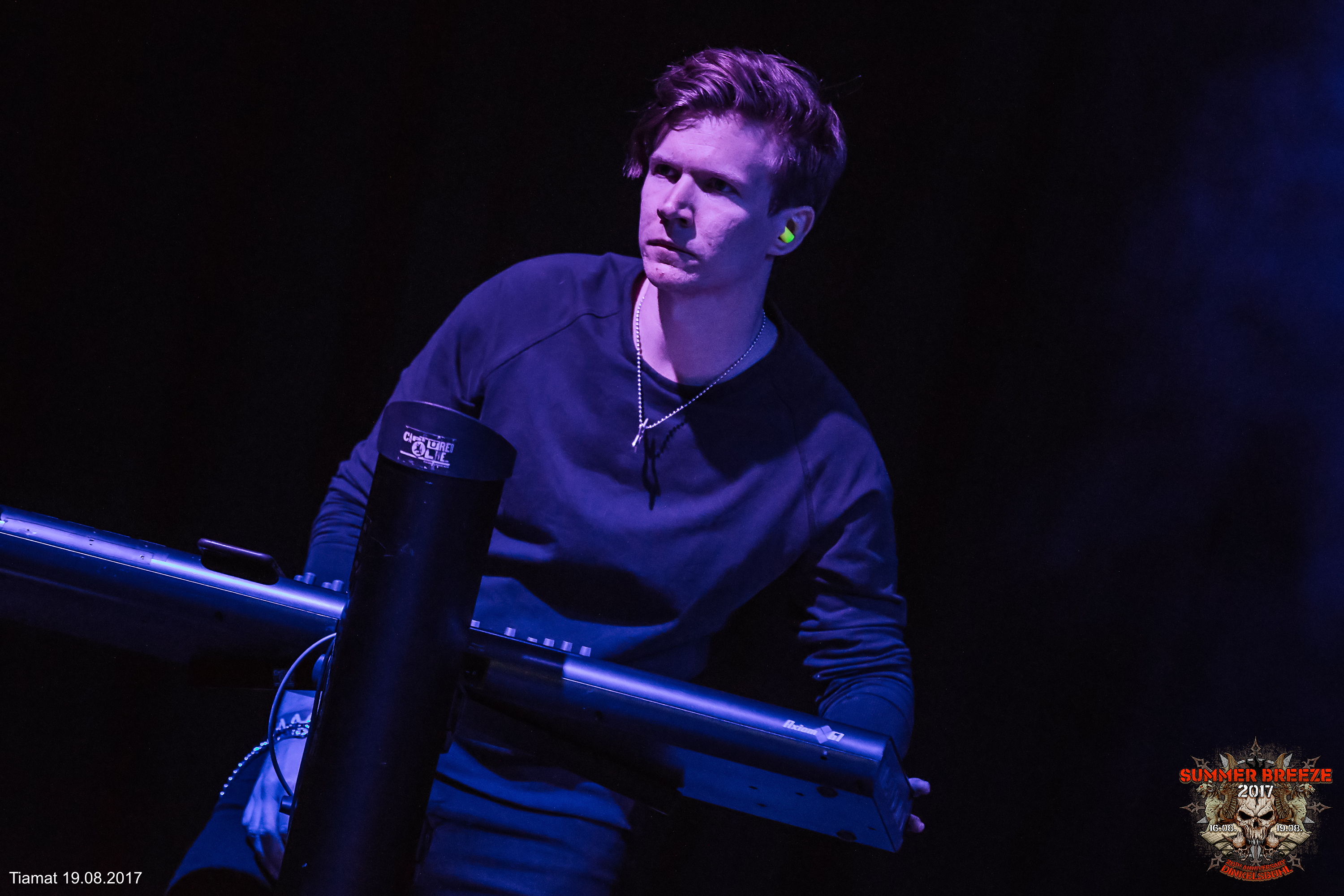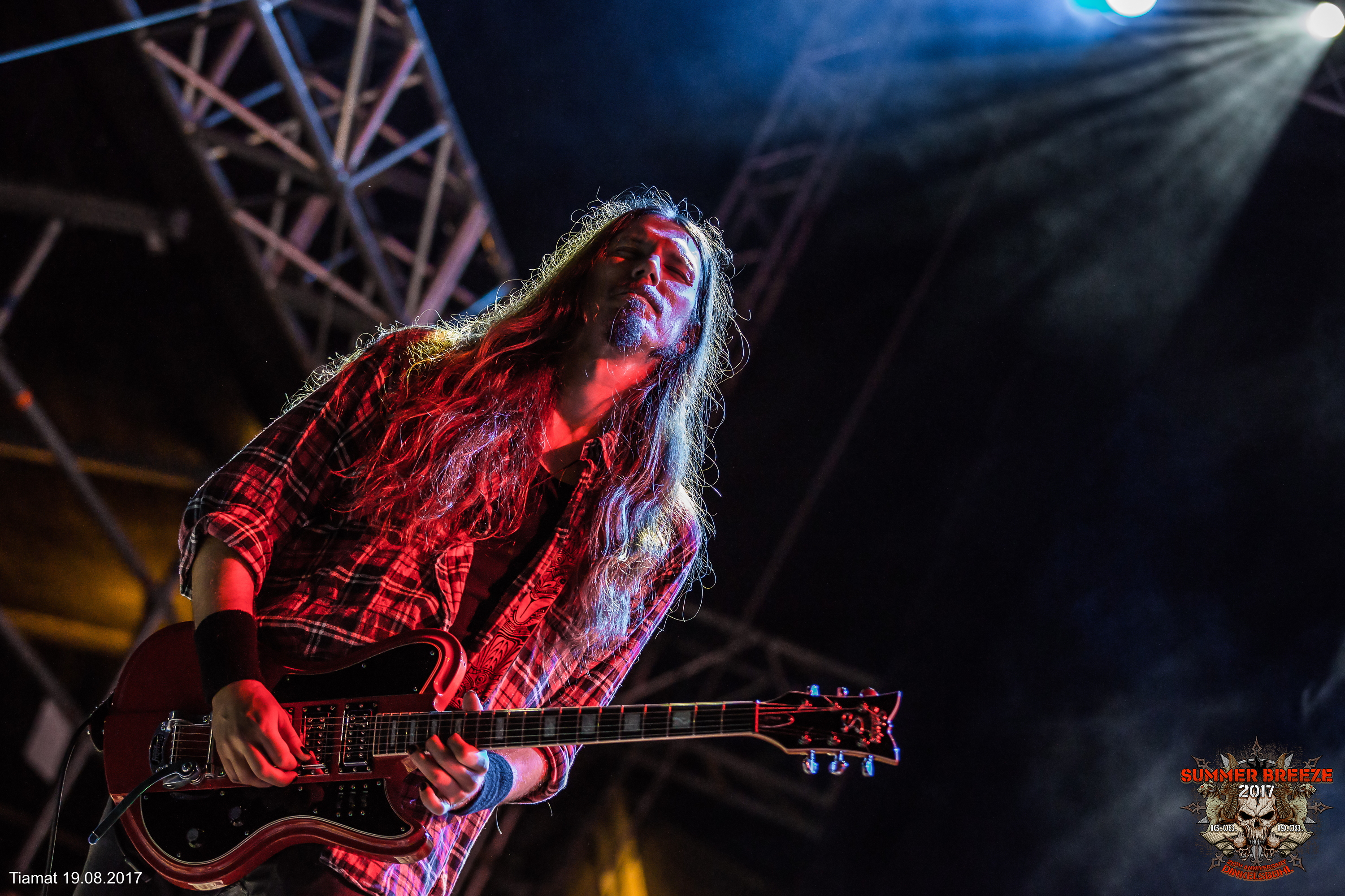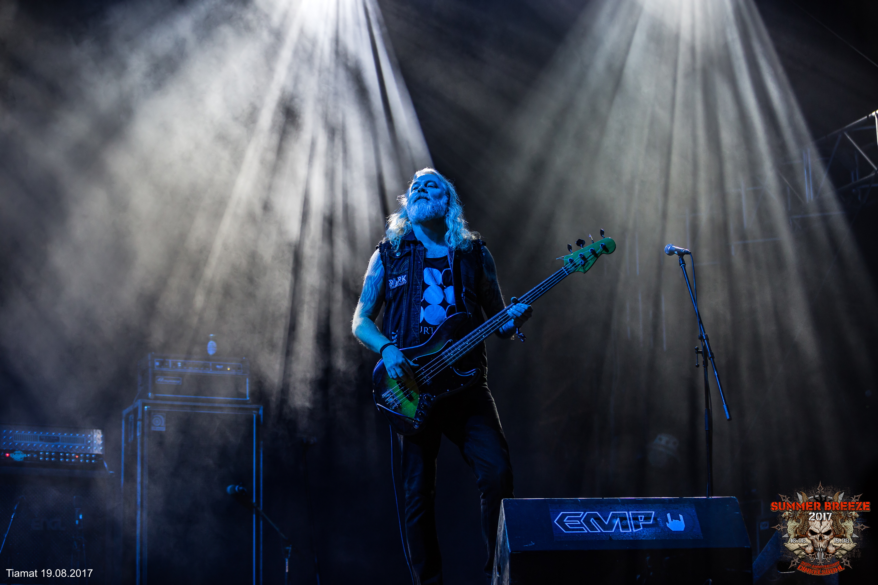 „Good evening. We are TIAMAT from Sweden and it is nice to be back!“ Niemand außer Johan Edlund kann diese Worte in so einem ruhigen und zugleich verträumten Ton ins Mikrofon säuseln. Und es war wahrlich eine Freude, dass sie zurück sind. Zurück mit einem Meilenstein ihrer Bandgeschichte, welchen die Band extra für wenige Festivals zu einer unvergleichlichen Special-Show verarbeitet hat. „Wildhoney“ stand in seiner ganzen Pracht im Mittelpunkt. Gänzlich in blauem und grünem Licht und Nebel versunken spielten TIAMAT eine sehr intensive und mitreißende Show, fast wie eine eigene Geschichte, vorgelesen aus dem Buch, welches neben einem der Mikros stand. Dabei standen zwar alle fünf einzeln und jeder als Individuum in seiner eigenen Welt versunken, aber Edlund bildete den Dreh- und Angelpunkt der organischen und nahezu schwebenden Macht auf der Bühne. Dass sie eine große Familie sind und dies auch zelebrieren, wurde besonders durch Mikael Stannes und Anders Iwers‘ Anwesenheit deutlich. Die beiden Dark Tranquillity-Mitglieder wurden bei ihrem kurzen Aufenthalt hinter der Bühne überschwänglich begrüßt – einfach so, während zwei Stücken und Iwers übernahm eine zusätzliche Klampfe und ein fantastisches Gitarrensolo bei „The Ar“. Auch die restliche Show war ein absolut hypnotisches Fest, beendet mit „A Pocket Size Sun“, was als super Showdown fungierte, dann aber doch noch von der Zugabe „The Sleeping Beauty“ getoppt wurde. Gänsehaut pur!