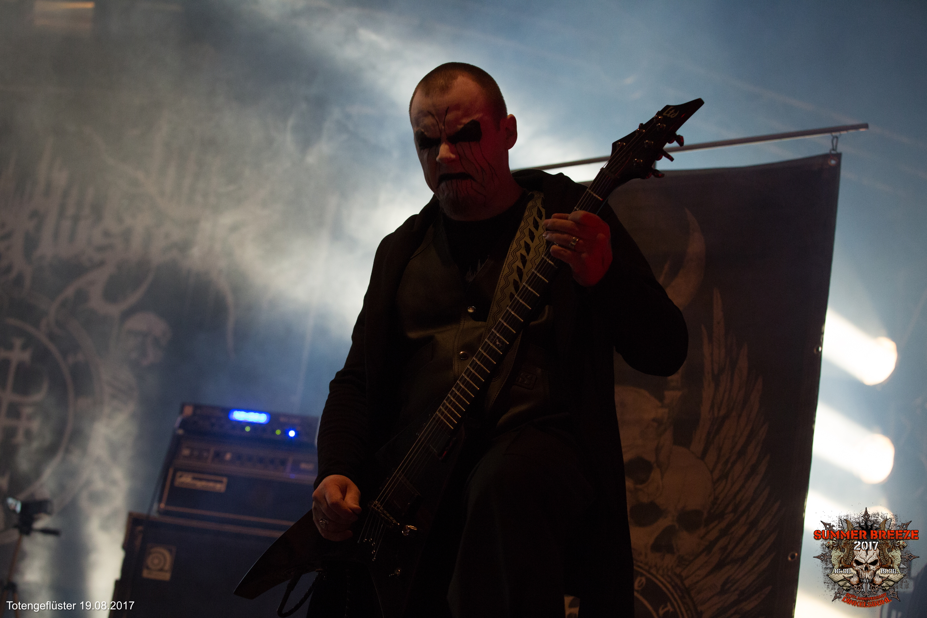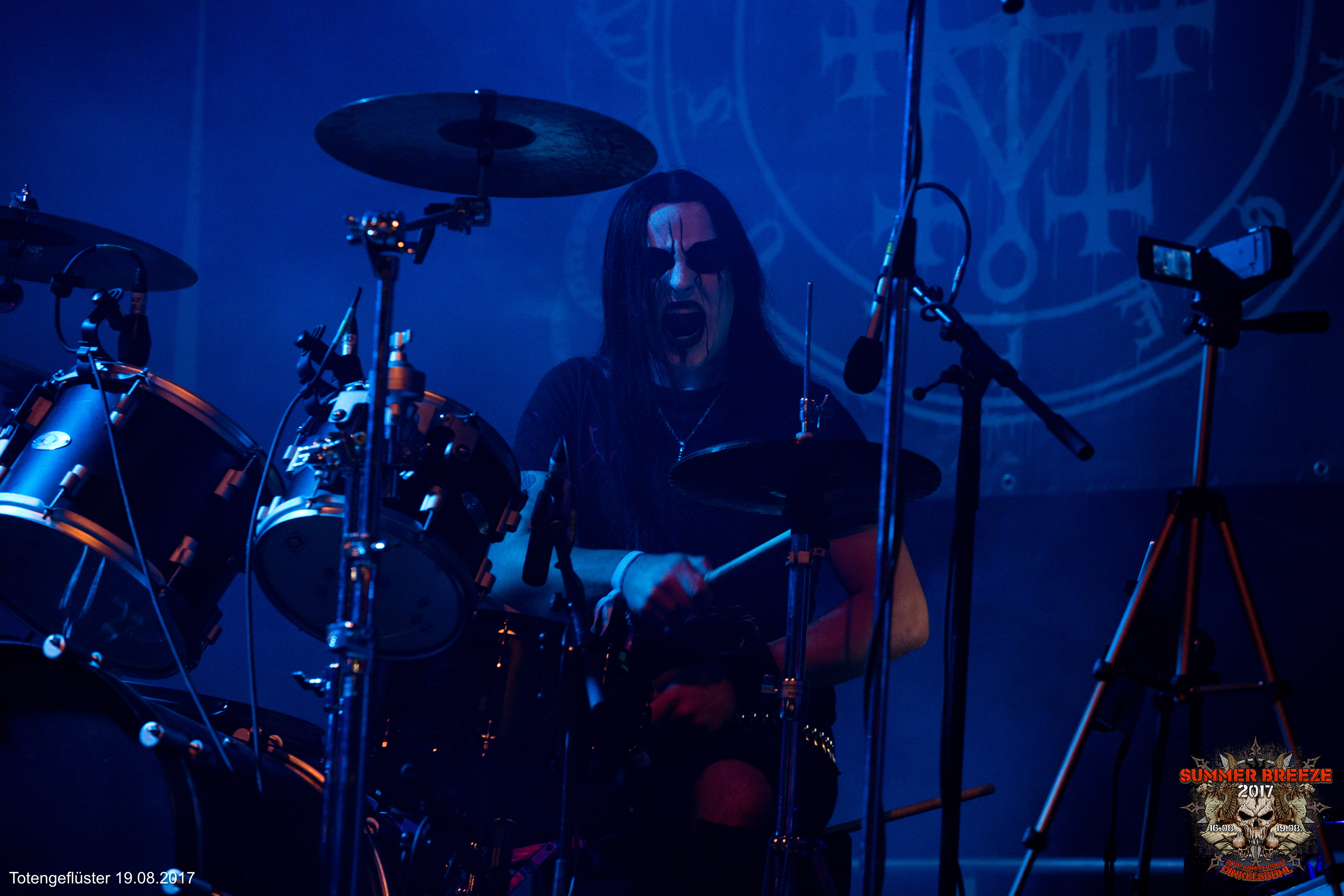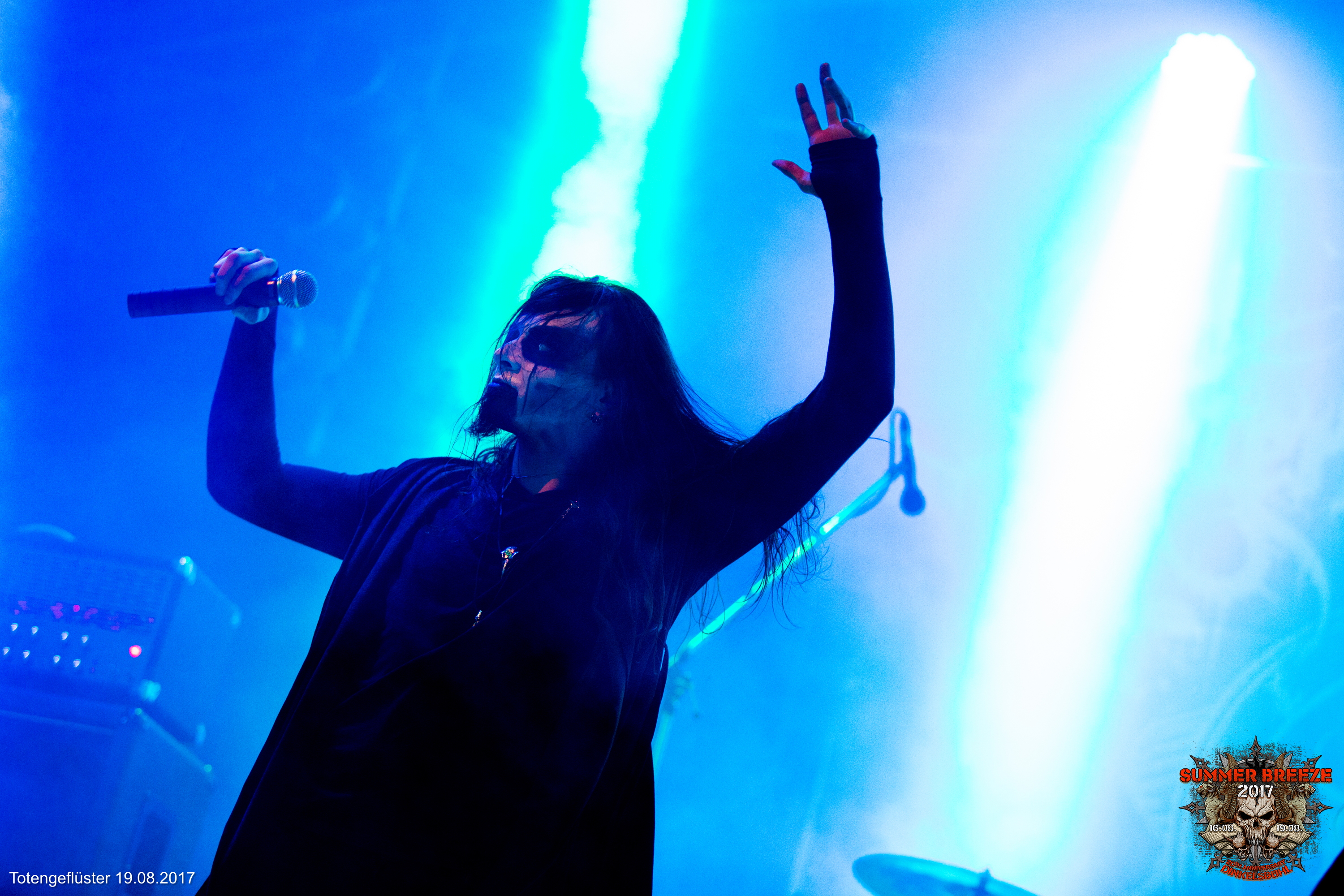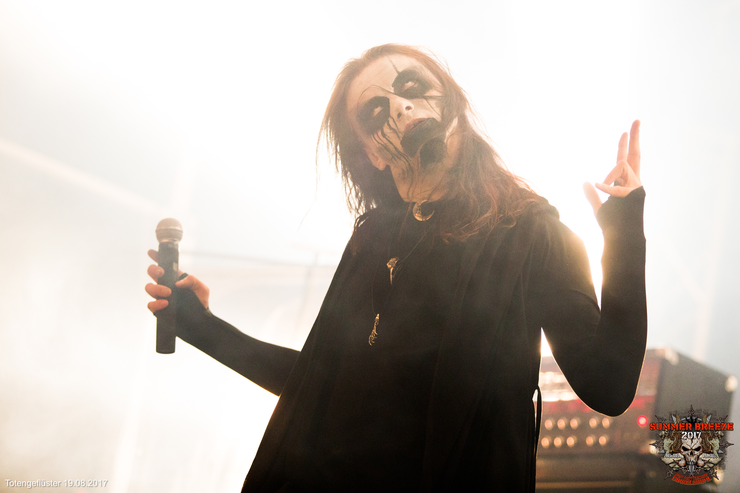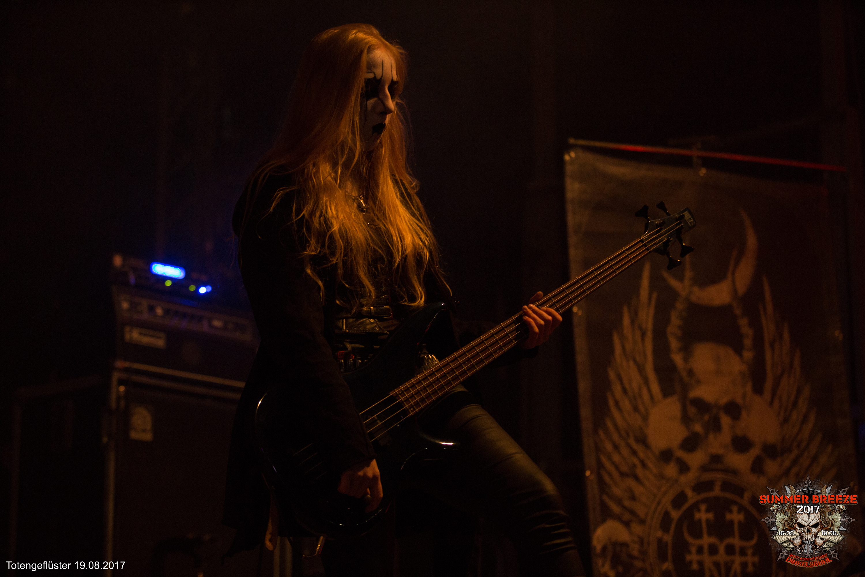 Aus krankheitsbedingten Gründen mussten Eïs ihren Auftritt auf dem diesjährigen SUMMER BREEZE leider absagen. Ersatz fand sich glücklicherweise doch noch am selben Tag in Form der schwäbischen Symphonic-Black-Metal-Band TOTENGEFLÜSTER, die um zwei Uhr morgens als letzte Band die Camel Stage enterten. Neben traditionellem Corpsepaint wartete die Band mit einem symphonischen Black Metal auf, der in der alten Schule verwurzelt ist. Druckvoll und doch genretypisch kalt war der Sound, den einem die Herren und die Dame da entgegen geballert haben. Das hat natürlich gut gepasst, denn zu dem Zeitpunkt war es auch sehr kalt. Sänger Narbengrund fauchte wie ein Dämon und unterstrich so die kalte Stimmung, welche die Band in Kombination mit den Temperaturen verbreitete. Dichter Nebel hüllte die Camel Stage ein und verstärkte dies ebenfalls. Sägende Gitarren versprachen keinen Trost, keine Wärme. Und so brachten TOTENGEFLÜSTER als adäquater Ersatz von Eïs den diesjährigen Betrieb auf der Camel Stage zu einem würdigen Ende.