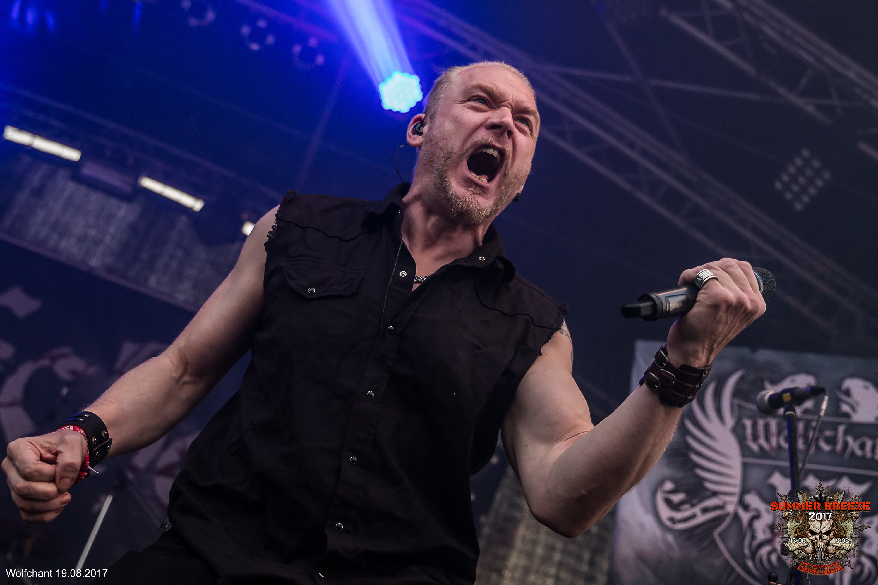 Pagan und Folk Metal Bands wird ja nur allzugerne eine romantisierende Überhöhung mythologisch aufgeladener Themen wie Heldentum, Mut und Durchhaltevermögen angekreidet. Dass diese aber nicht nur ins Reich der Fantasie gehören, sondern auch in der Realität durchscheinen, bewiesen am frühen Samstagabend WOLFCHANT. Vor einigen Wochen erlag ihr Gitarrist Eddy Groß alias Gorthirm einem Krebsleiden, trotzdem standen die sechs Bayern heute auf der Camel Stage. Dafür gebührt schon mal Respekt! Selbiges gilt auch für die professionelle Art, wie sie es verstanden, den prall gefüllten Platz schnell für sich zu gewinnen. WOLFCHANT kümmerten sich nicht nur mit der wiederholten Frage, ob denn genug Bier vorhanden sei, um das leibliche Wohl der Fans sondern boten mit Geschichten epischen Ausmaßes und hymnischen Schlachtgesängen auch genug fürs Ohr, überraschendweise auch mit feinen Doppel-Lead-Soli wie etwa in „Element“. Und apropos prall gefüllt: mit sechs Leuten waren WOLFCHANT zumindest personell nicht gerade die geeignetsten Kandidaten für die Enge der kleinsten Festivalbühne. Erstaunlicherweise gelang es ihnen trotzdem, mit zwei Sängern, zwei Gitarristen und einem Basser fortwährend die Positionen zu tauschen und so zusätzliche Dynamik in ihre treibenden Rhythmen zu bringen. Der letzte Song „Naturgewalt“ wurde explizit Gorthirm gewidmet, für den das Publikum bangenderweise auch nochmal die Extrameile ging.