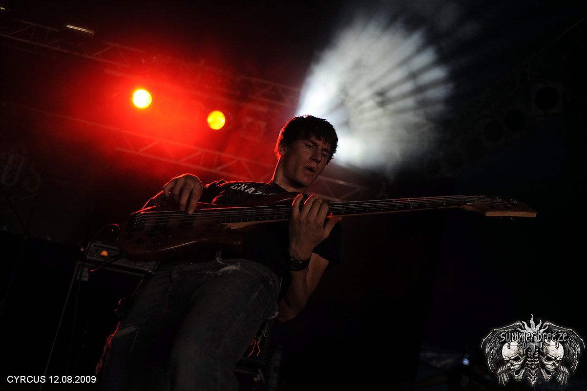 Laut Ansage ihres sympathischen Fronters hatte die Band zu so früher Stunde gerade mal mit ca. 50 Zuschauern gerechnet. Weit gefehlt! Die SUMMER BREEZE-Meute war offensichtlich heiss und mehr als bereit loszulegen und so durften sich CYRCUS trotz der vermeintlich undankbaren Openerposition über ein sehr gut gefülltes Zelt freuen, das sie direkt nach dem Pulp Fiction-Intro freudig und mit offenen Armen empfing. Und die Nordrhein-Westfalen waren offensichtlich entschlossen diese Steilvorlage zu verwandeln, jedenfalls ließen sie sich direkt von der guten Laune anstecken und zeigten sich äußerst spiel- und bewegungsfreudig. Besonders Gitarrist Andy legte ein beeindruckendes Laufpensum in Verbindung mit astreinen Shouts an den Tag, während sich Sänger und optischer Mittelpunkt Chubby gekonnt um die melodischen Gesangpassagen und die Ansagen kümmerte. Gelegentlich ließen KILLSWITCH ENGAGE grüßen, die Jungs waren aber weit davon entfern ein purer Clone zu sein. Im Mittelteil von „Somethings Missing“ gabs eine „All We Are“-/WARLOCK/80er-Metal-Reminiszenz und mit Circlepit und Wall Of Death ließ sich auch das Publikum nicht lumpen. Ein mehr als starker Auftakt!
