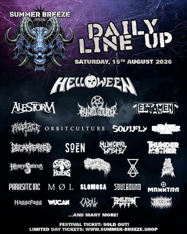 HELLOWEEN, ALESTORM, THY ART IS MURDER, TESTAMENT, PALEFACE SWISS, ORBIT CULTURE, SOULFLY, KADAVAR, DECAPITATED, SOEN, MUNICIPAL WASTE, THUNDERMOTHER, HEAVYSAURUS, THE SONS OF HUENS, SANGUISUGABOGG, BLOODRED HOURGLASS, PARASITE INC., MØL, 200 STAB WOUNDS, SLOMOSA, SOULBOUND, MANNTRA, HAGGEFUGG, WUCAN, CABAL, SKELETON PIT, INNER SPACE