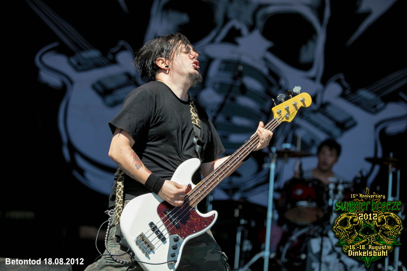 New York Hardcore wouldn’t be the same without them, and many bands on this year’s SUMMER BREEZE bill probably list them as an inlfuence. We are talking about NYHC pioneers SICK OF IT ALL, who have been playing the festival circuit for years, proving that, after over 26 years of carrer, they still have what it takes to deliver a great show. Under the setting sun, frontman Lou Koller entered the stage in a great mood, greeted his fans loudly and immediately launched into “Take The Night Off”. The crowd, which kept growing and growing over the course of the set, did their best to stay in motion with jumps, wild mosh pits and countless crowdsurfers. As with their last festival appearances, the choice of songs was spot on, as they played selections from the whole band history, making fans young and old party together. Lou’s question “are you ready?” was obviously answered with a loud “yeah!”, and before starting the crushing “Die Alone” he conducted the audience like a choir, prompting everyone to sing along. Besides Lou, his brother Pete provided loads of action on stage, too. Fit as a fiddle, he kept moving throughout the whole set, using every monitor wedge on stage as a spring board at least once. Their set flew by, and the Americans kept churning out tracks like “Good Looking Out”, “Call To Arms” and “Scratch The Surface” with no interruption, which went down a strom in the audience. The bouncers had their hands full pulling crowdsurfers (surprisingly many of which were female) out of the pit. For the grand finale, with Lou asking everyone from the left to the right to join in, the band played the classic “Step Down”. Under loud calls for an encore the band took many a bow and said goodbye. After all these years, SICK OF IT ALL have still got it, as they still overshadow many a younger band with their live qualities. It’s still a mystery though why they didn’t use the remaining 20 minutes of their stage time and didn’t return for an encore.
